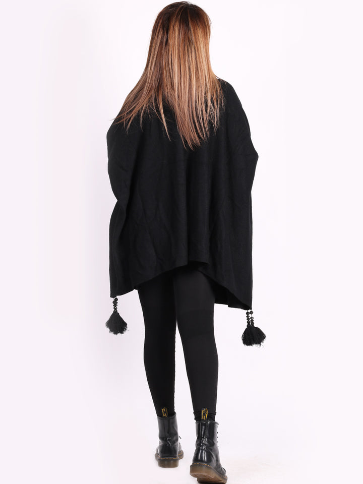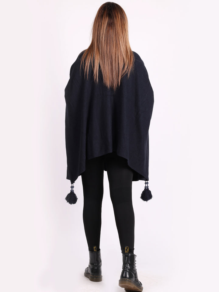 Style up without the effort to think with this fashion boutique Italian made cosy collection of poncho. Relaxed silhouette achievement is easy breezy for women wearers with features like comfort cowl neckline, very sassy batwing sleeves and tunic poncho style with eye-catching tassels at the hem. Layer over jumper on chilly days.