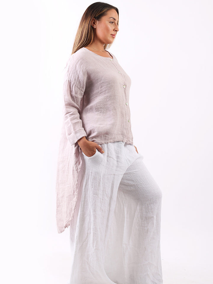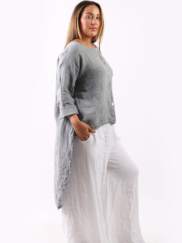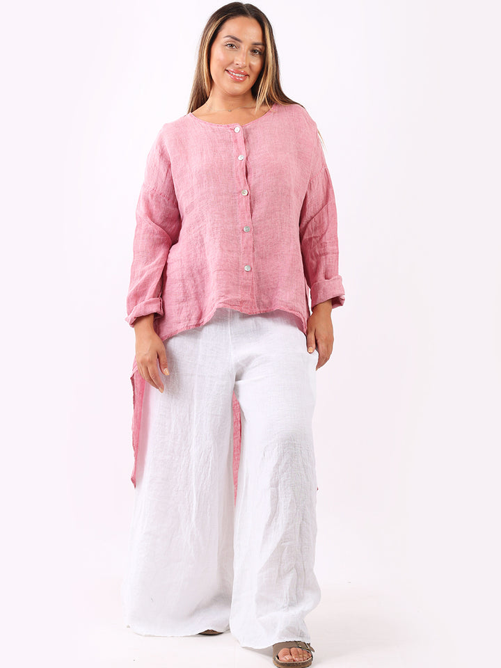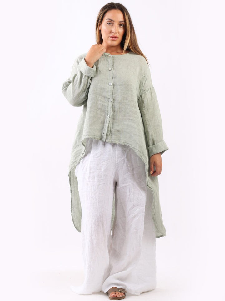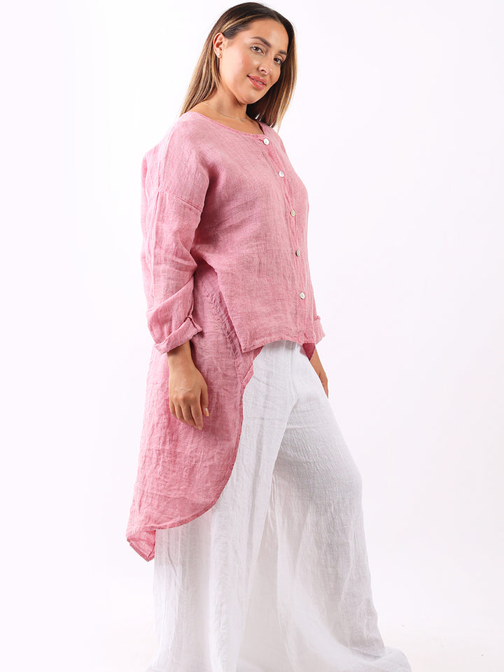 Posh and celestial this is the ultimate look for this season and beyond. Made in Italy with finest soft fabric and rich features from Redwholesale like luxe round neckline, front buttons and lone rolled up sleeves with royal looking longer back. Soft and earthy tones makes it ideal to customize into many looks.