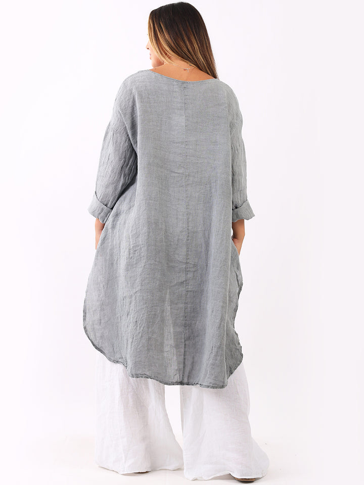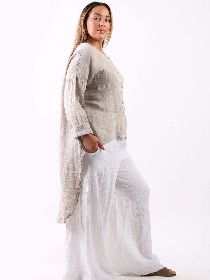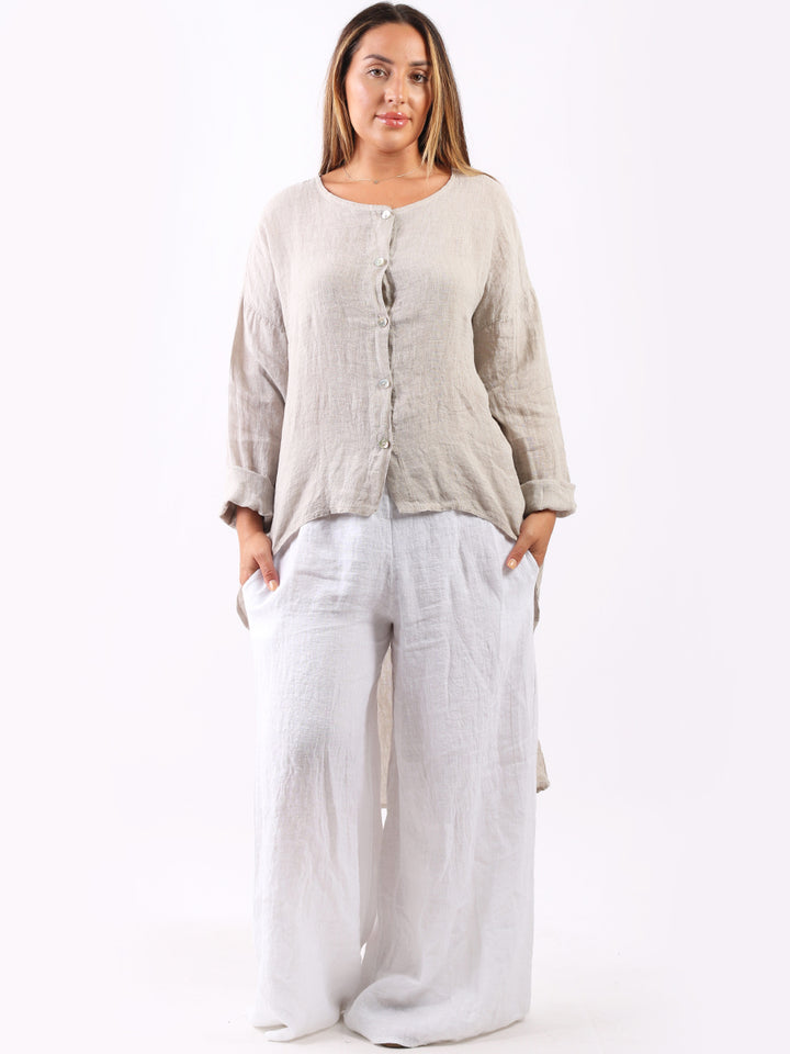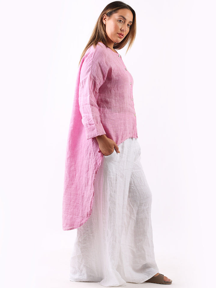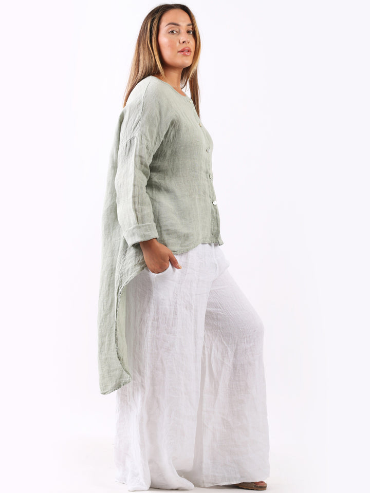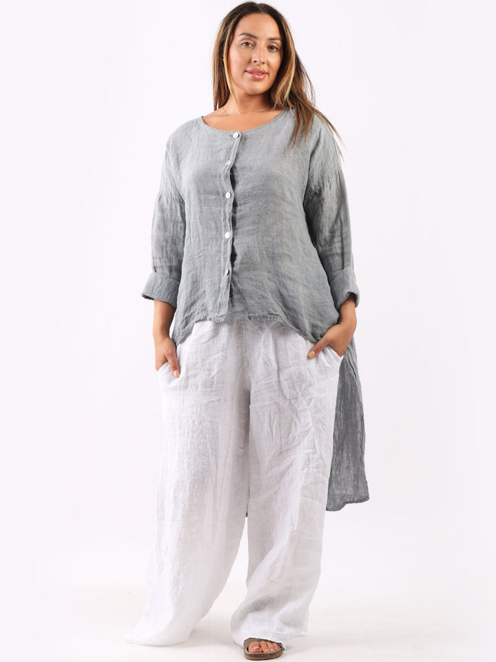 Posh and celestial this is the ultimate look for this season and beyond. Made in Italy with finest soft fabric and rich features from Redwholesale like luxe round neckline, front buttons and lone rolled up sleeves with royal looking longer back. Soft and earthy tones makes it ideal to customize into many looks.
