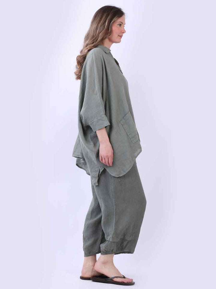 This full-of-character Italian baggy top from Redwholesale Clothing Boutique flows naturally with free spirit. The front pocket gives a playful edge, while the plain tone with a collared neckline and cuffed sleeves reflects the richness of the classic design. A summer wardrobe must-have for elegant women that value simple sophistication.