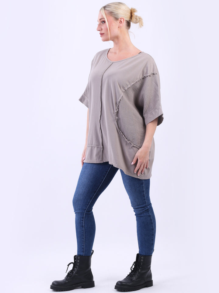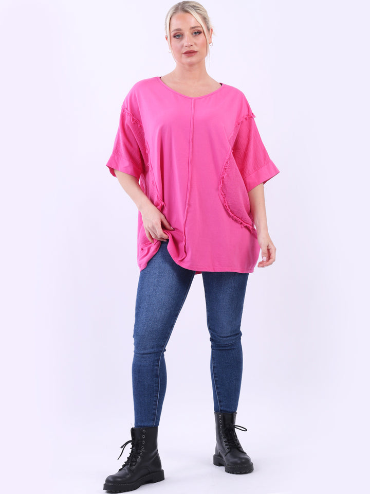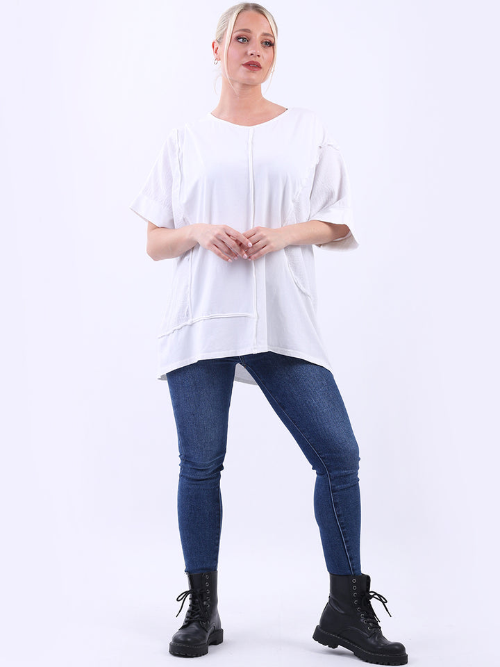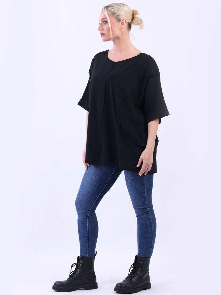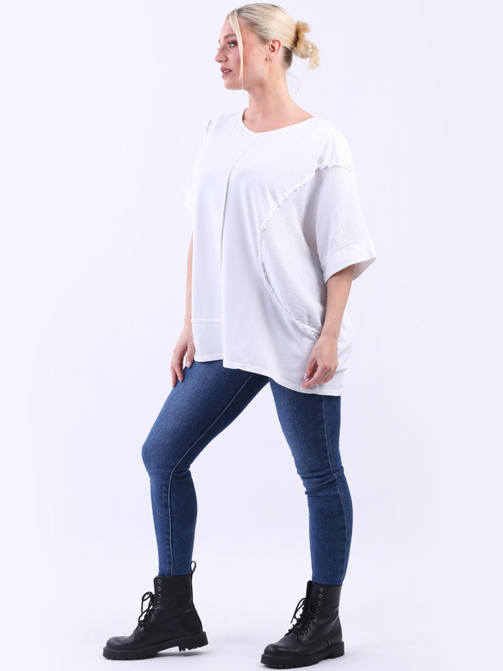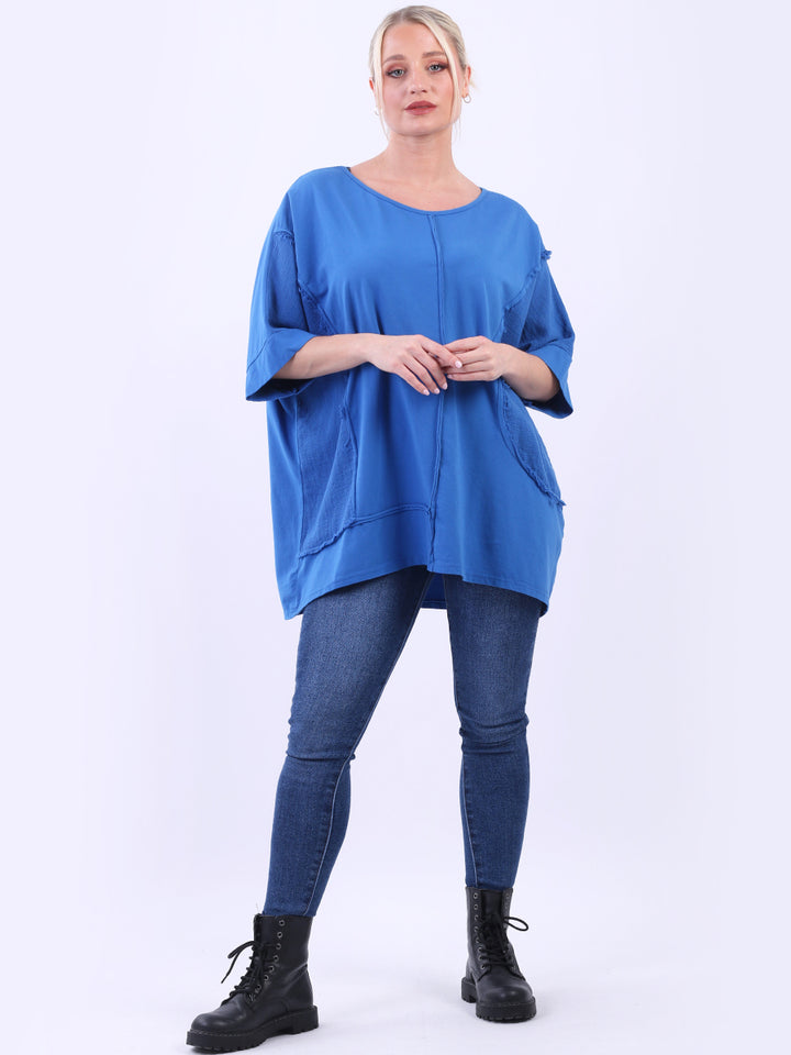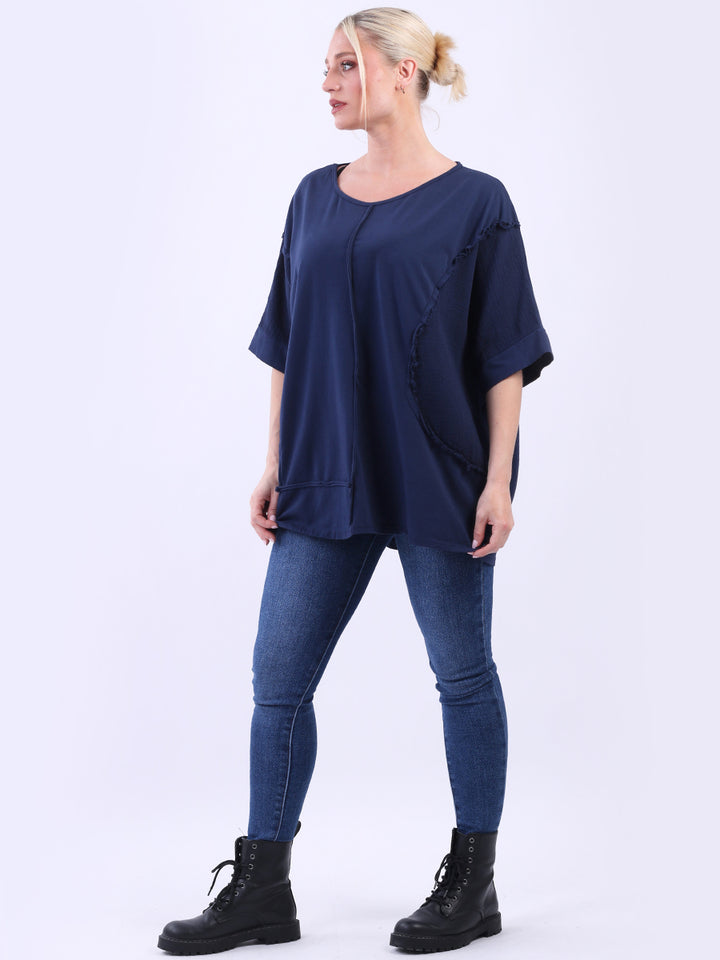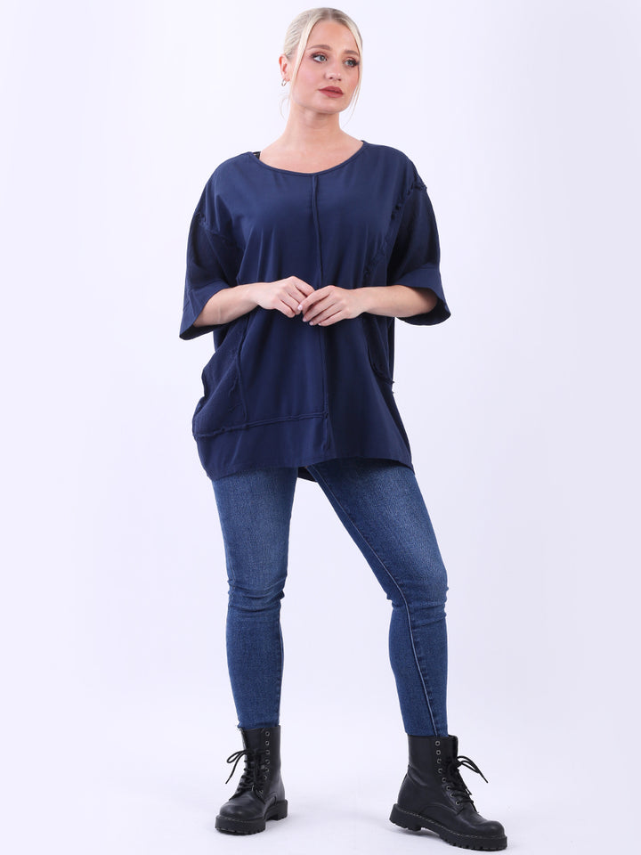 A unique and chic design that is very popular among women wearers. Made in Italy high quality fabric blend that gives soft and comfy touch and feel, the top has awesome features like wide round neckline, baggy plus size fit and trendy hopsack style patches on the side and sleeves. Dress it with skinny denims and platform heels for ideal casual finish.