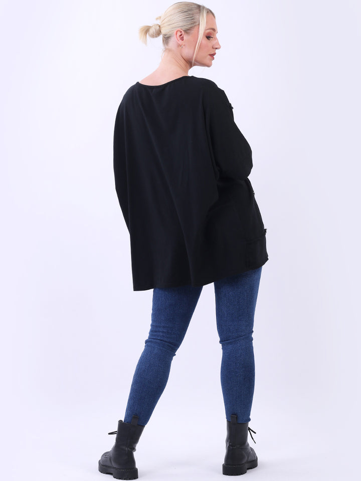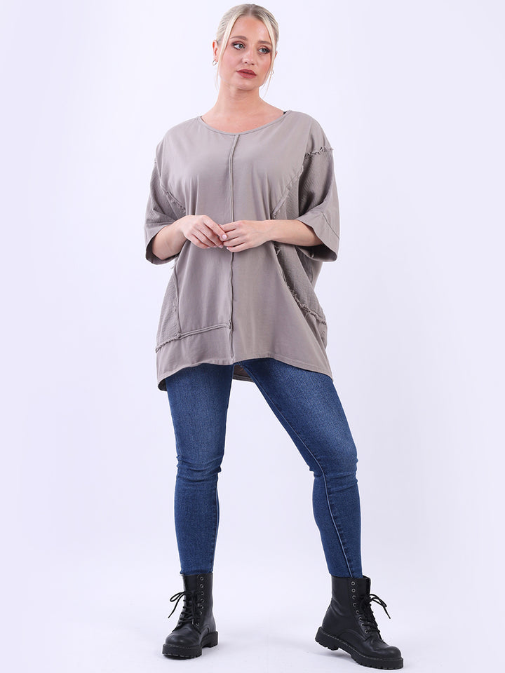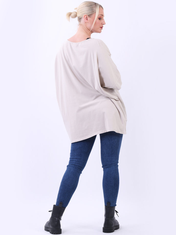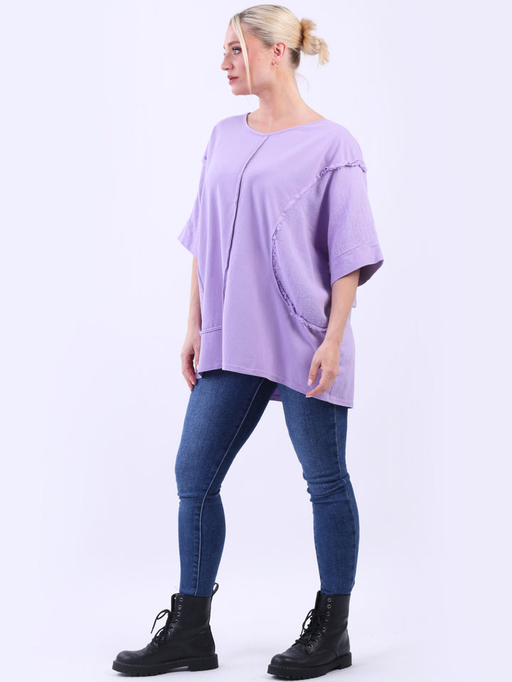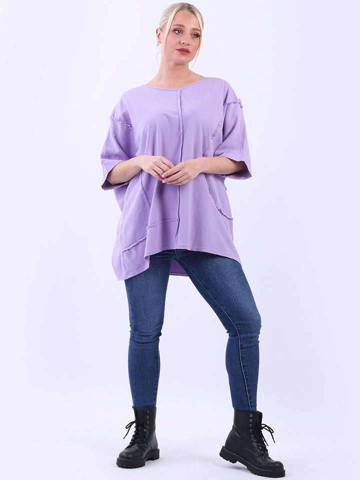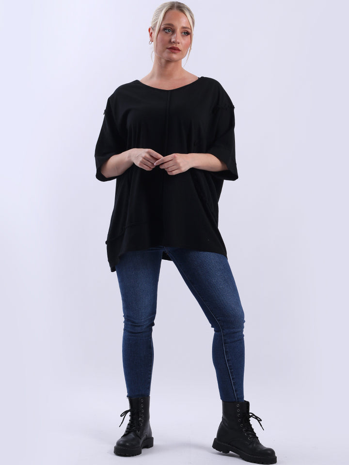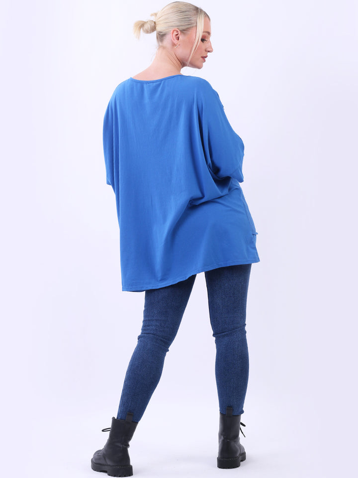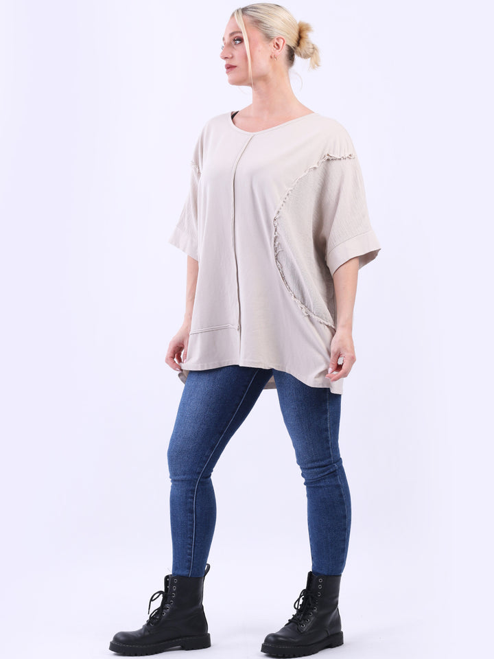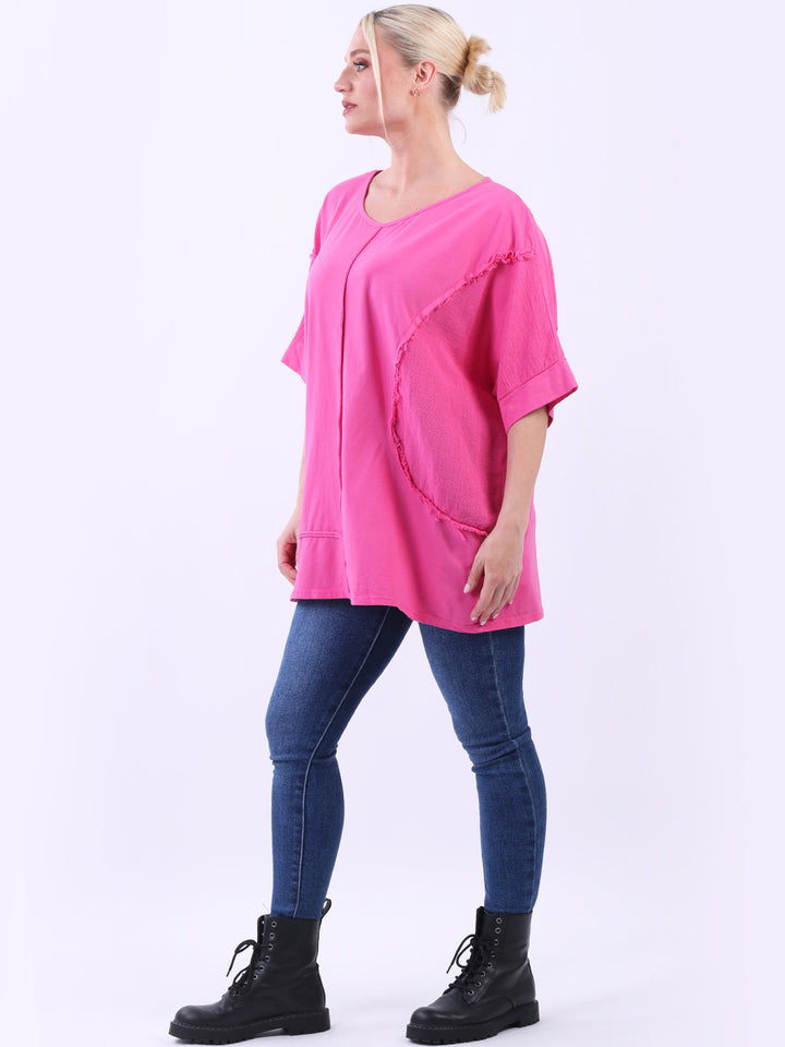 A unique and chic design that is very popular among women wearers. Made in Italy high quality fabric blend that gives soft and comfy touch and feel, the top has awesome features like wide round neckline, baggy plus size fit and trendy hopsack style patches on the side and sleeves. Dress it with skinny denims and platform heels for ideal casual finish.