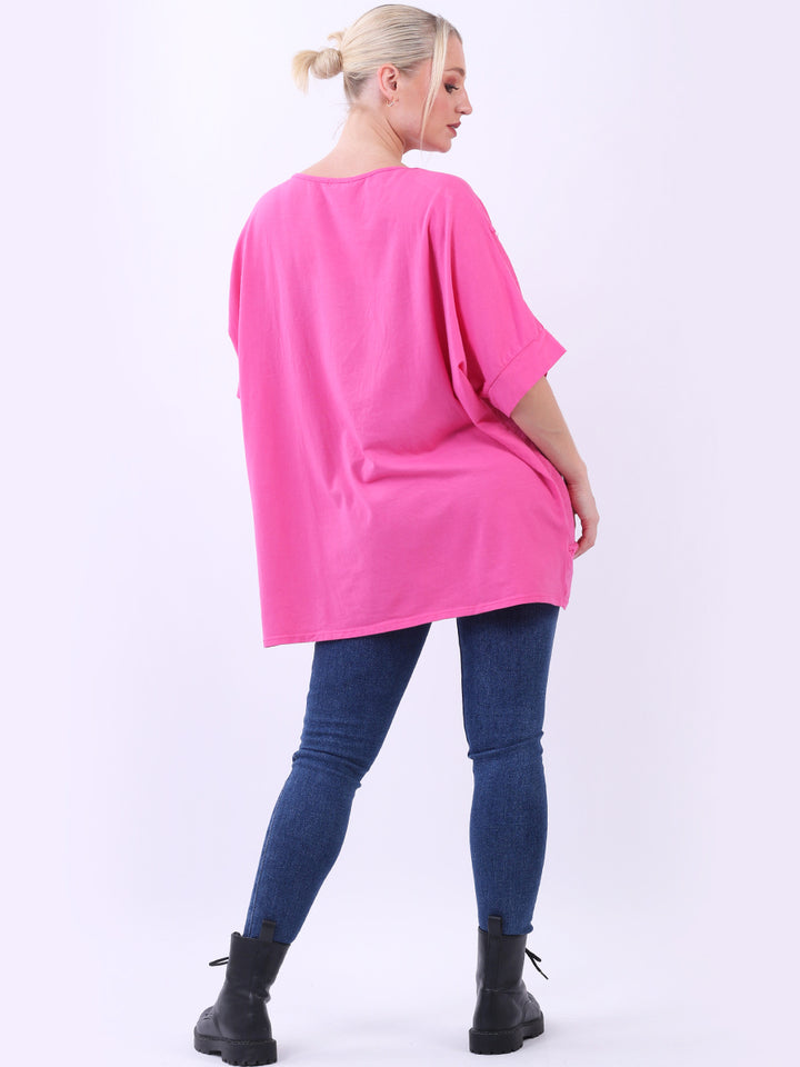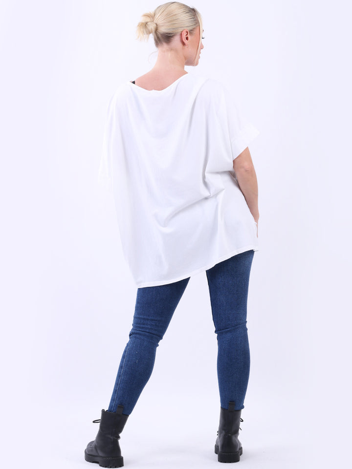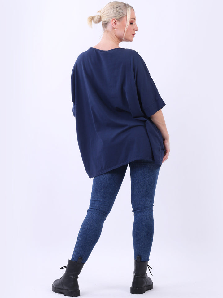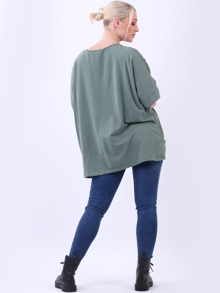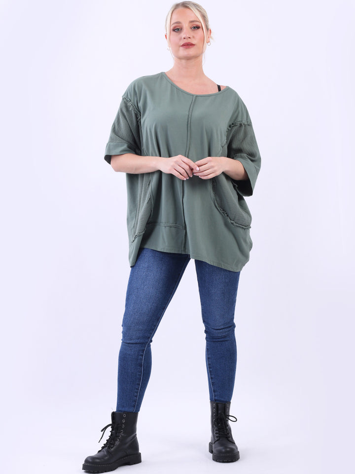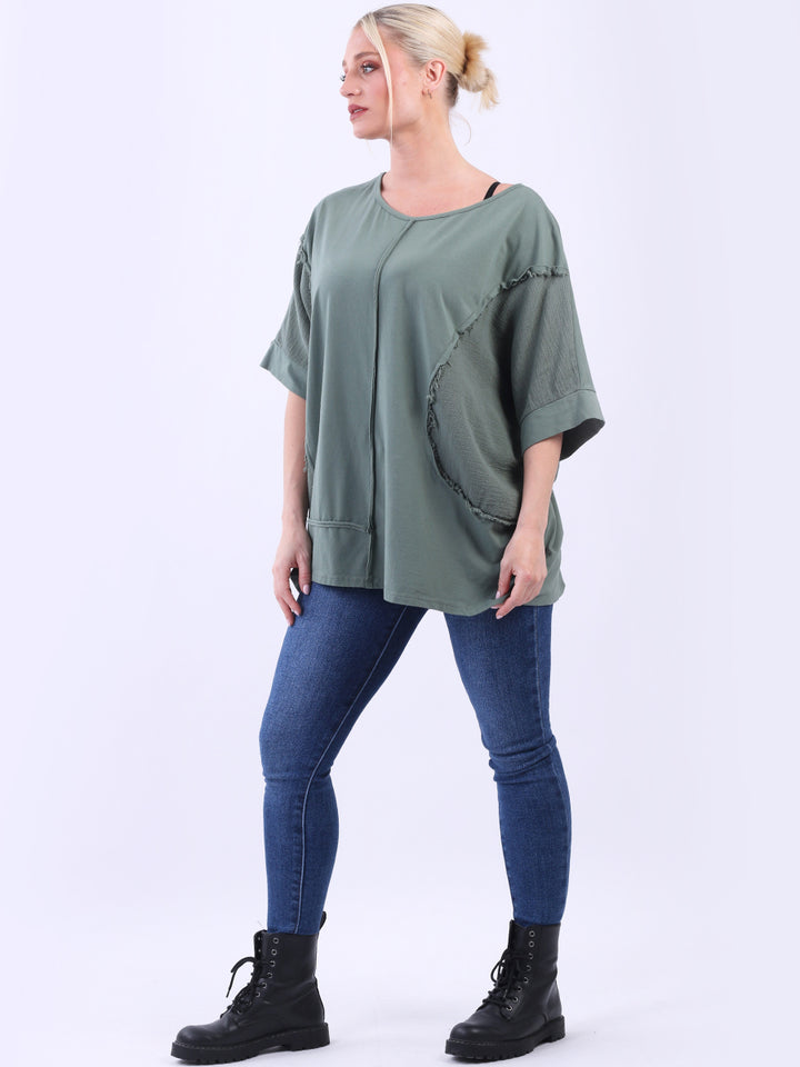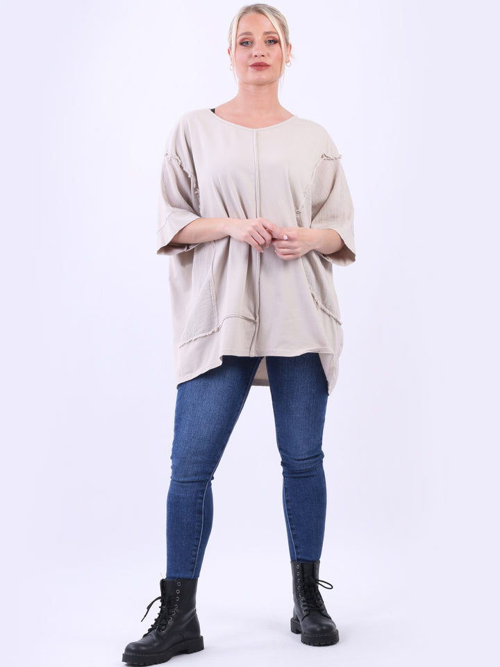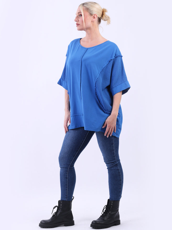 A unique and chic design that is very popular among women wearers. Made in Italy high quality fabric blend that gives soft and comfy touch and feel, the top has awesome features like wide round neckline, baggy plus size fit and trendy hopsack style patches on the side and sleeves. Dress it with skinny denims and platform heels for ideal casual finish.