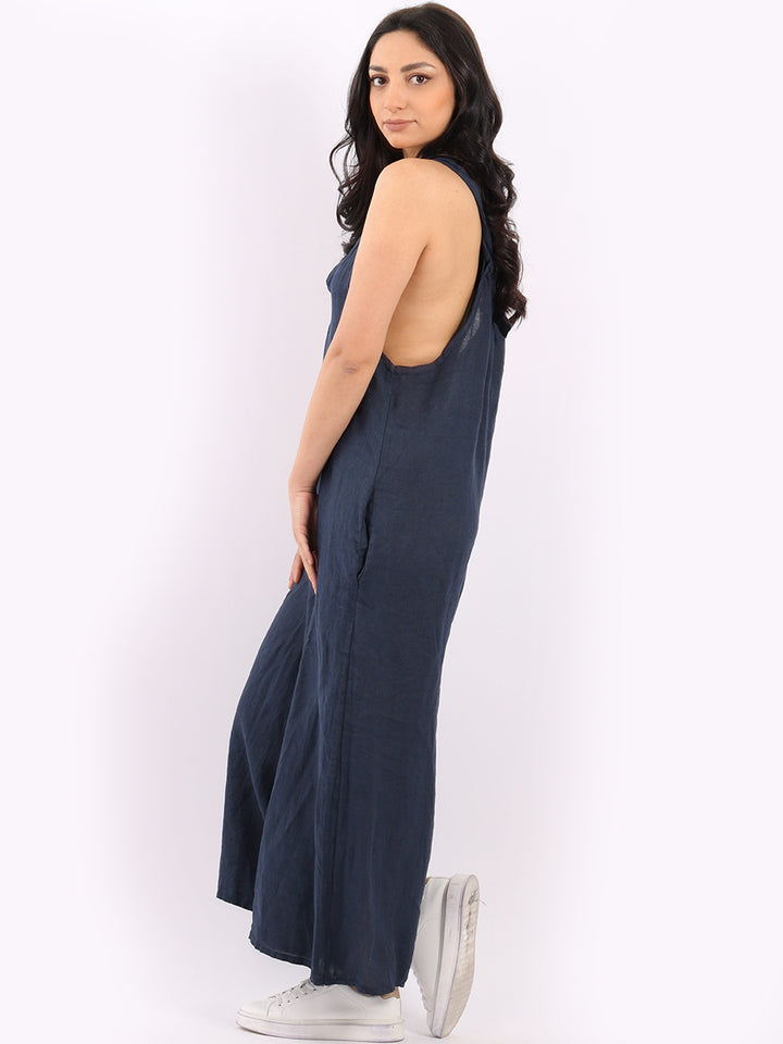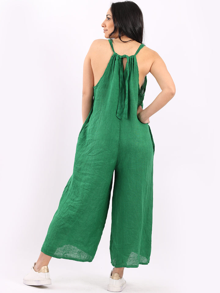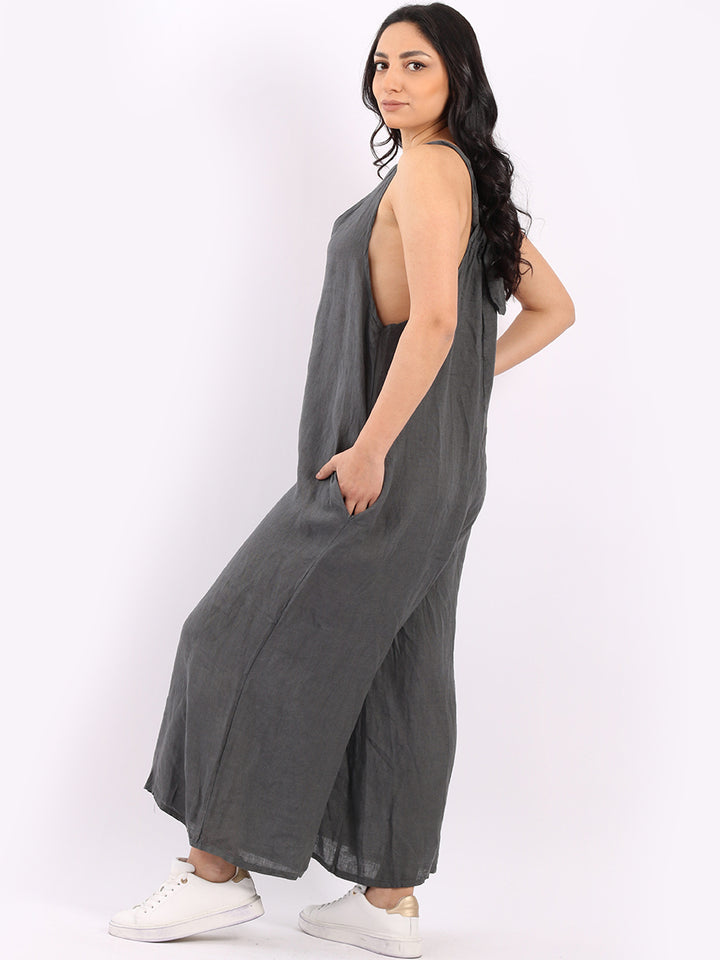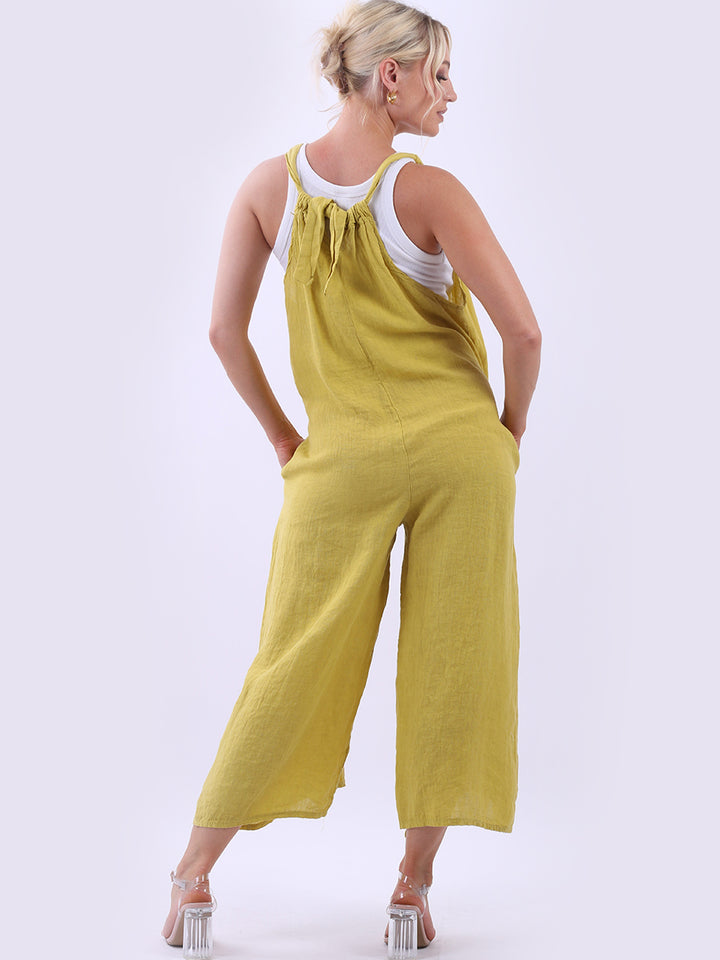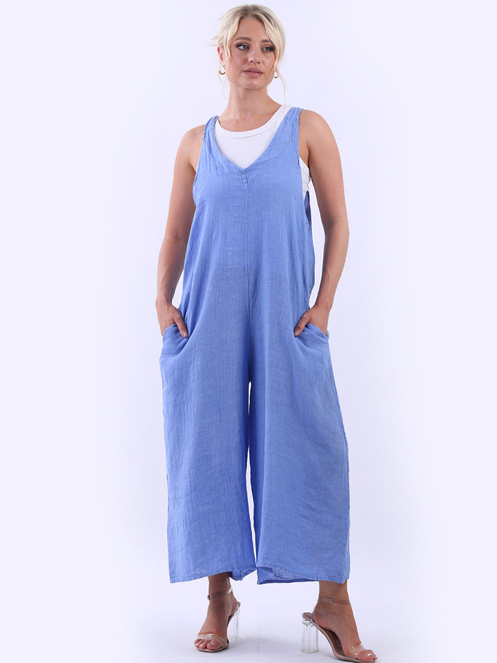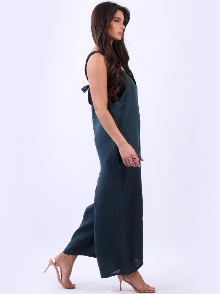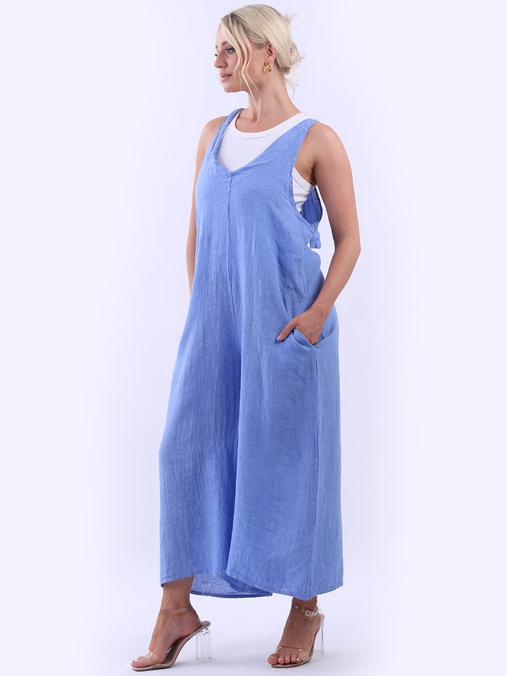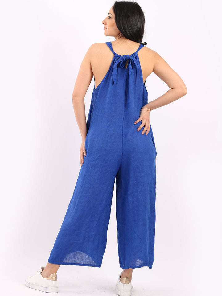 Styles that are sensual and appealing are always popular among women wearers. Versatile with tie knot at the back this dungaree style is made in Italy for top notch quality, linen is popular for its seamless finish and soft comfy feel, wide legs and baggy fit. Dress it with cotton jacket by Redwholesale and sandals for semi-formal occasions.