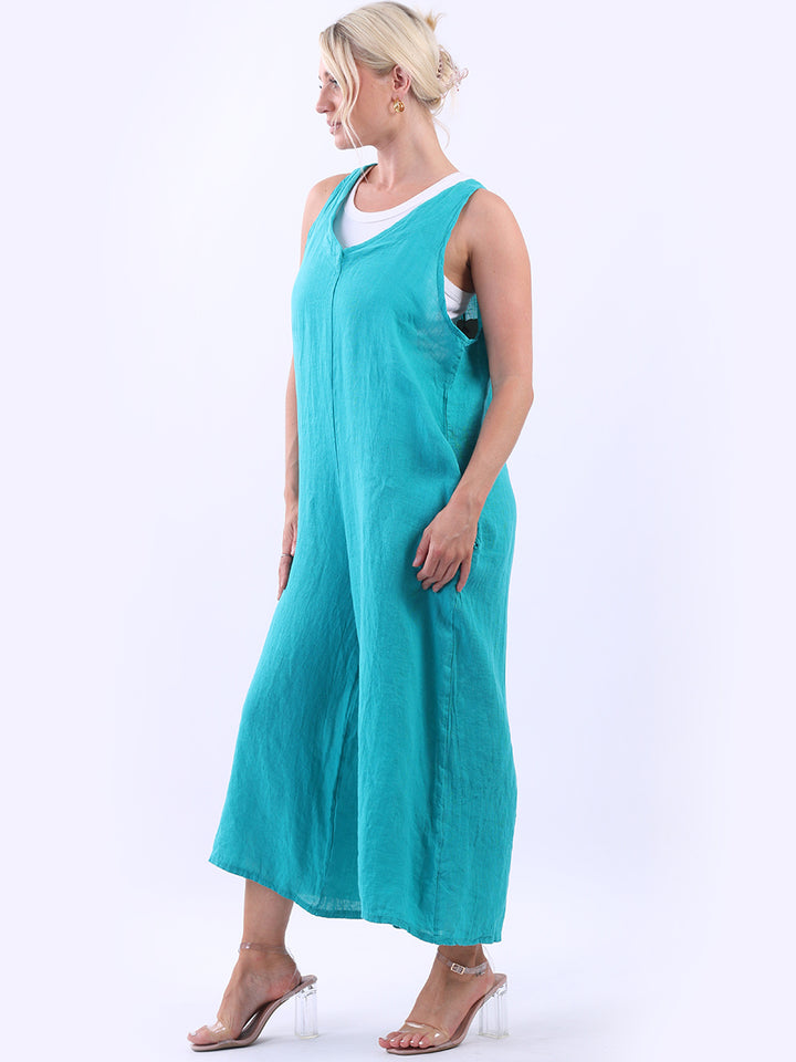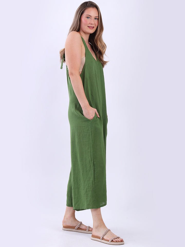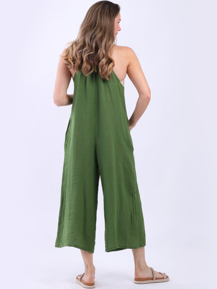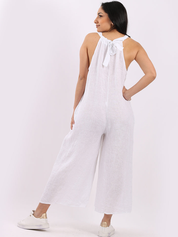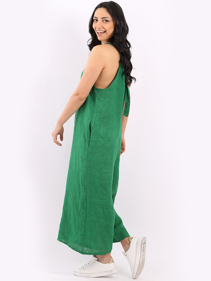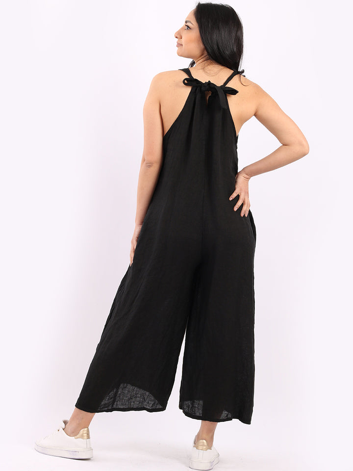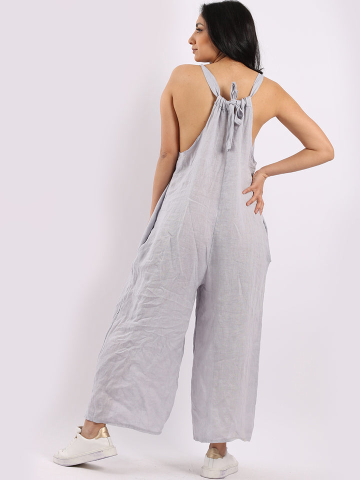 Styles that are sensual and appealing are always popular among women wearers. Versatile with tie knot at the back this dungaree style is made in Italy for top notch quality, linen is popular for its seamless finish and soft comfy feel, wide legs and baggy fit. Dress it with cotton jacket by Redwholesale and sandals for semi-formal occasions.