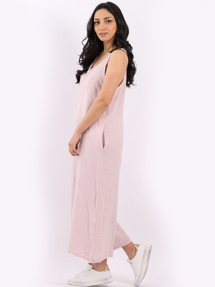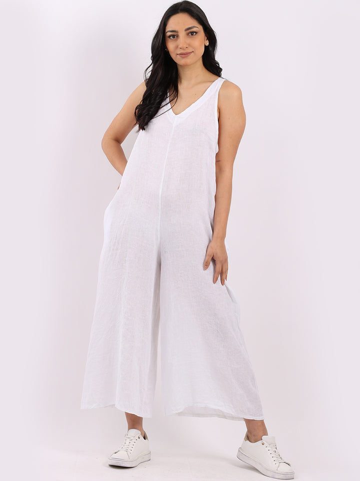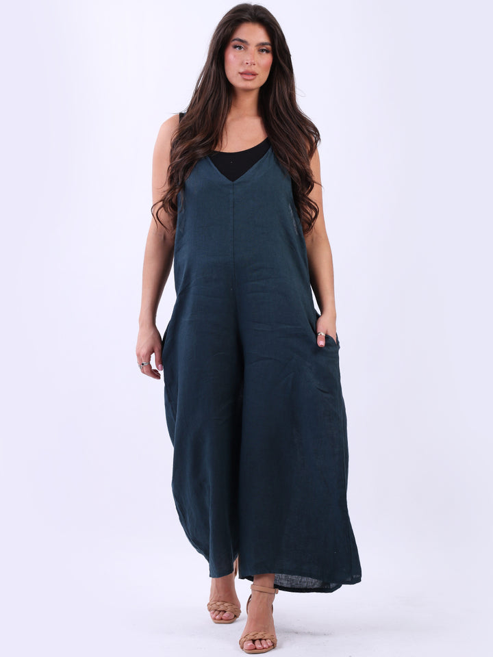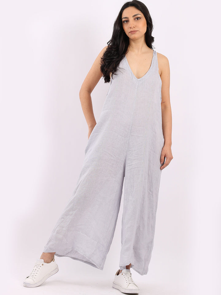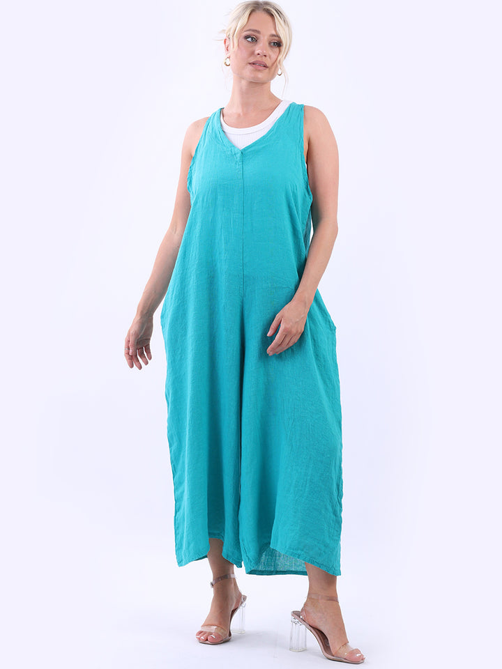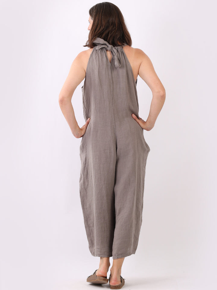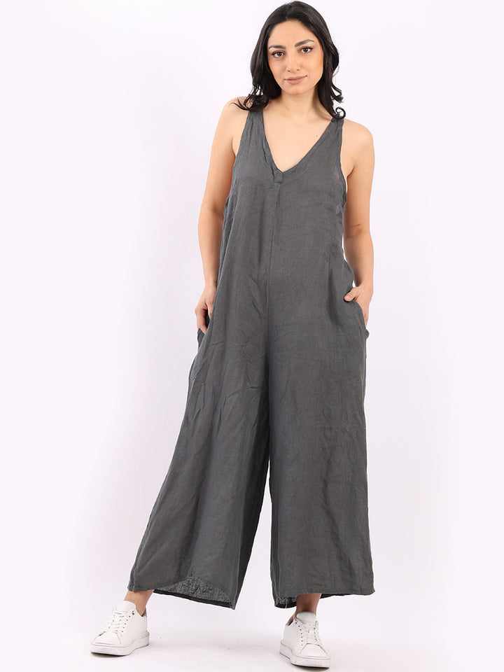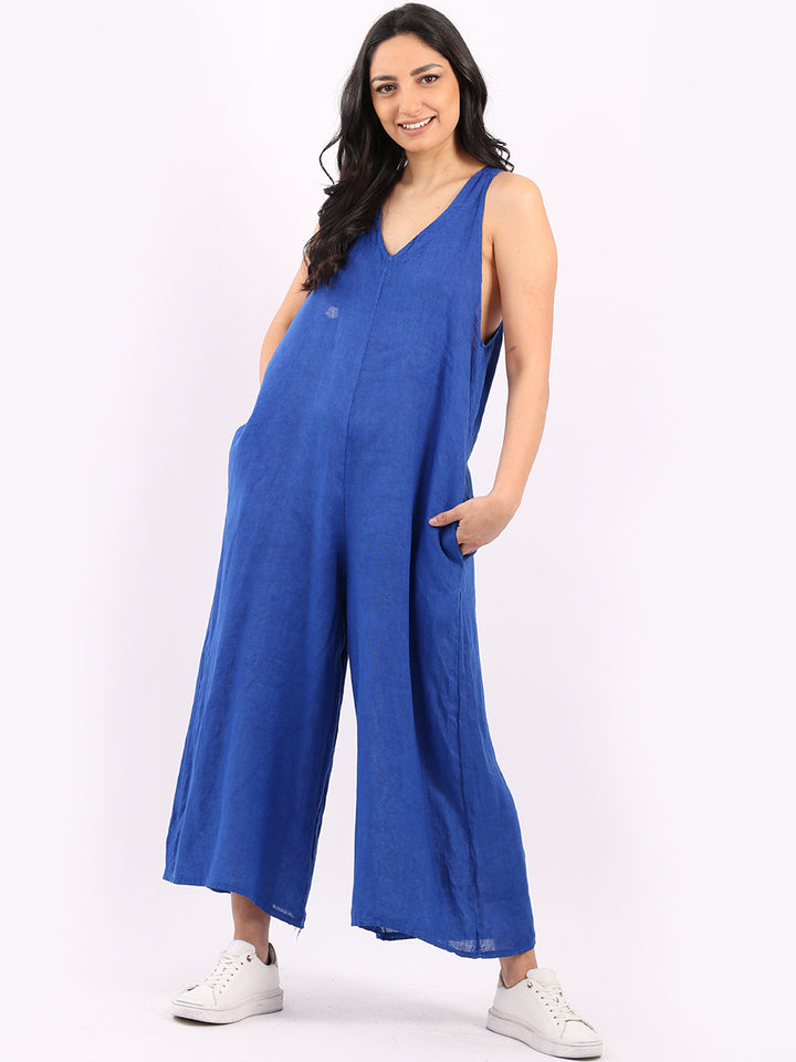 Styles that are sensual and appealing are always popular among women wearers. Versatile with tie knot at the back this dungaree style is made in Italy for top notch quality, linen is popular for its seamless finish and soft comfy feel, wide legs and baggy fit. Dress it with cotton jacket by Redwholesale and sandals for semi-formal occasions.