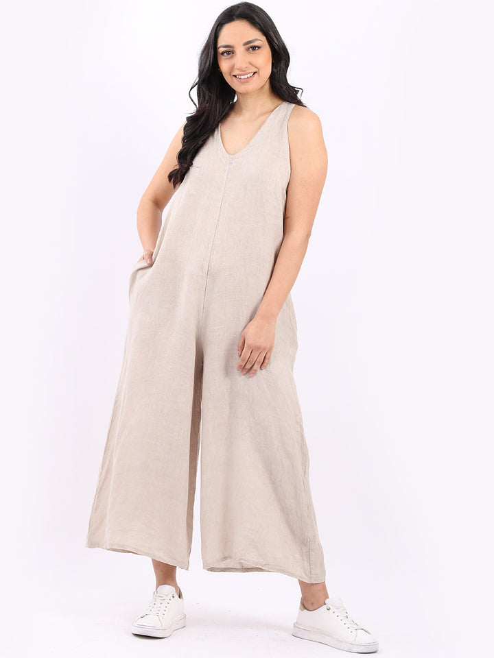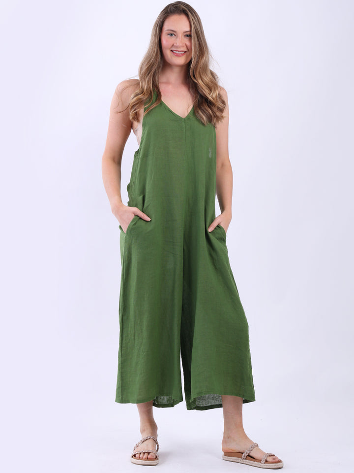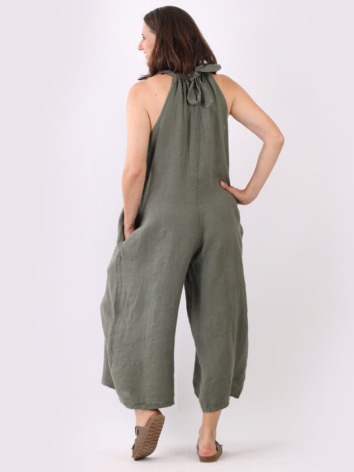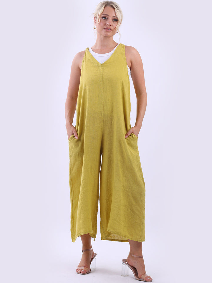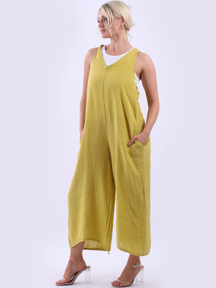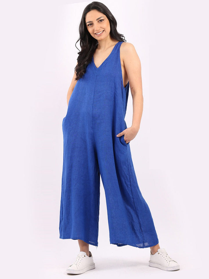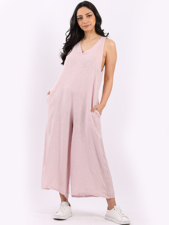 Styles that are sensual and appealing are always popular among women wearers. Versatile with tie knot at the back this dungaree style is made in Italy for top notch quality, linen is popular for its seamless finish and soft comfy feel, wide legs and baggy fit. Dress it with cotton jacket by Redwholesale and sandals for semi-formal occasions.
