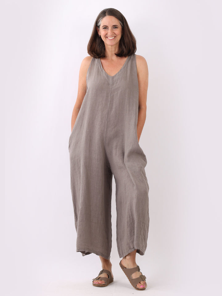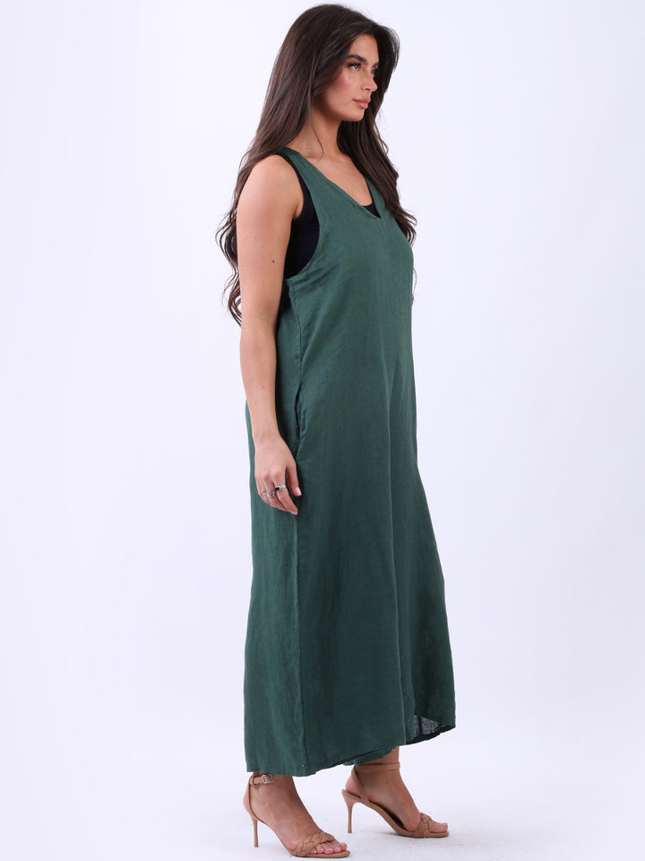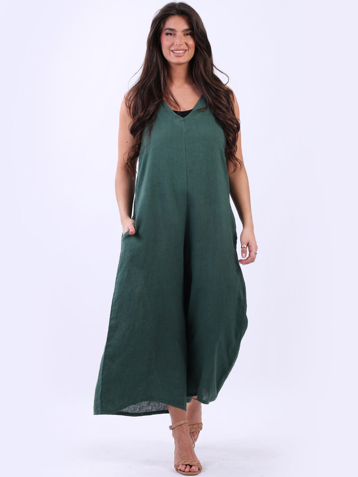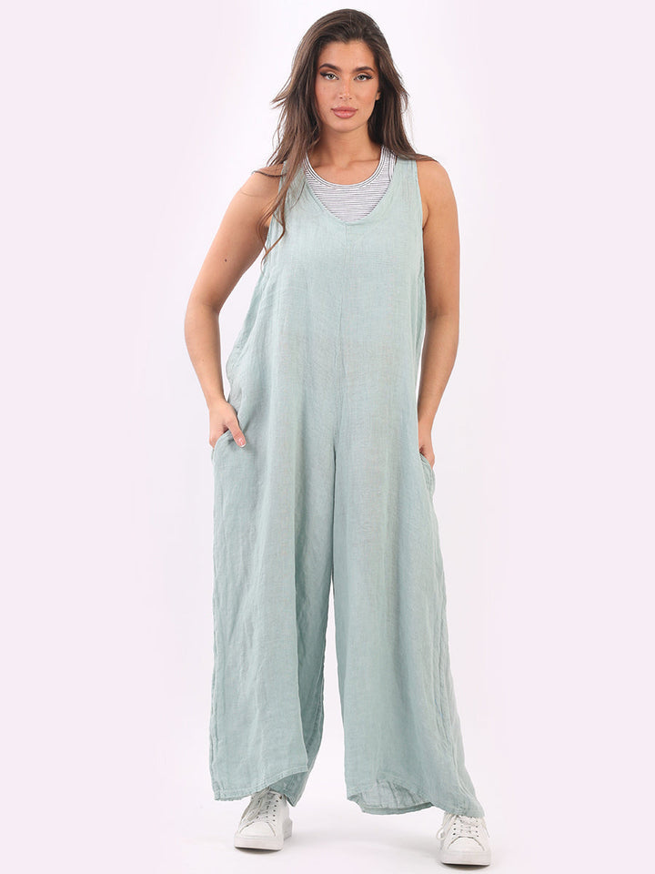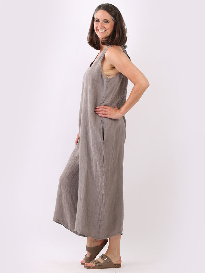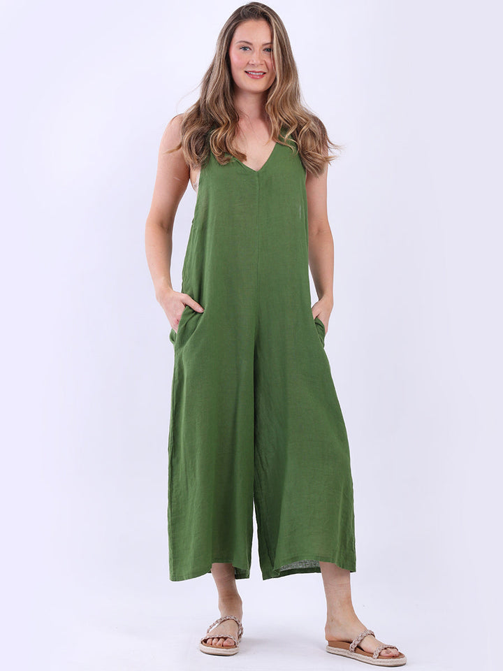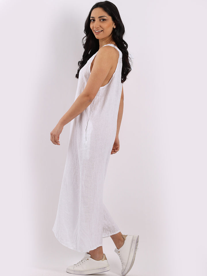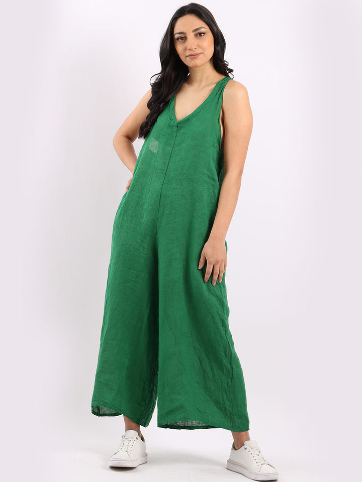 Styles that are sensual and appealing are always popular among women wearers. Versatile with tie knot at the back this dungaree style is made in Italy for top notch quality, linen is popular for its seamless finish and soft comfy feel, wide legs and baggy fit. Dress it with cotton jacket by Redwholesale and sandals for semi-formal occasions.