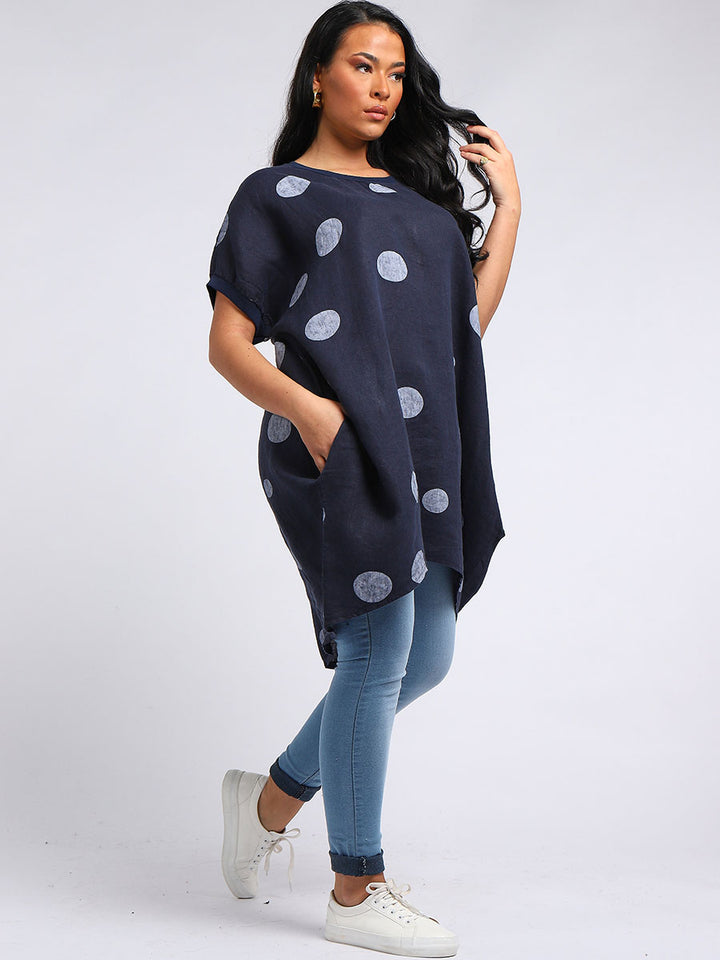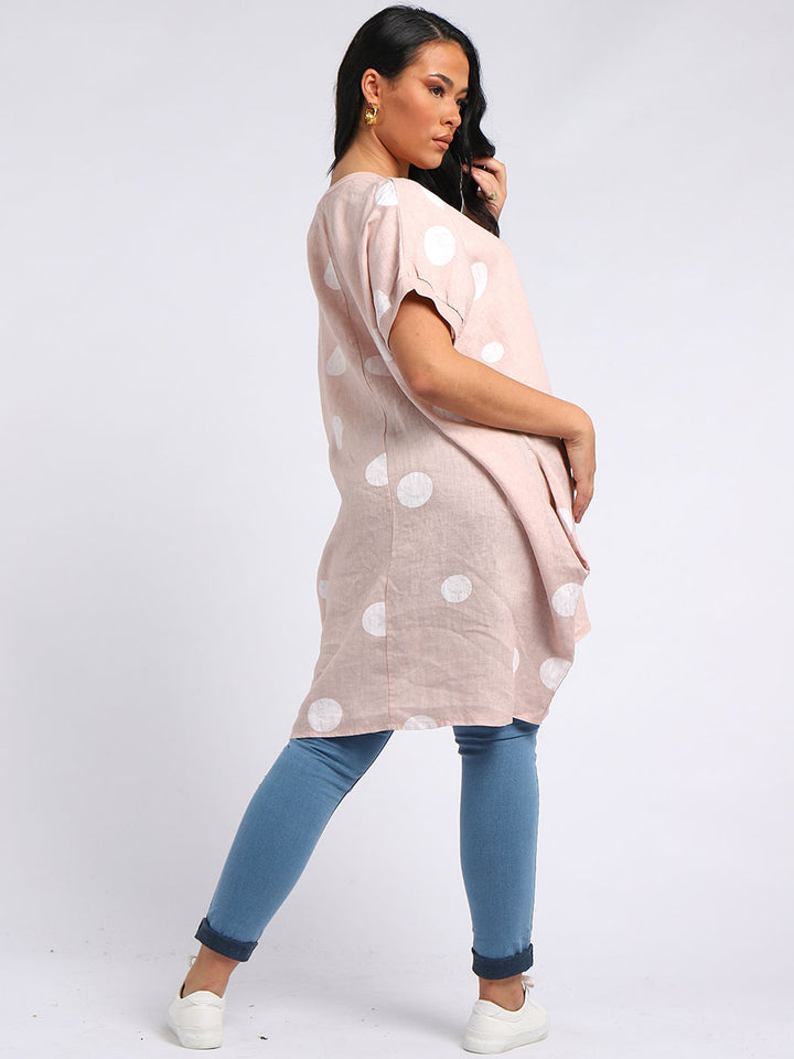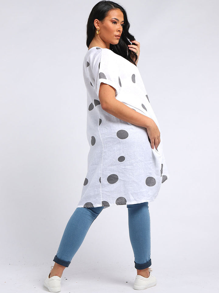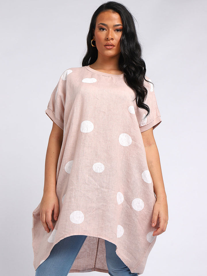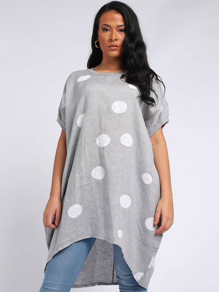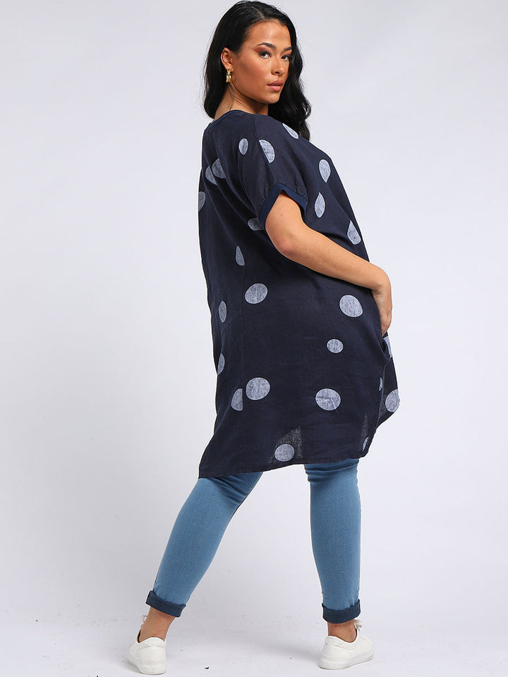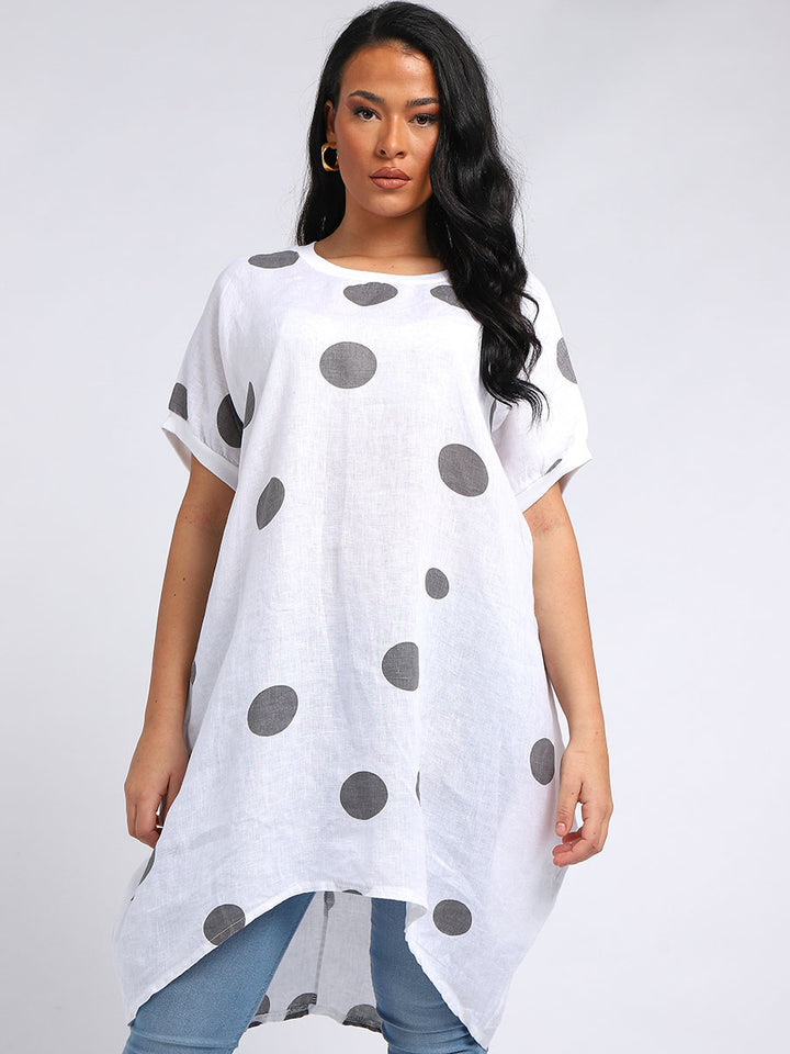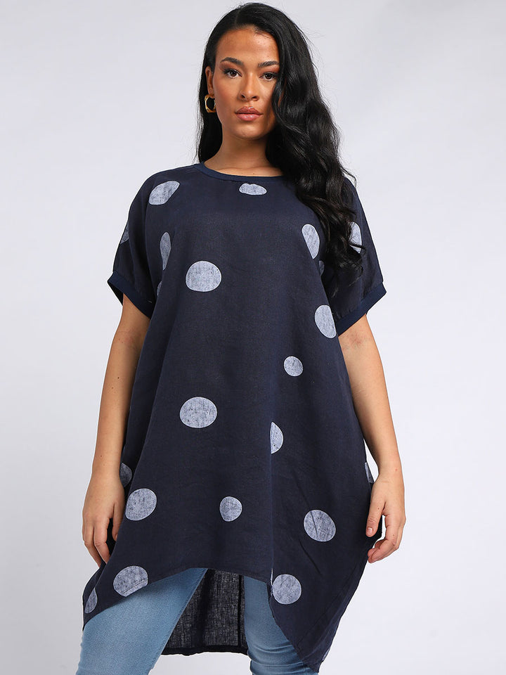 Make the casual days comfortable with this baggy linen top. It is featured with scoop neck, short sleeves and polka dots to induce style with simplicity. Exclusively designed and perfectly tailored for the comfort conscious customers.