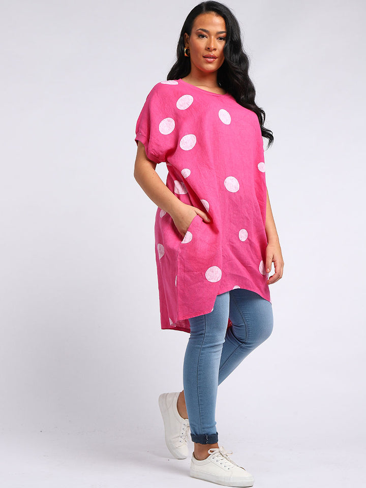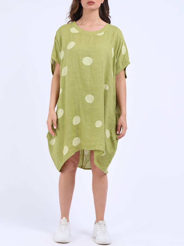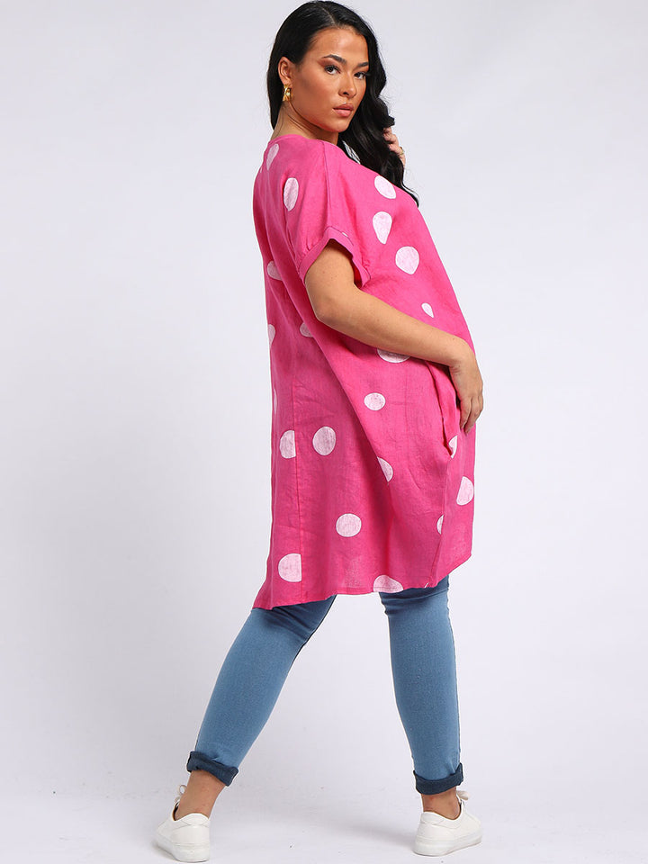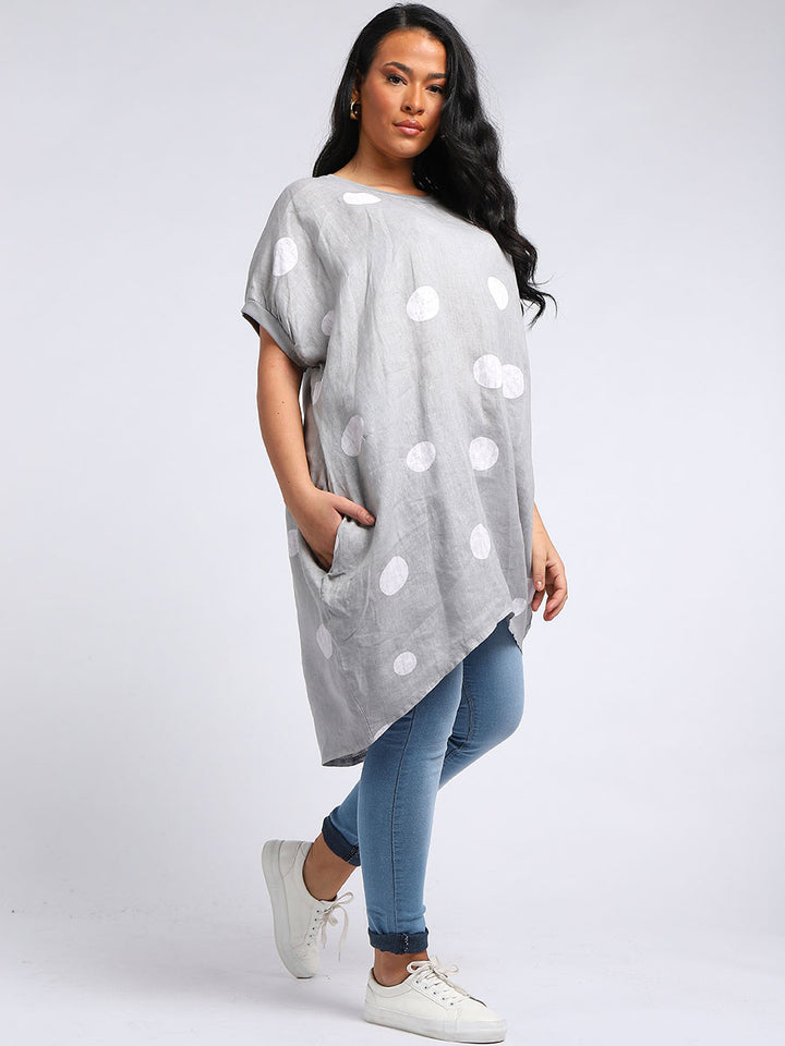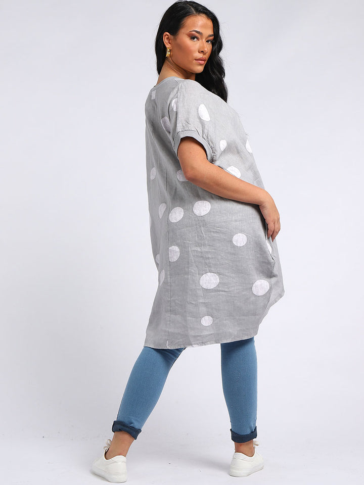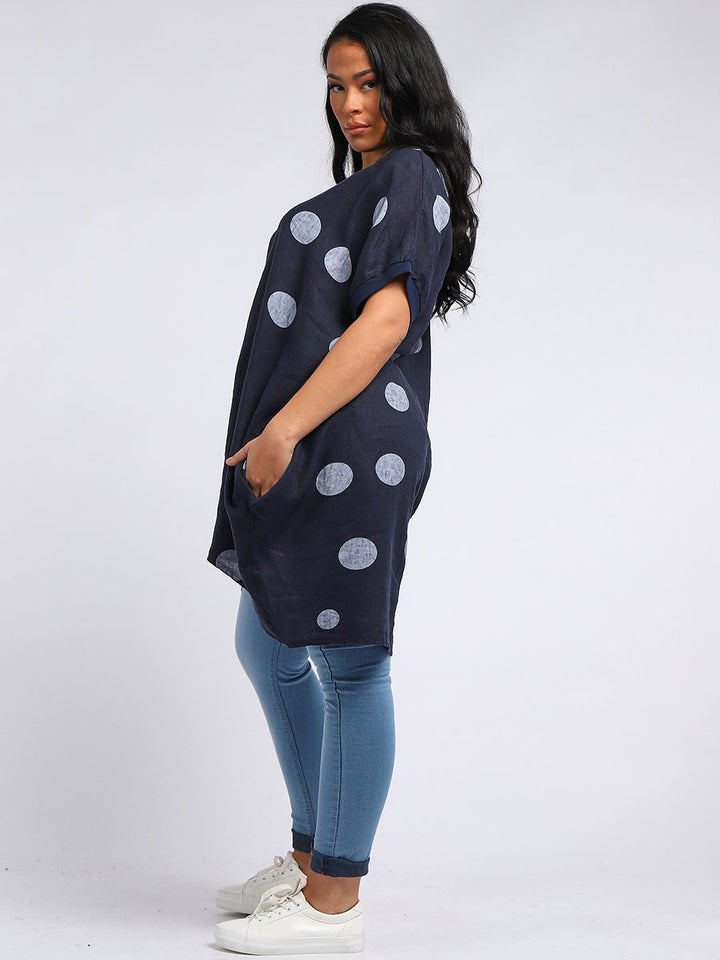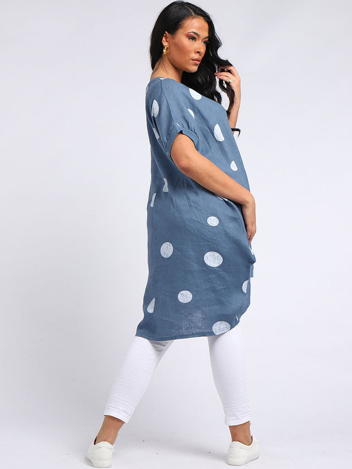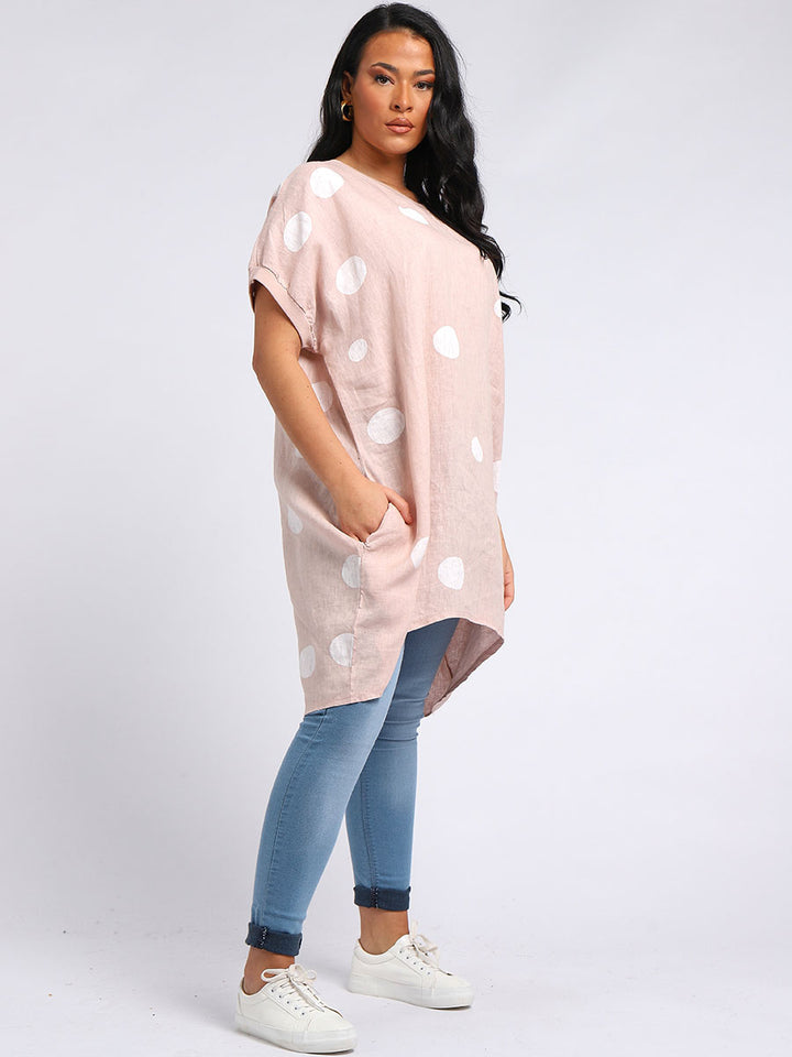 Make the casual days comfortable with this baggy linen top. It is featured with scoop neck, short sleeves and polka dots to induce style with simplicity. Exclusively designed and perfectly tailored for the comfort conscious customers.