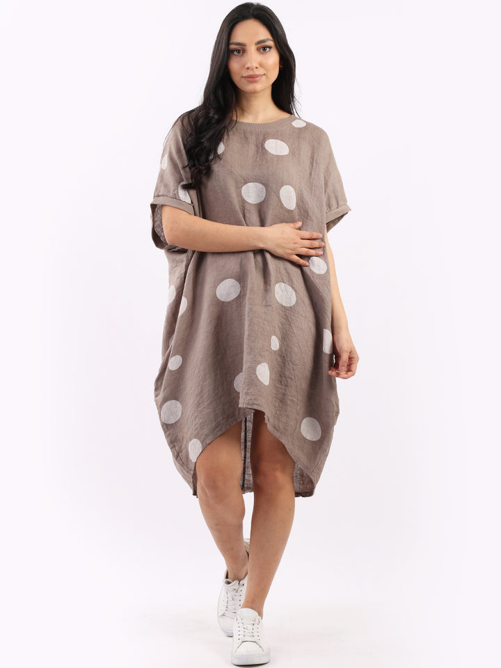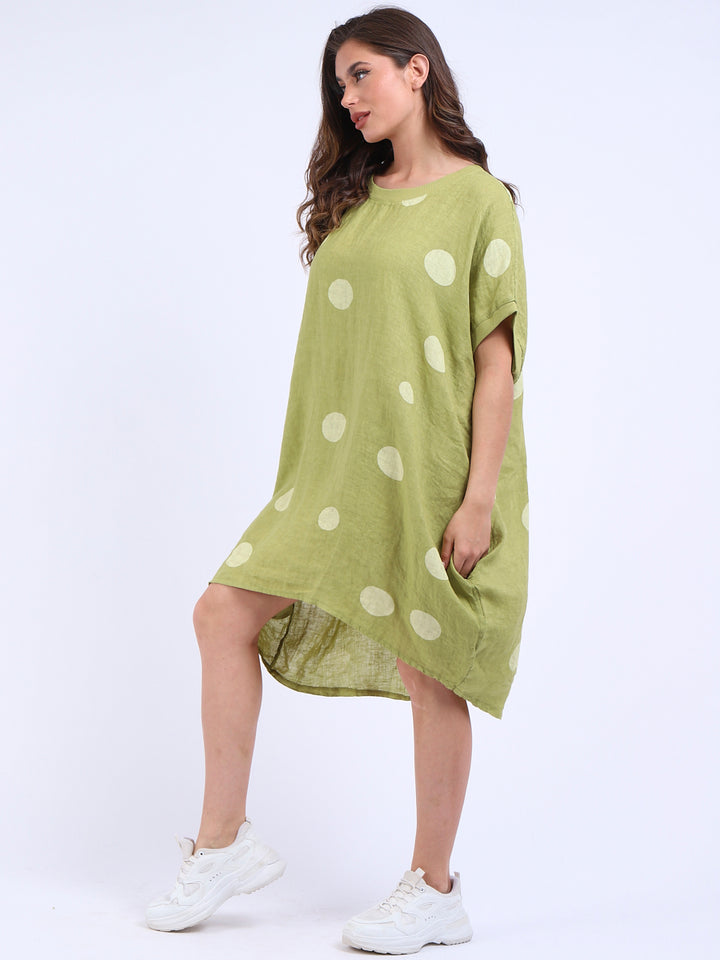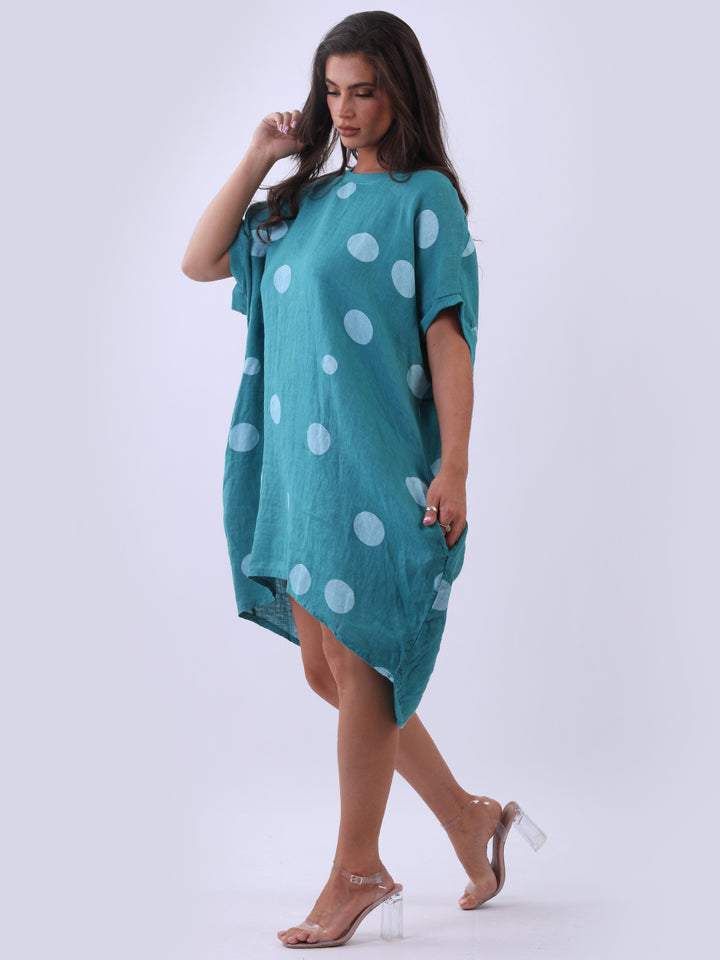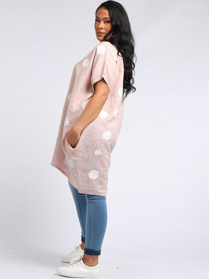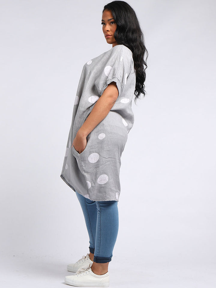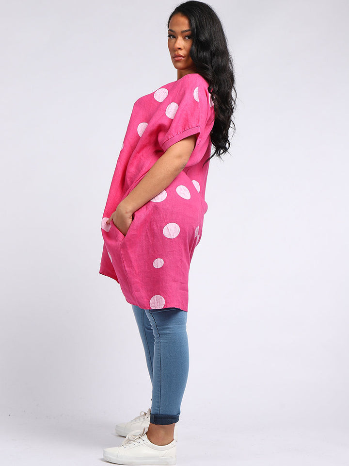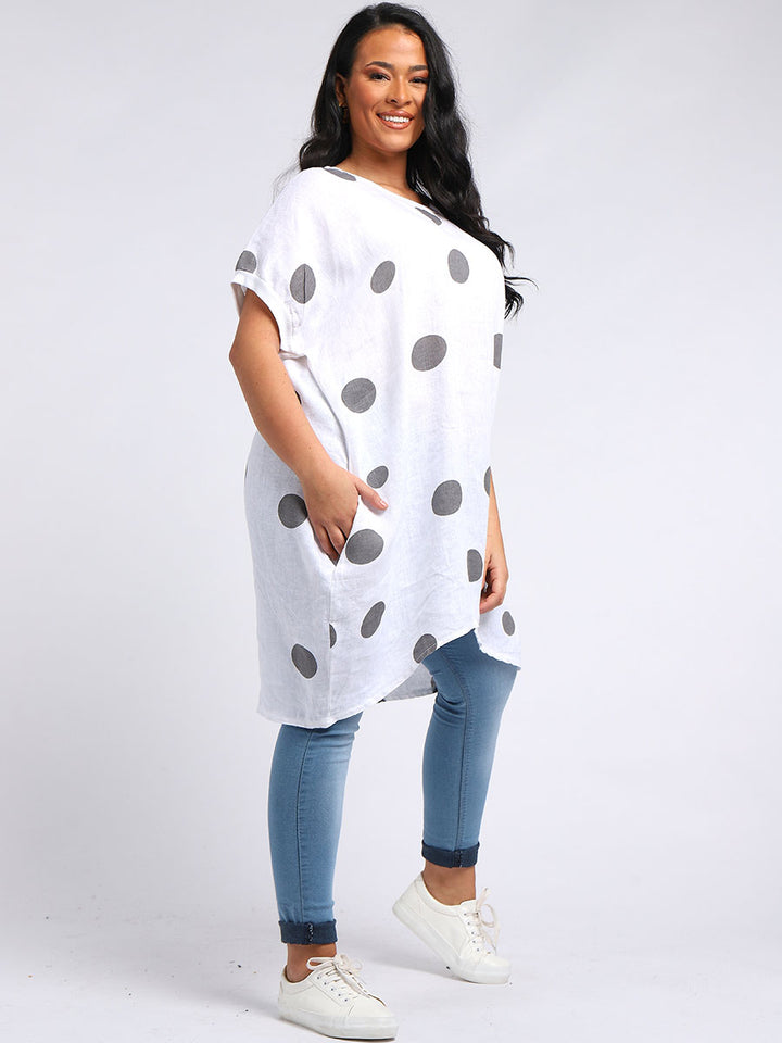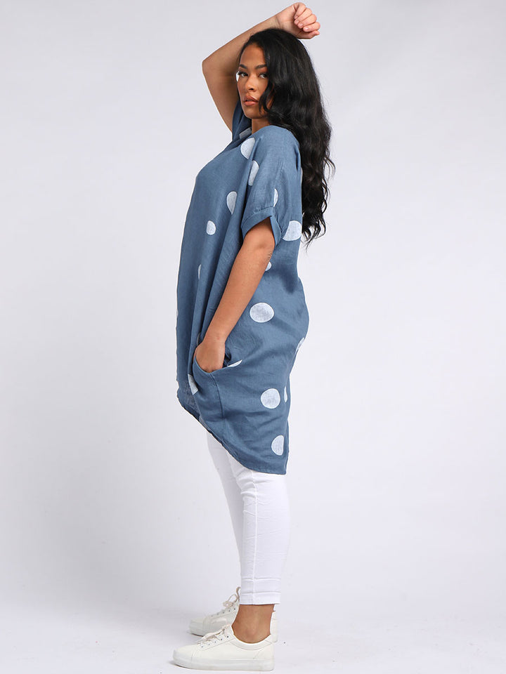Make the casual days comfortable with this baggy linen top. It is featured with scoop neck, short sleeves and polka dots to induce style with simplicity. Exclusively designed and perfectly tailored for the comfort conscious customers.