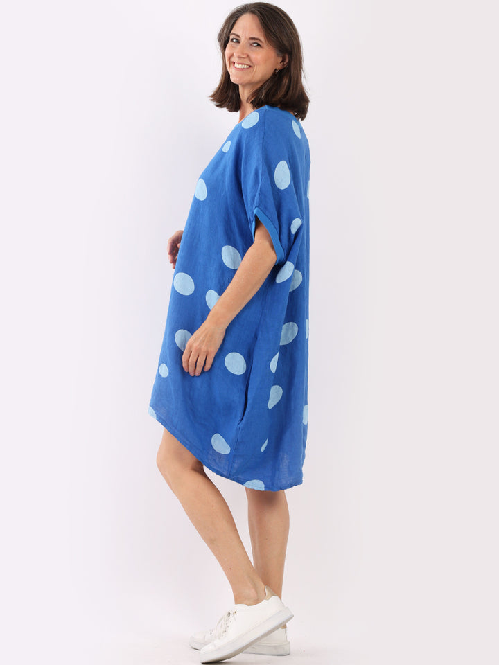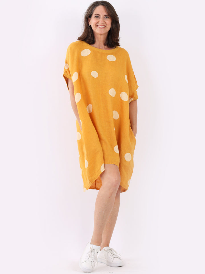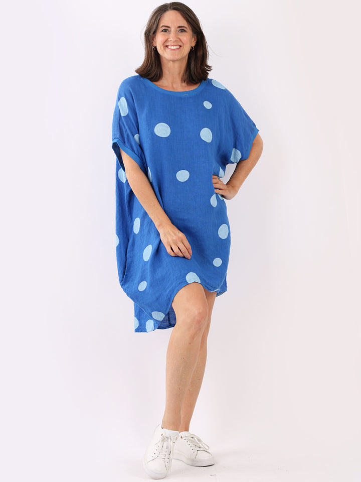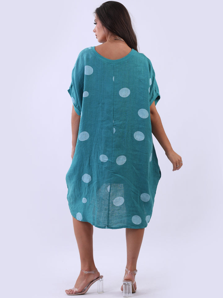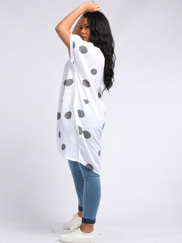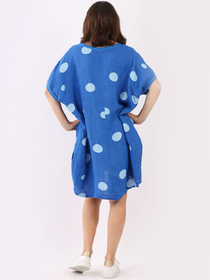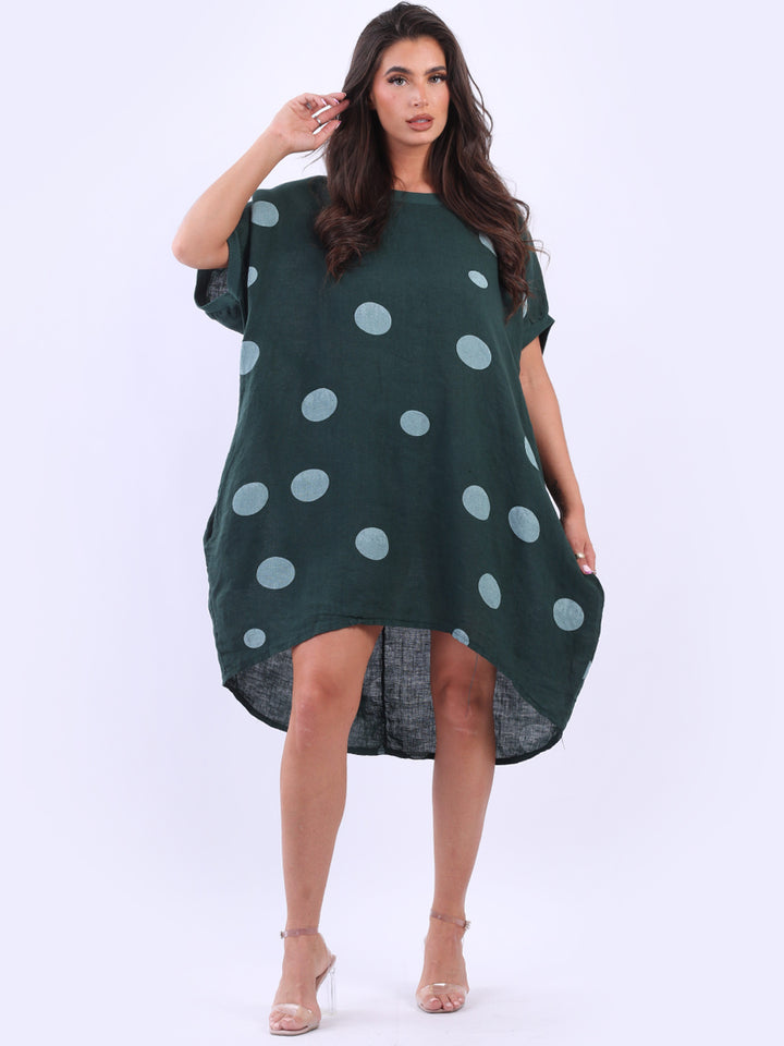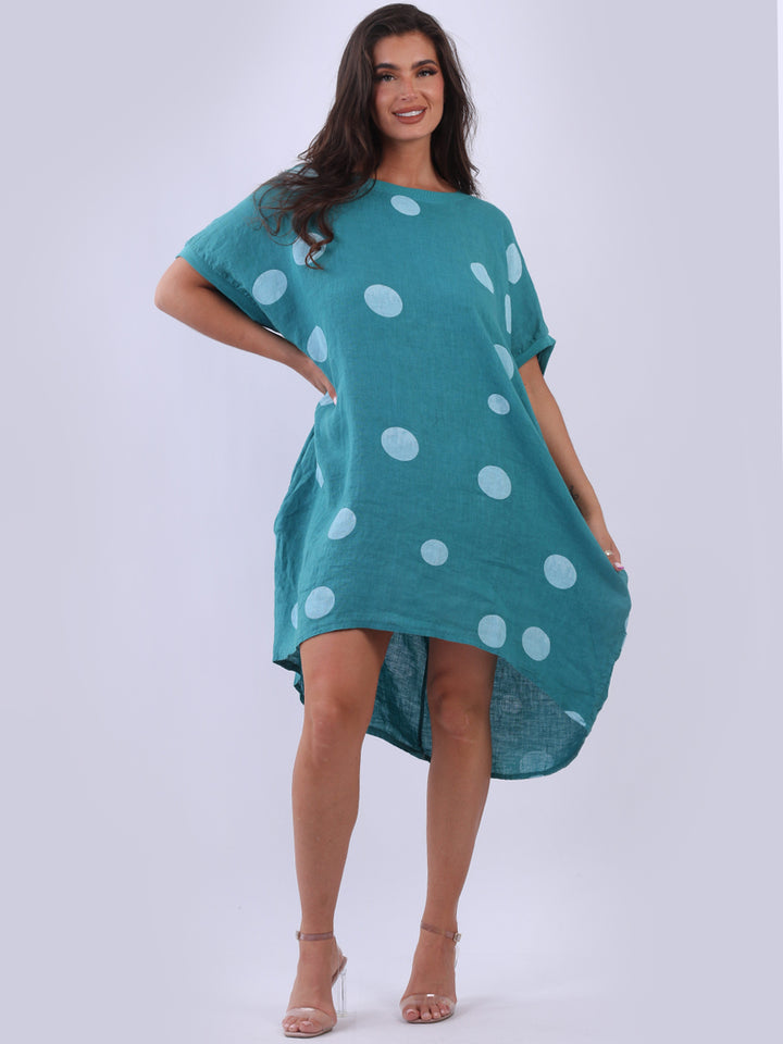 Make the casual days comfortable with this baggy linen top. It is featured with scoop neck, short sleeves and polka dots to induce style with simplicity. Exclusively designed and perfectly tailored for the comfort conscious customers.