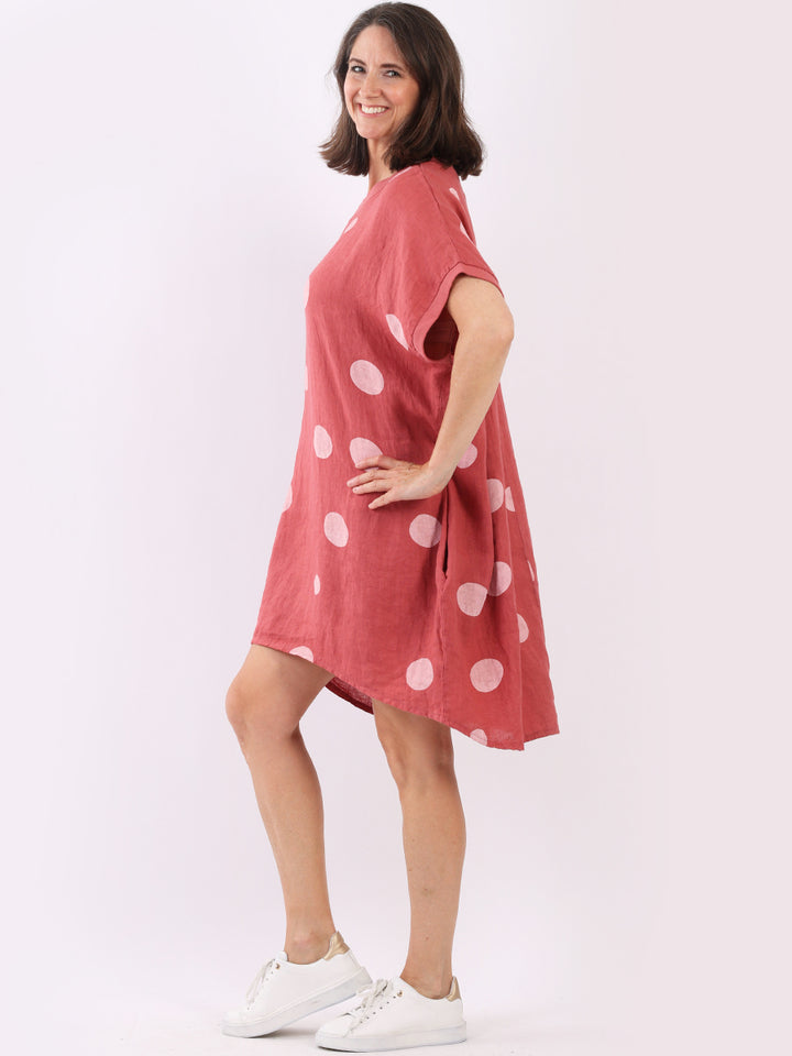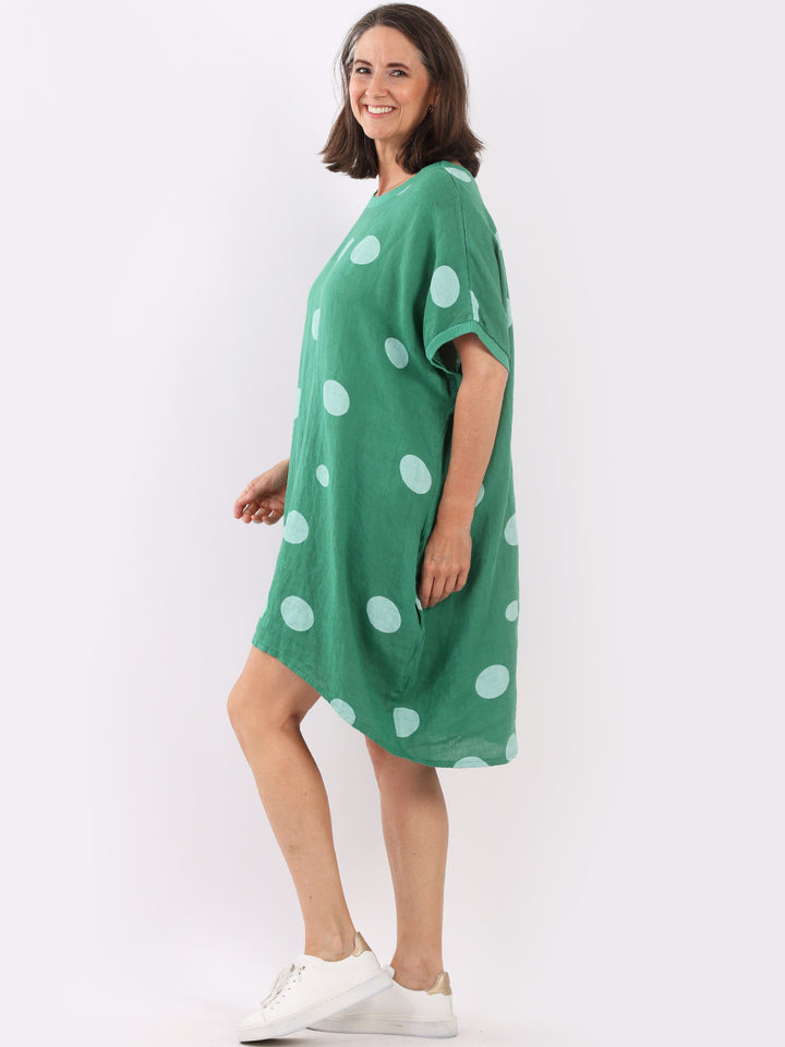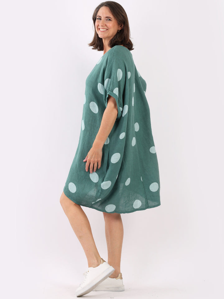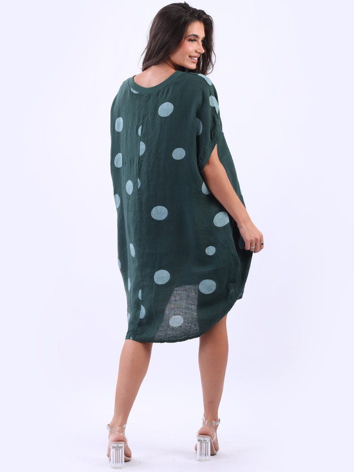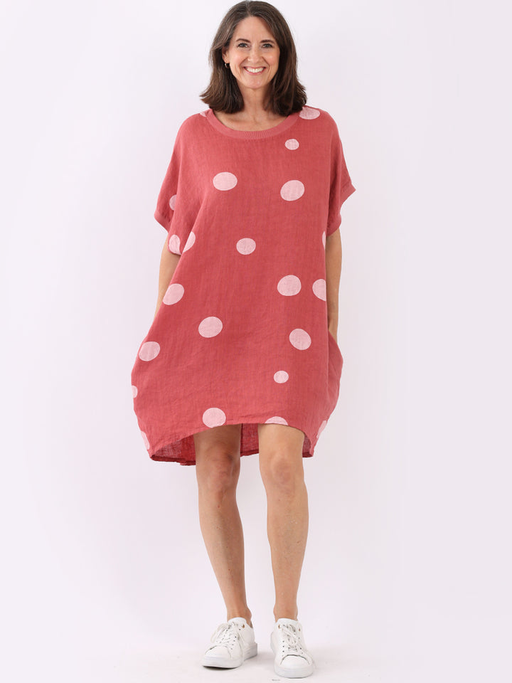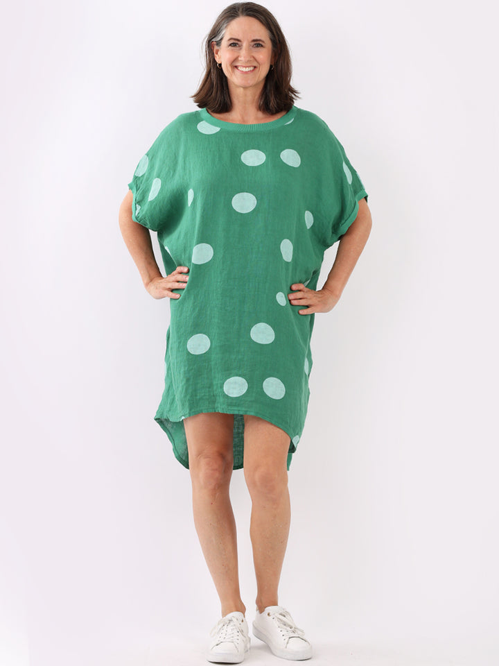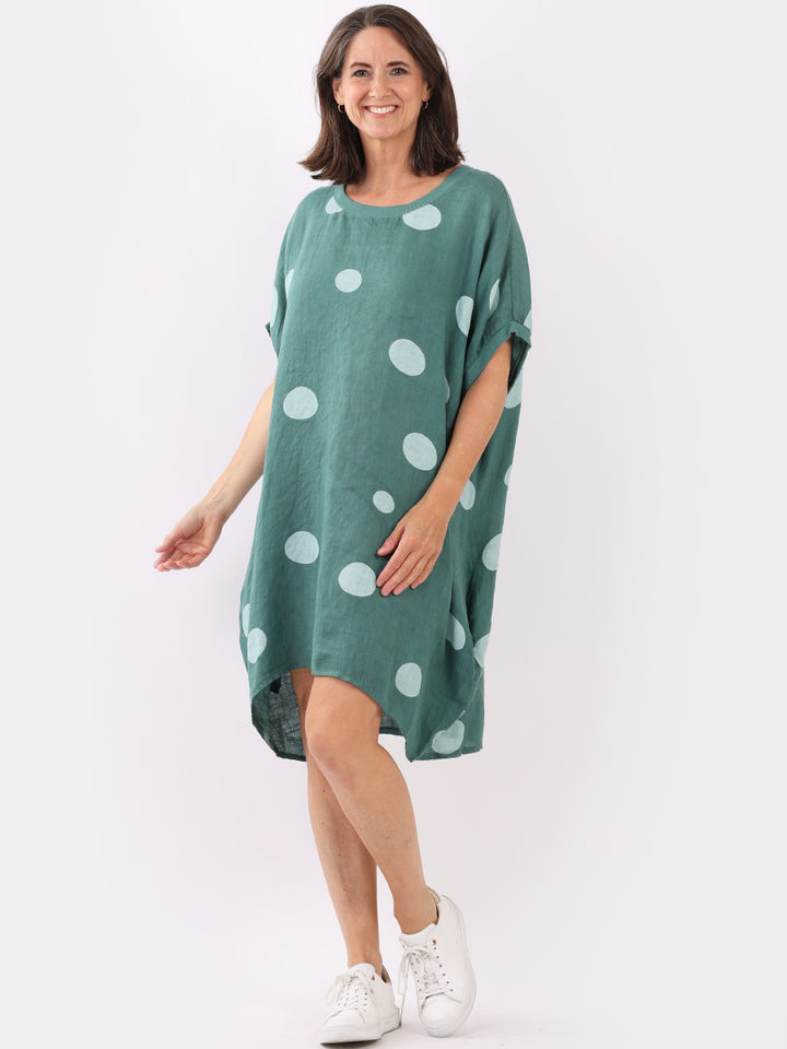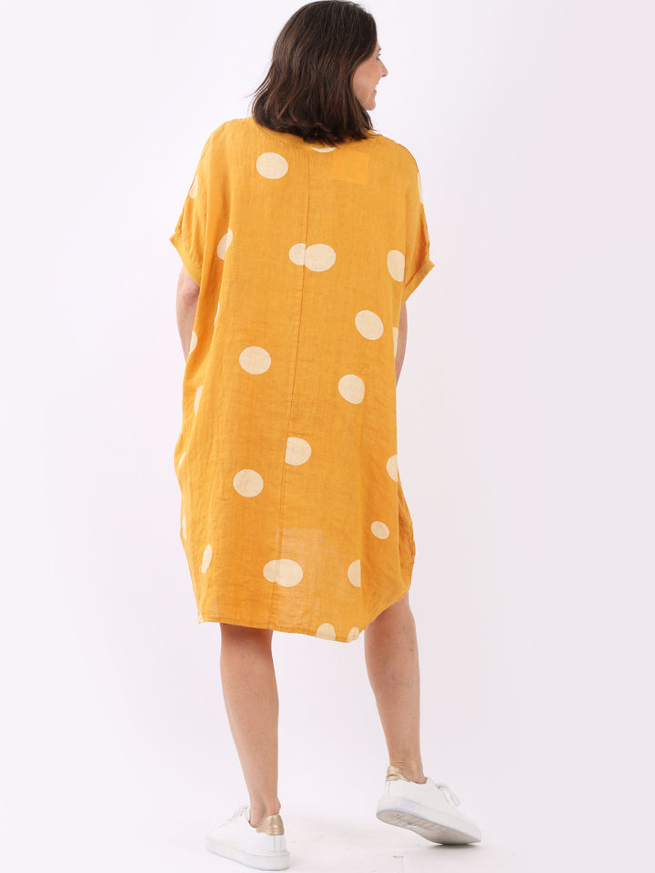 Make the casual days comfortable with this baggy linen top. It is featured with scoop neck, short sleeves and polka dots to induce style with simplicity. Exclusively designed and perfectly tailored for the comfort conscious customers.