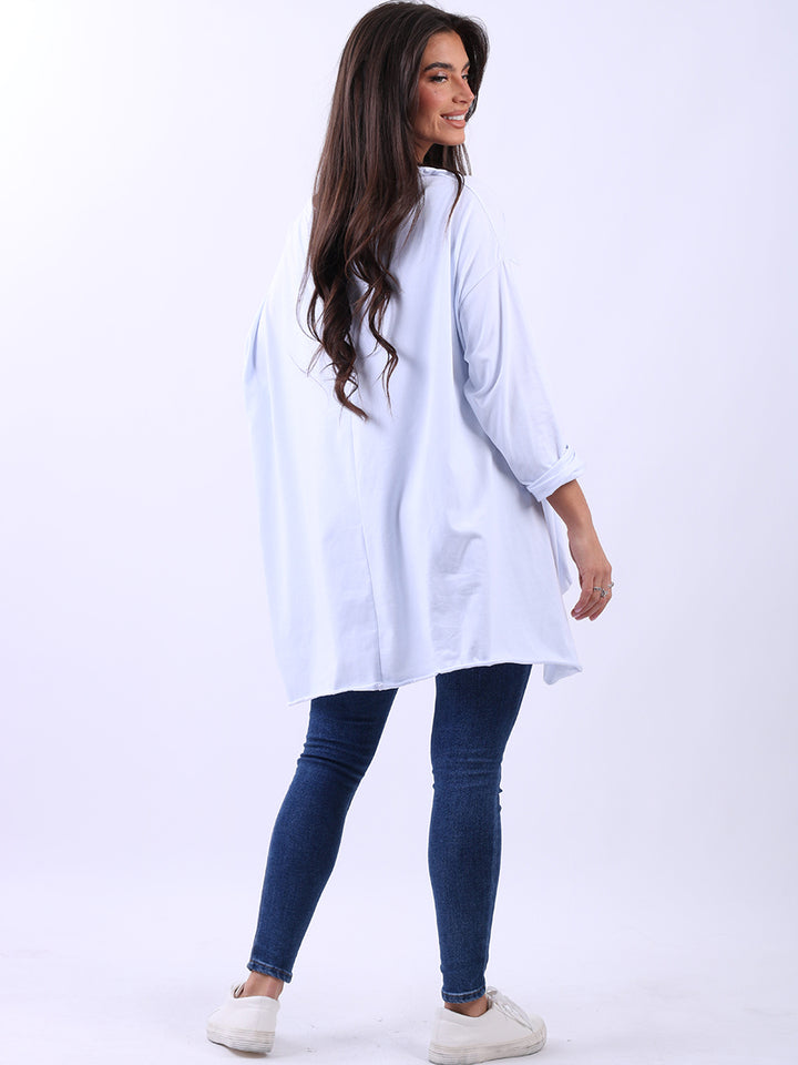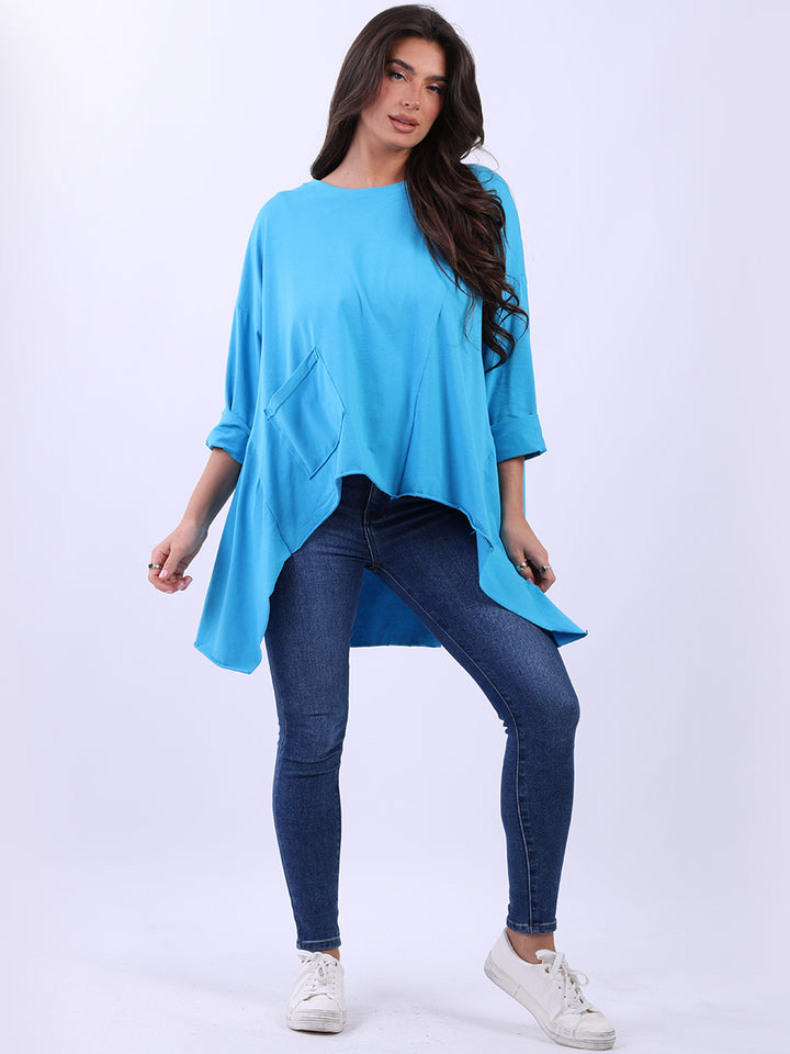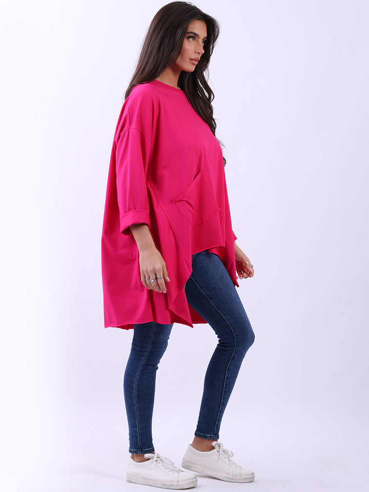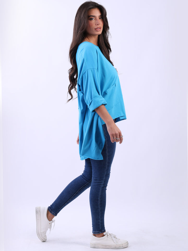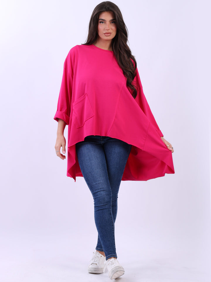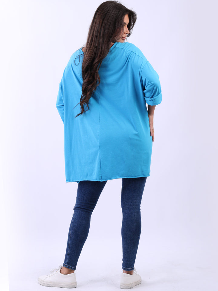 Polished and luxuriously rich look is achieved in this silhouette with the right combination of cut and features. Made in Italy with finest quality cotton that is always in high demand with women wearers as its cozy and soothing, the wide round neckline, baggy plus size finish and long rolled up customizable sleeves makes this women wearers top a dream come true. This stays in high demand as its all-season and easy to personalize with own sense of dressing.