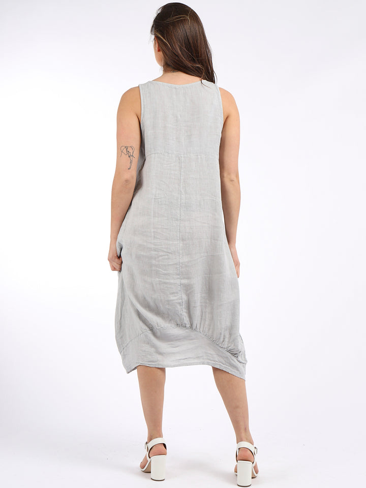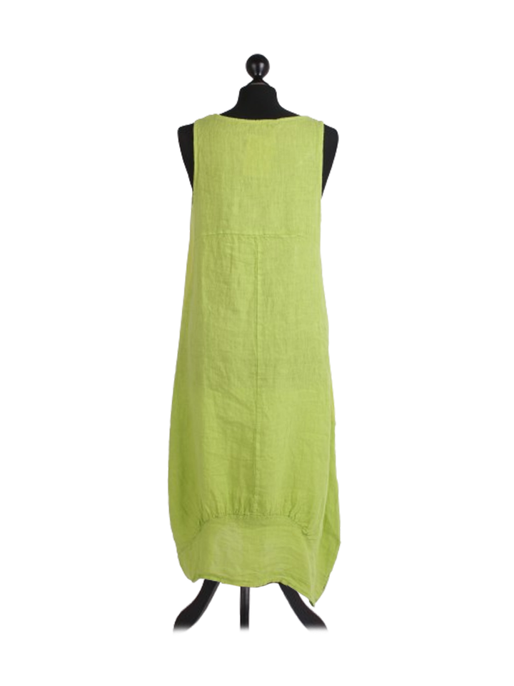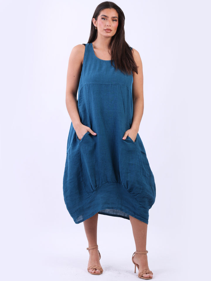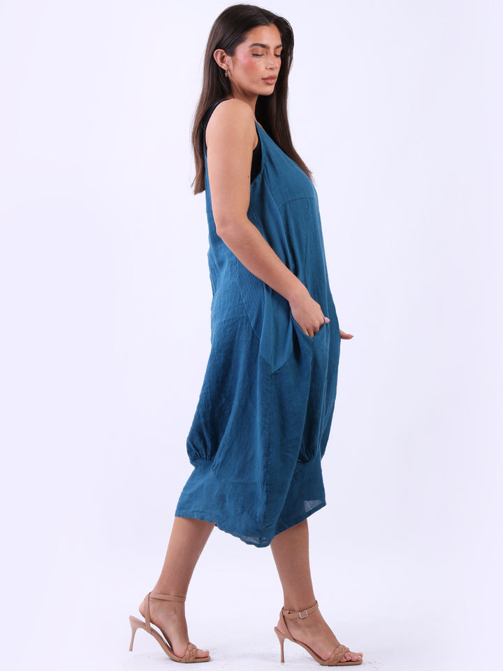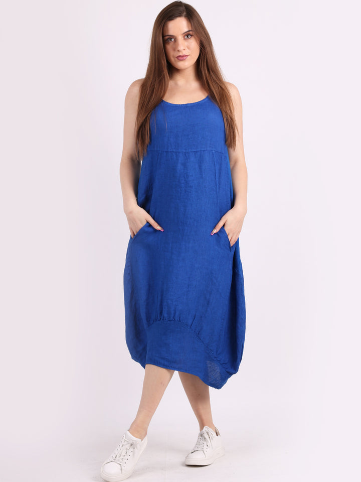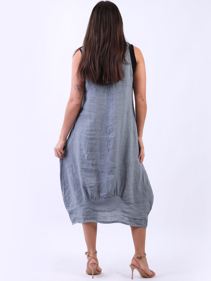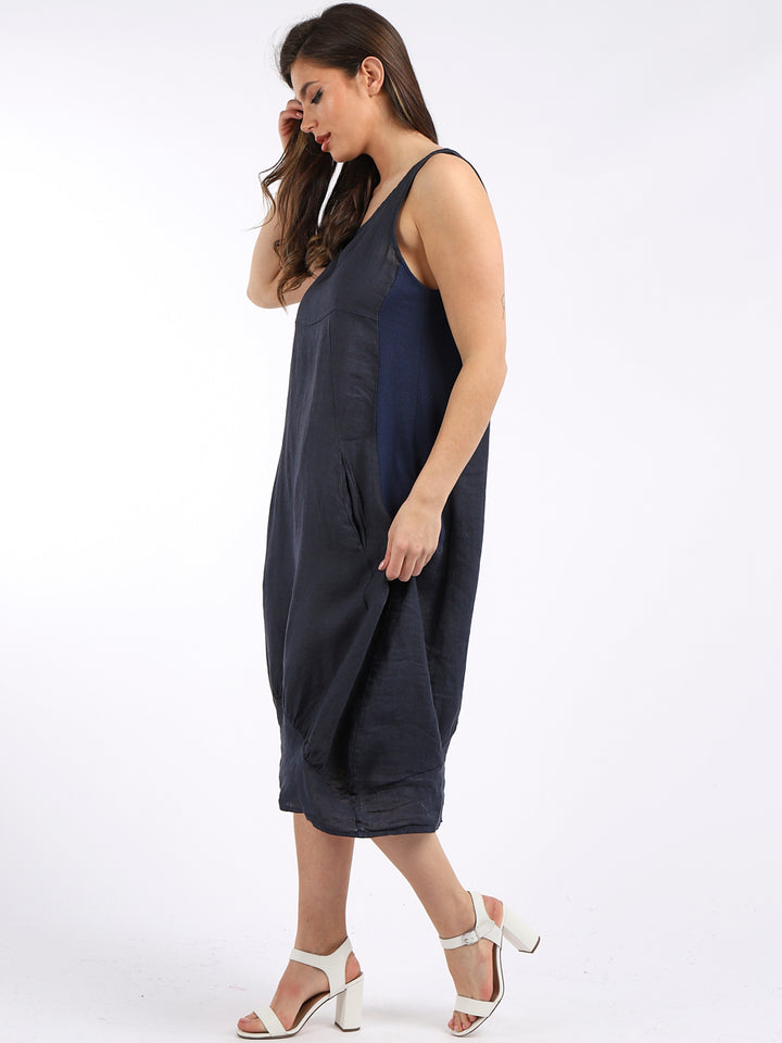 Simplicity and style have been amalgamated to craft this lagenlook dress. Deep scoop neck and sleeveless design makes it apt for the summer vibes. Tailored in single color it brings elegance and exhibits a chic look. Team it with sandals to remain comfortable and stylish.