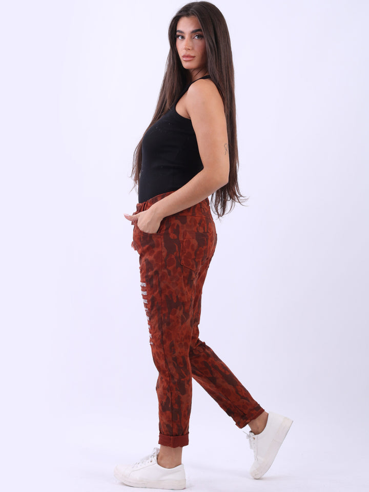 Trendy clothes need a partner to finish the look and these camouflage magic pants are ideal to mix and match with many plus size women clothing fashion choices. Made in Italy with finest and most desirable fabric blend, the pants have a touch of uniqueness with sequin, adjustable drawstring waist and rolled up ankle hugging hem. Mix and match with Redwholesale unique collection of how women in Italy dress and style.