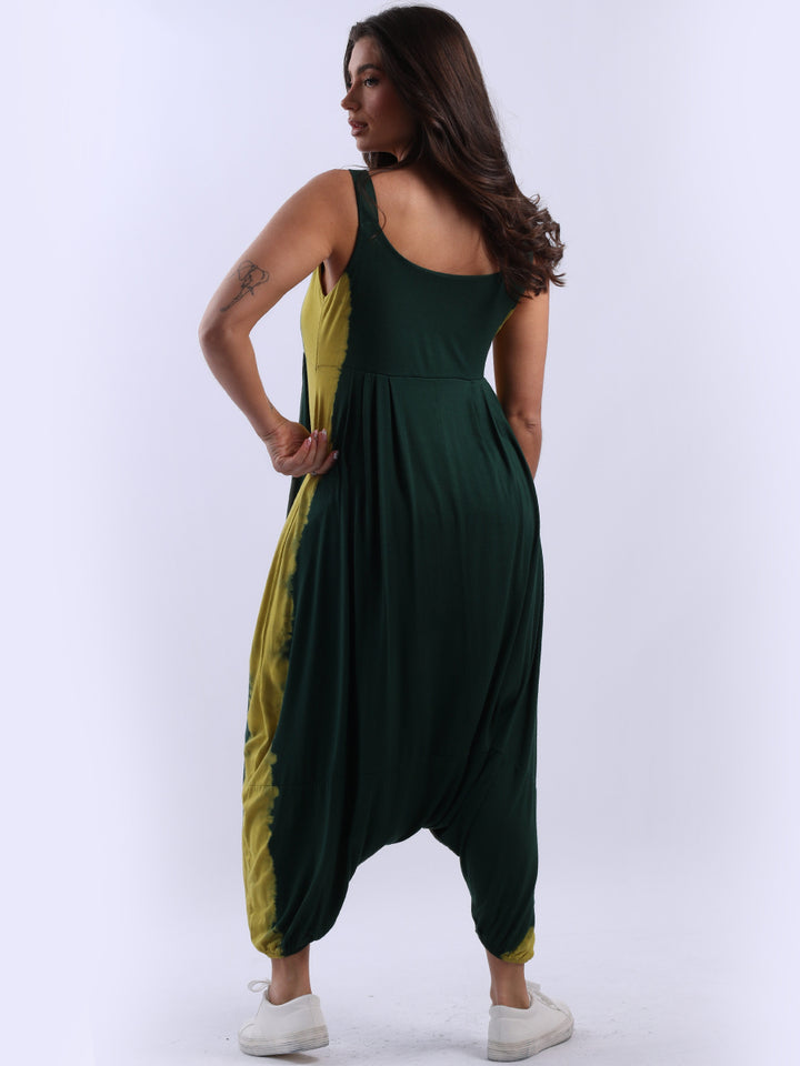 Italian Sleeveless Tie And Dye Strappy Harem Jumpsuit