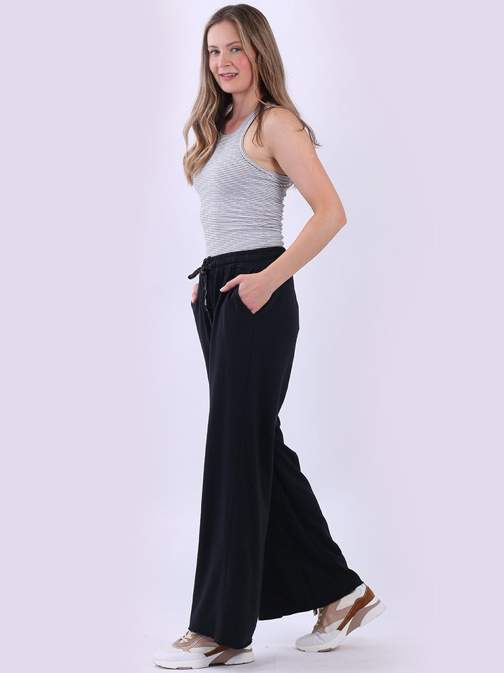 Women wearers will enjoy the comfort and elegance of our made in Italy solid straight-leg cotton trousers with refined craftsmanship. These trousers take casual dressing to the next level with a relaxed fit, drawstring elastic waistband and side pockets. Their plain hue makes them easy to pair with any top for a sleek, stylish look.