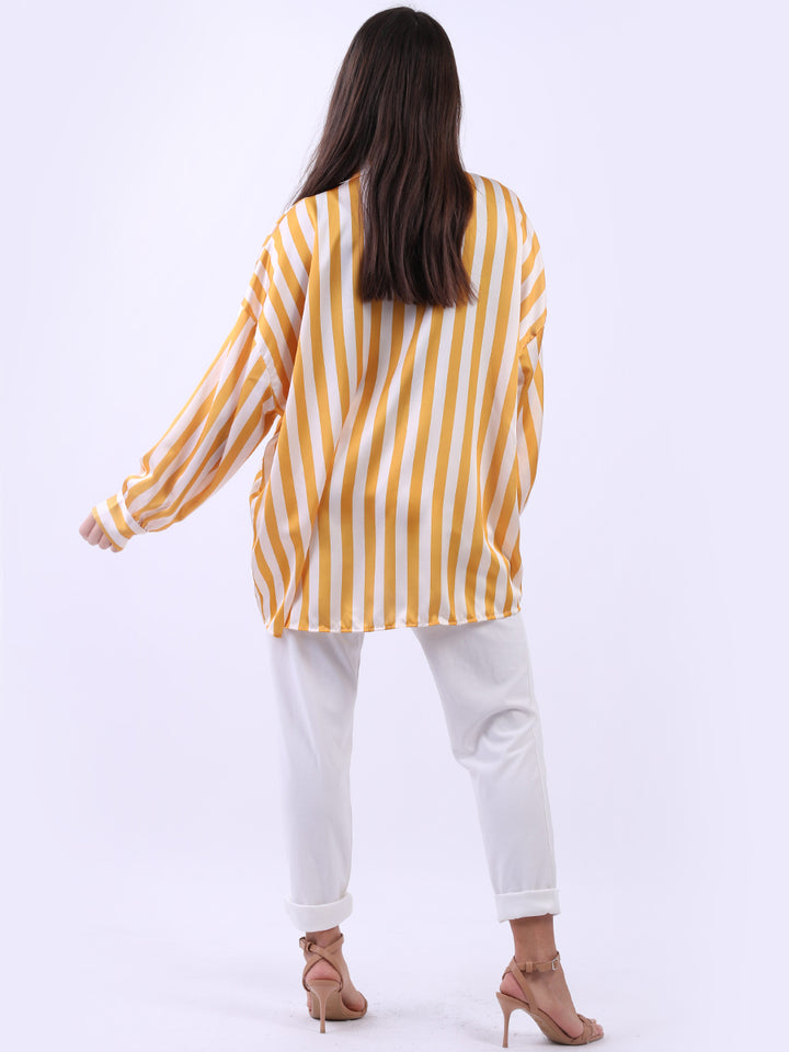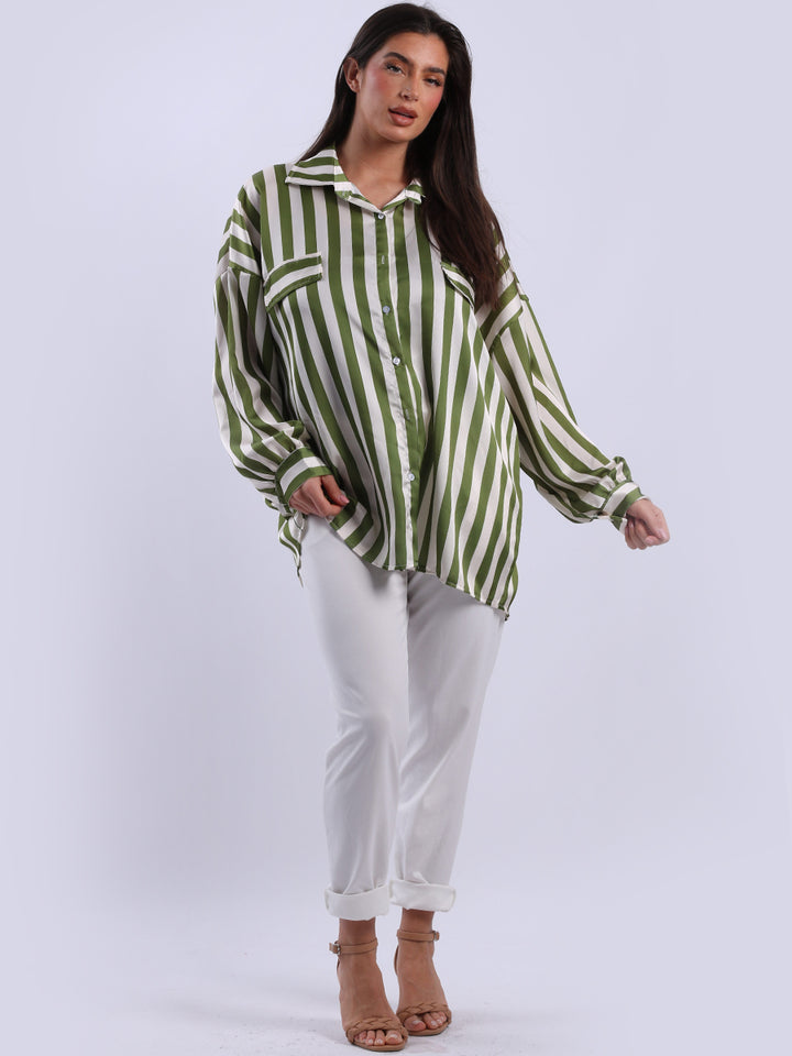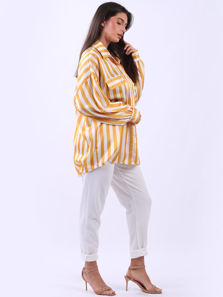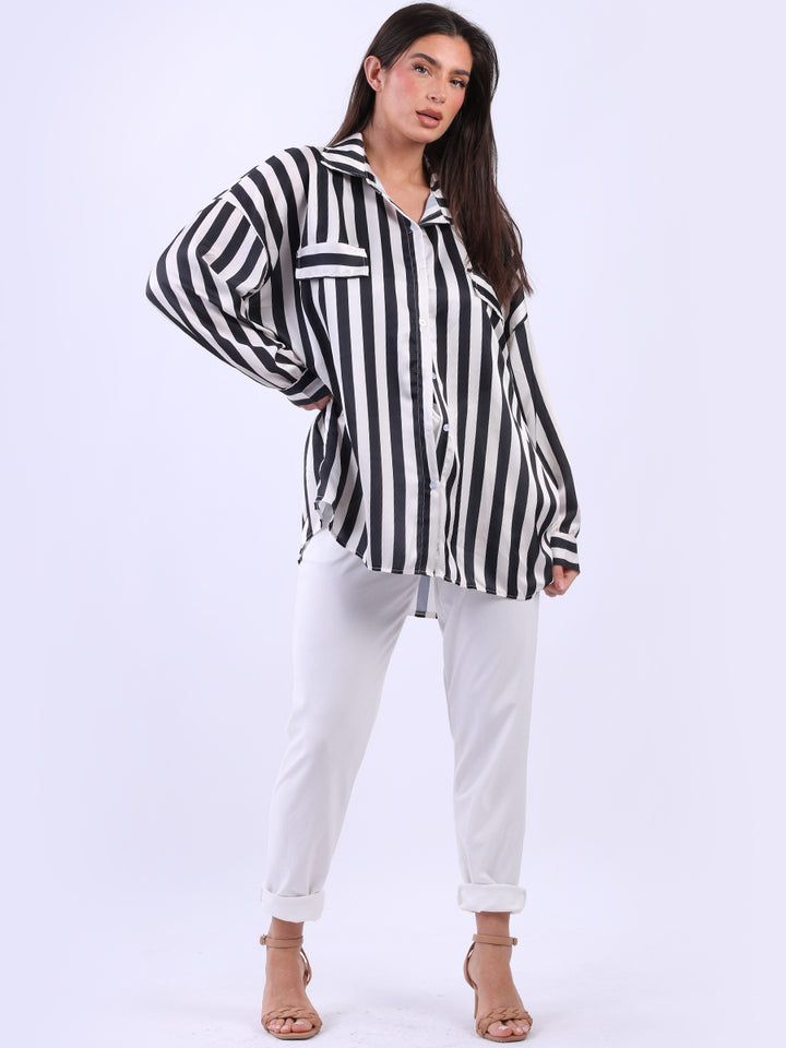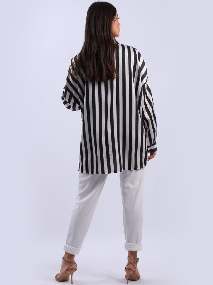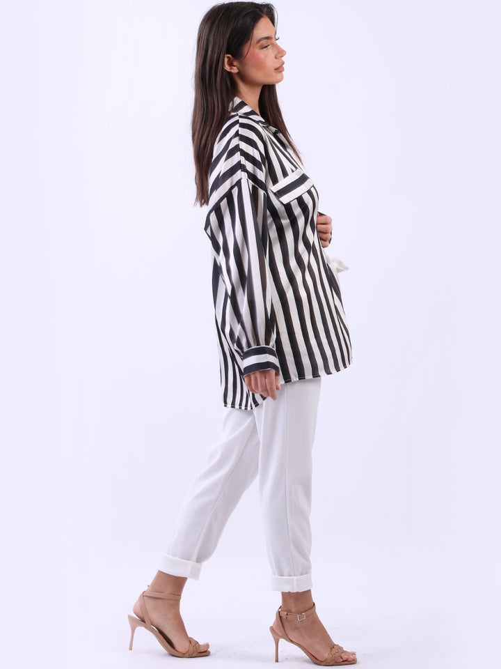 Ready to wear and fabulous looking the iconic made in Italy shirt is the wardrobe must have. It is extremely popular and sells like hot cakes due to its finest features and charismatic vintage yet refreshing stripy print. Front button enclosure that women wearers adore for it’s easy to wear style, long sleeves and formal looking collar sleeves. Dress it with denim pants and black jacket for ideal finish.