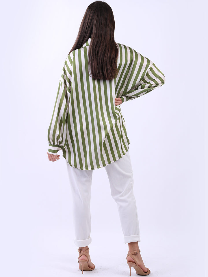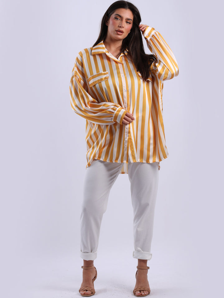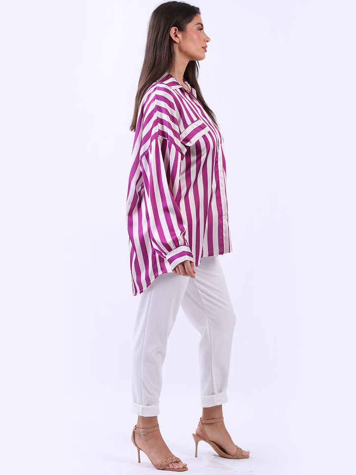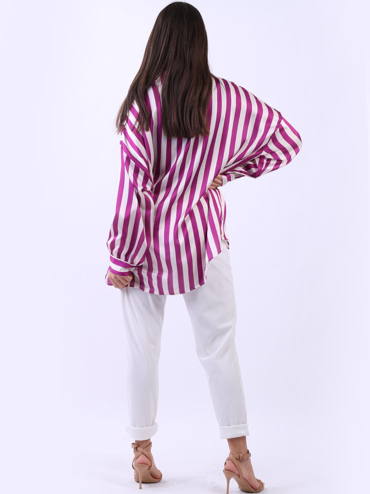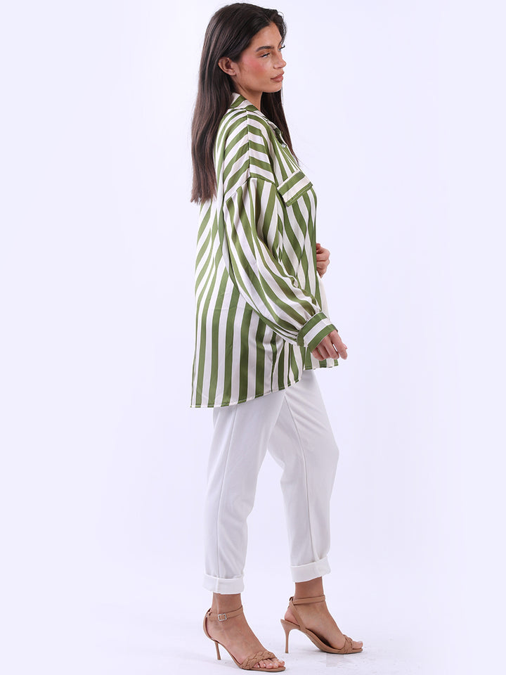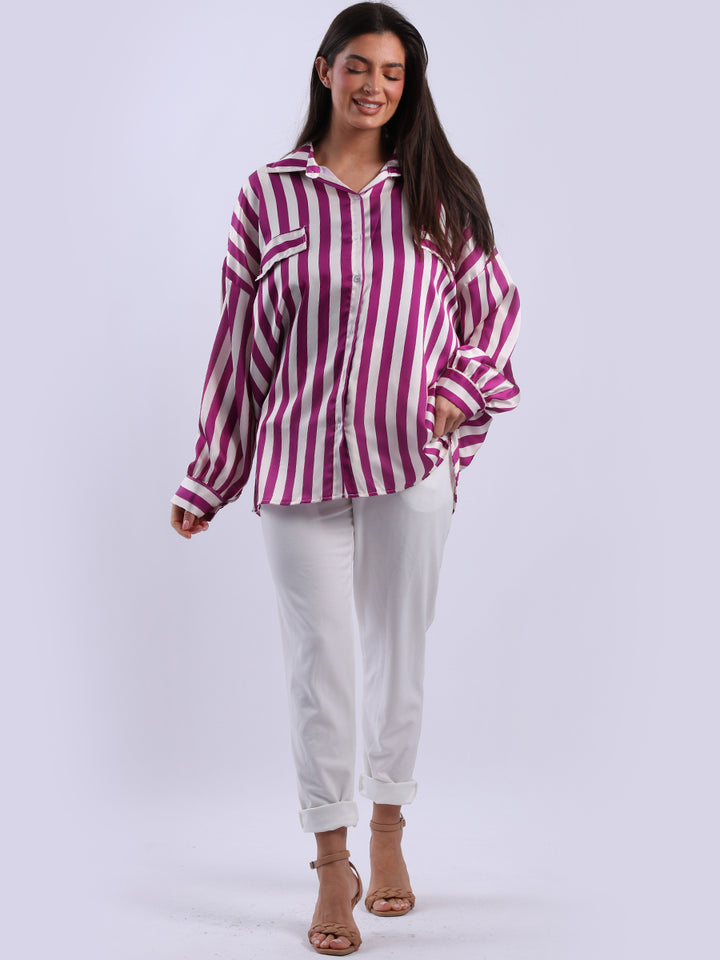Ready to wear and fabulous looking the iconic made in Italy shirt is the wardrobe must have. It is extremely popular and sells like hot cakes due to its finest features and charismatic vintage yet refreshing stripy print. Front button enclosure that women wearers adore for it’s easy to wear style, long sleeves and formal looking collar sleeves. Dress it with denim pants and black jacket for ideal finish.