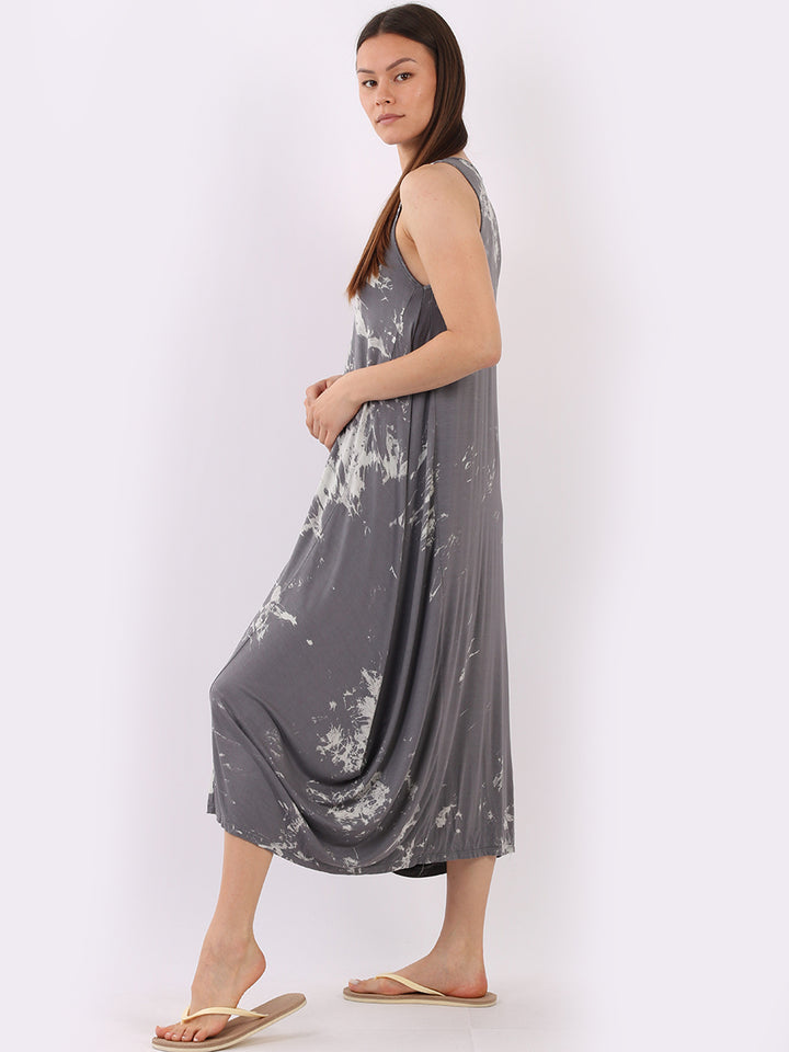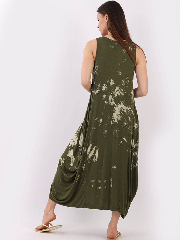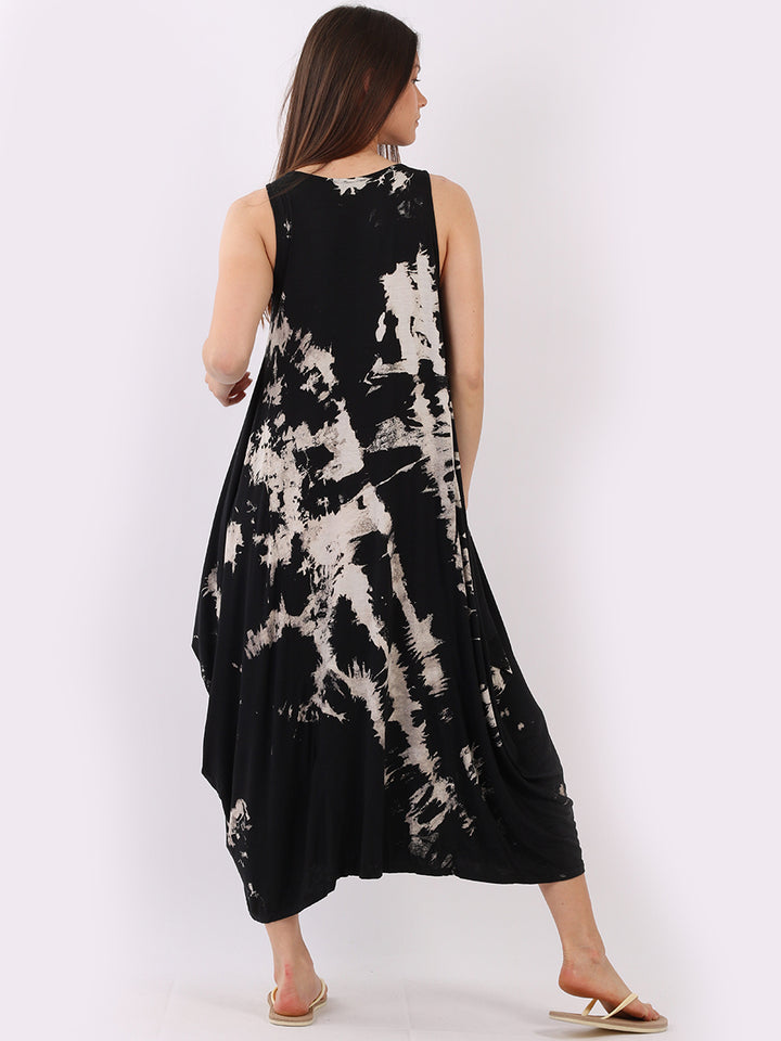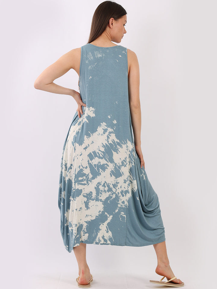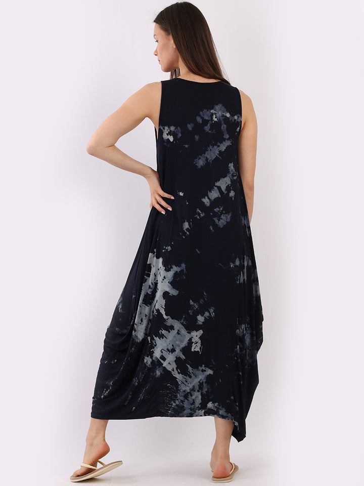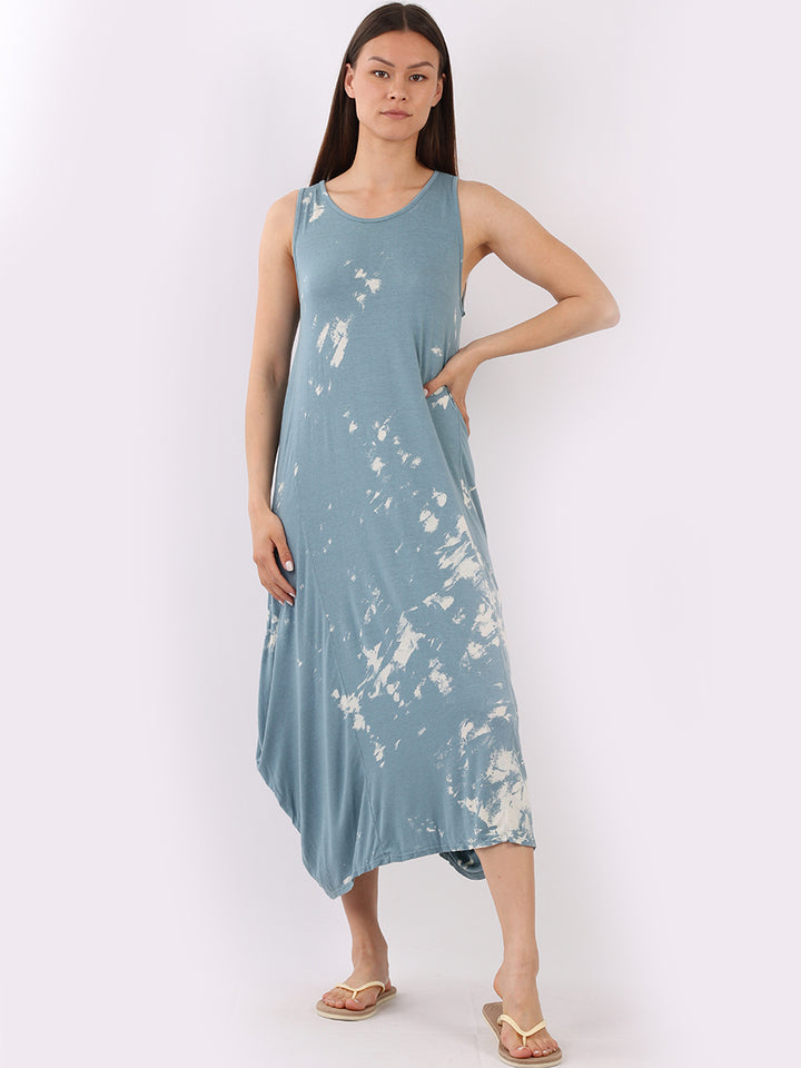 Flow freely and let adventure go on forever in this tie and dye sleeveless lagenlook dress by Fashion boutique London that is unique as the wearer. The absolute superhot modish hem with high ends and deep middle is perfect to flaunt those strappy sandals and presentable feet, fine round neck to showcase beads of fashion.
