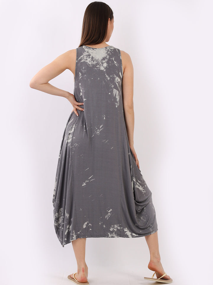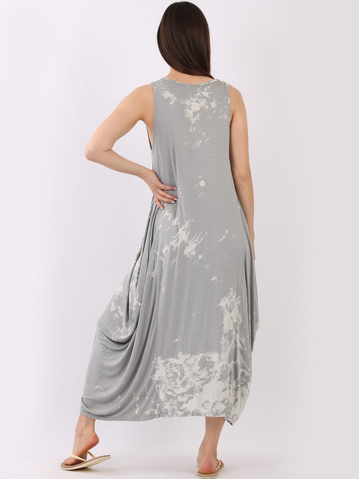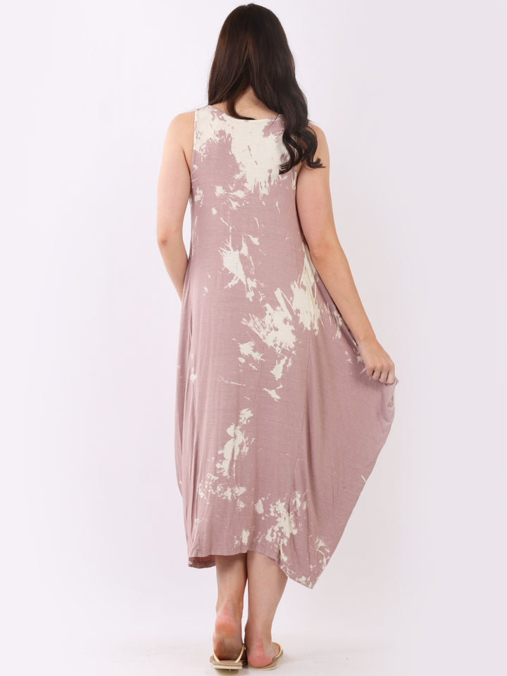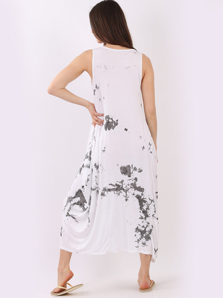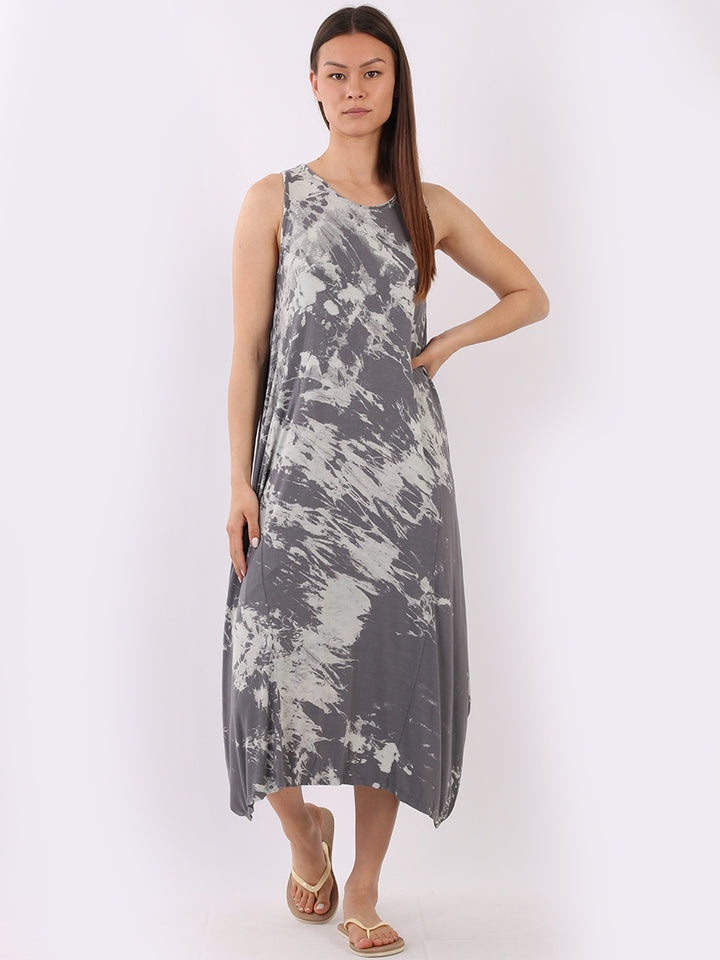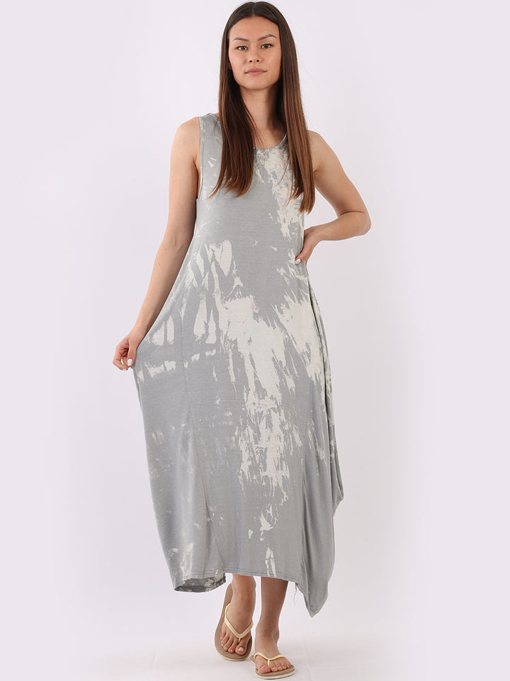 Flow freely and let adventure go on forever in this tie and dye sleeveless lagenlook dress by Fashion boutique London that is unique as the wearer. The absolute superhot modish hem with high ends and deep middle is perfect to flaunt those strappy sandals and presentable feet, fine round neck to showcase beads of fashion.