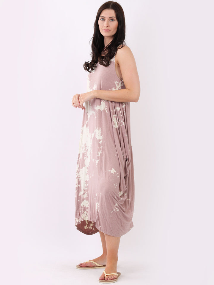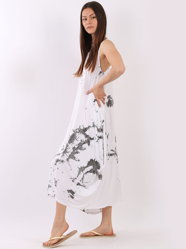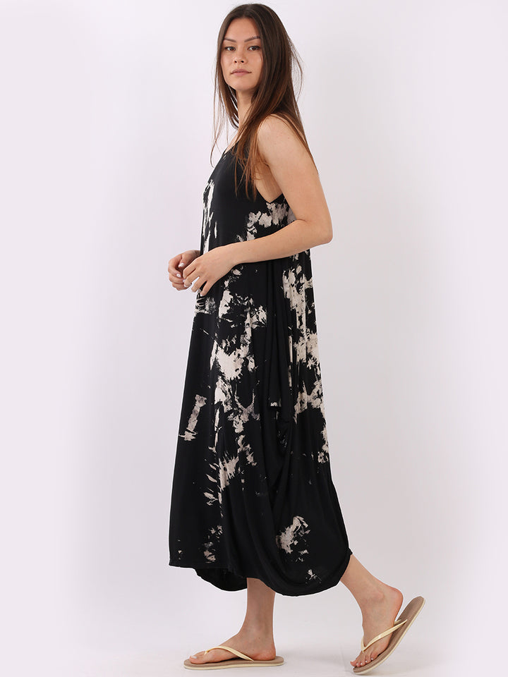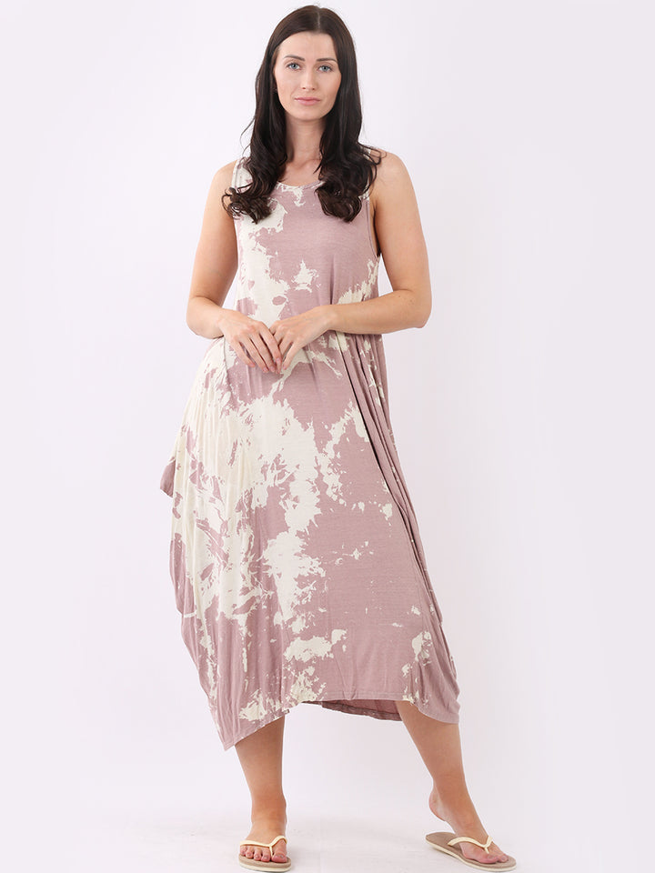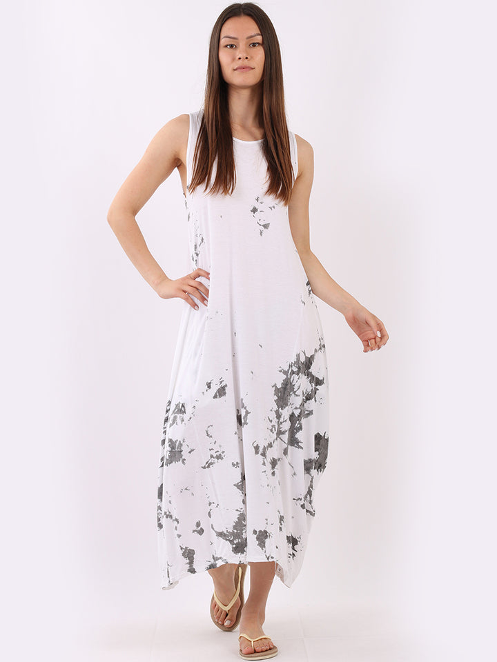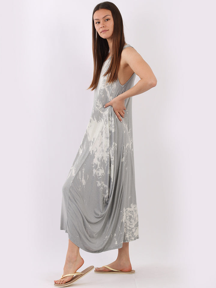 Flow freely and let adventure go on forever in this tie and dye sleeveless lagenlook dress by Fashion boutique London that is unique as the wearer. The absolute superhot modish hem with high ends and deep middle is perfect to flaunt those strappy sandals and presentable feet, fine round neck to showcase beads of fashion.