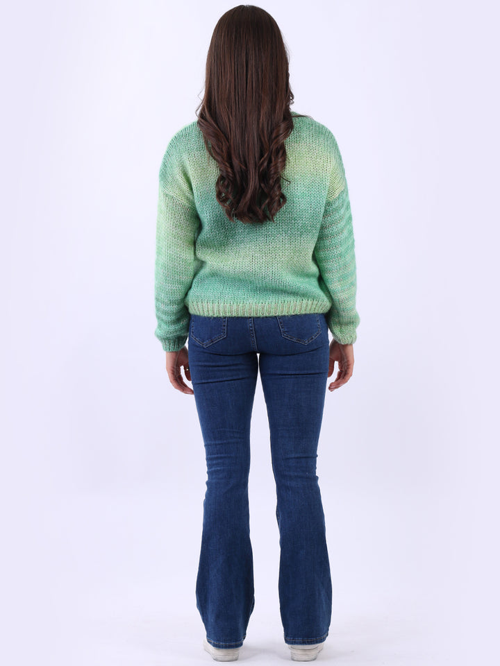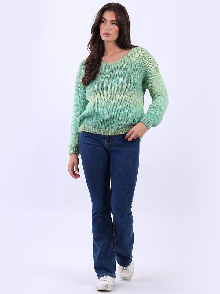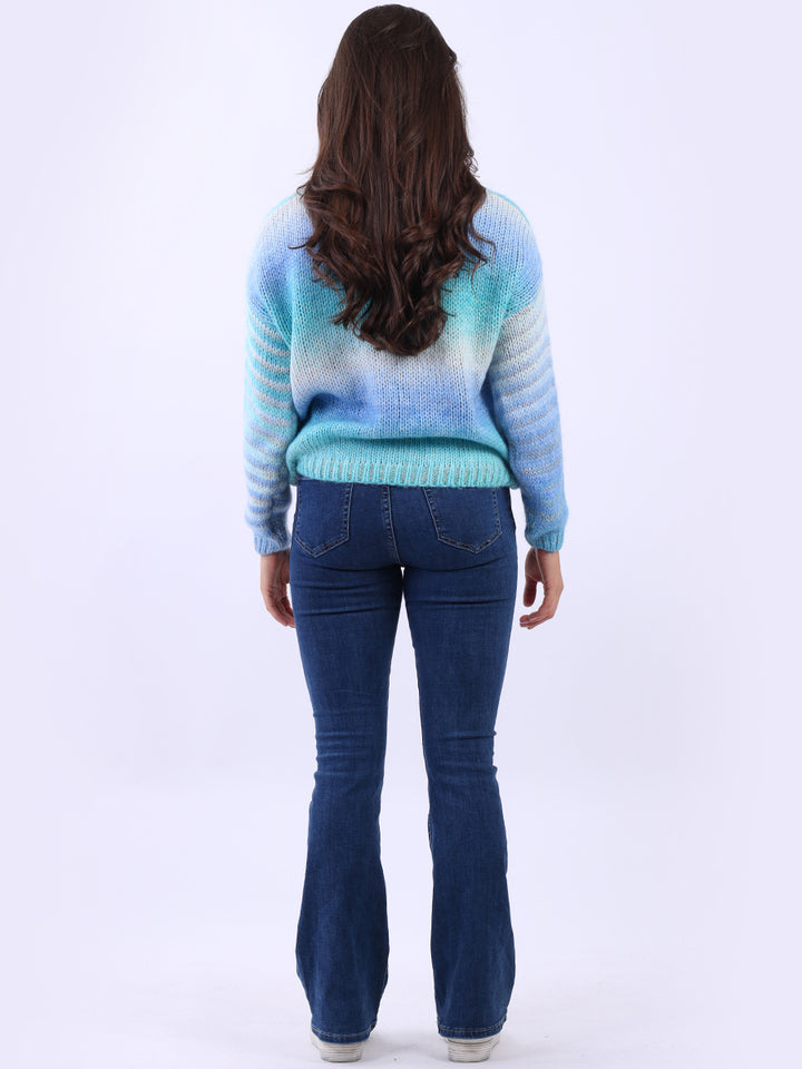 This knitted rainbow crop pullover from Red Wholesale Manchester, a masterpiece of Italian Moda, adds a cozy element to ladies' winter wardrobe. With a loose fit, baggy sleeves, scoop neck, and striking stripy rainbow print, it’s ideal for making a fashion statement alongside wide-leg trousers.