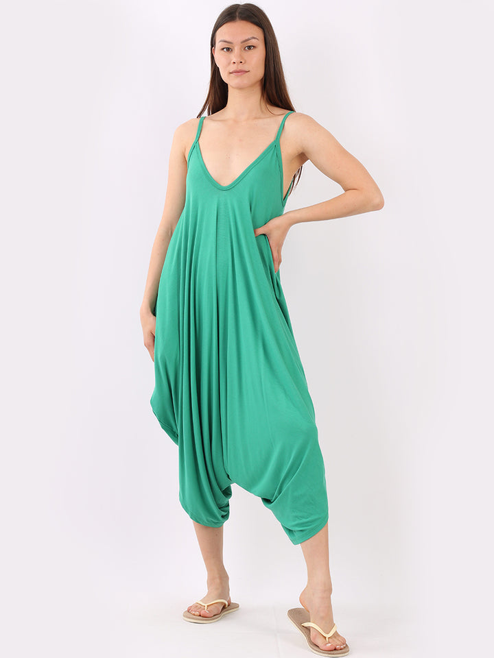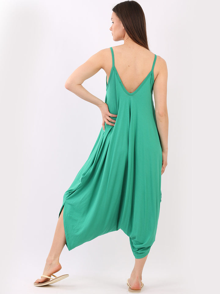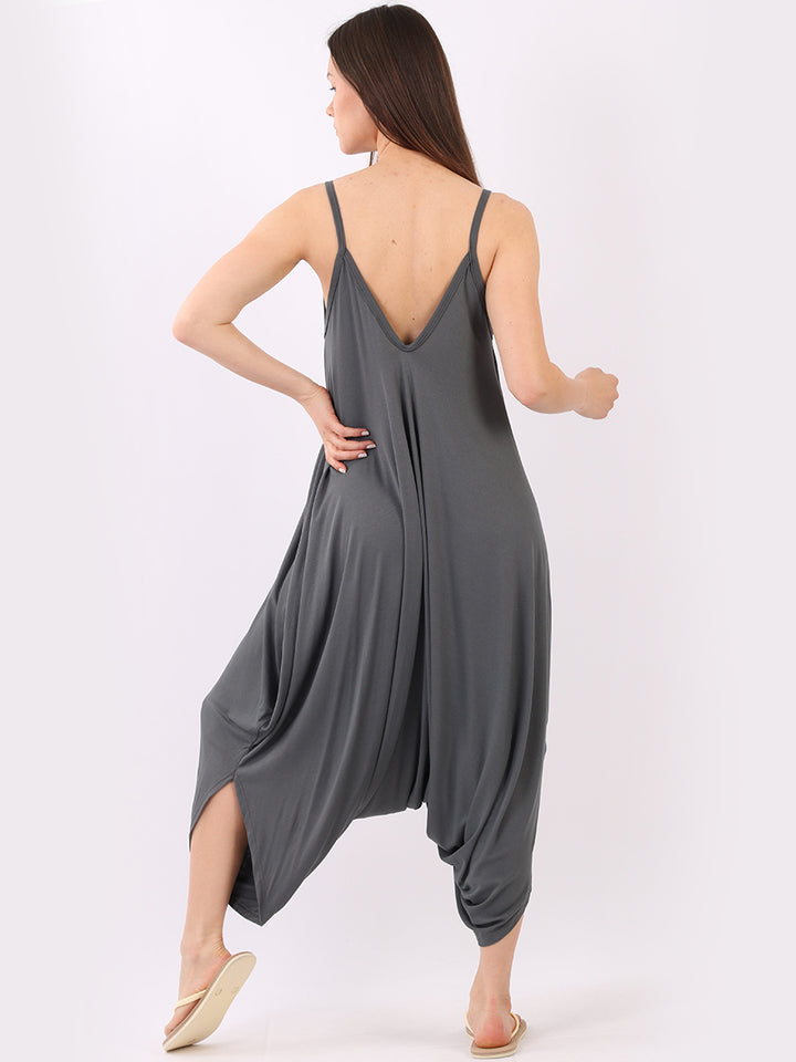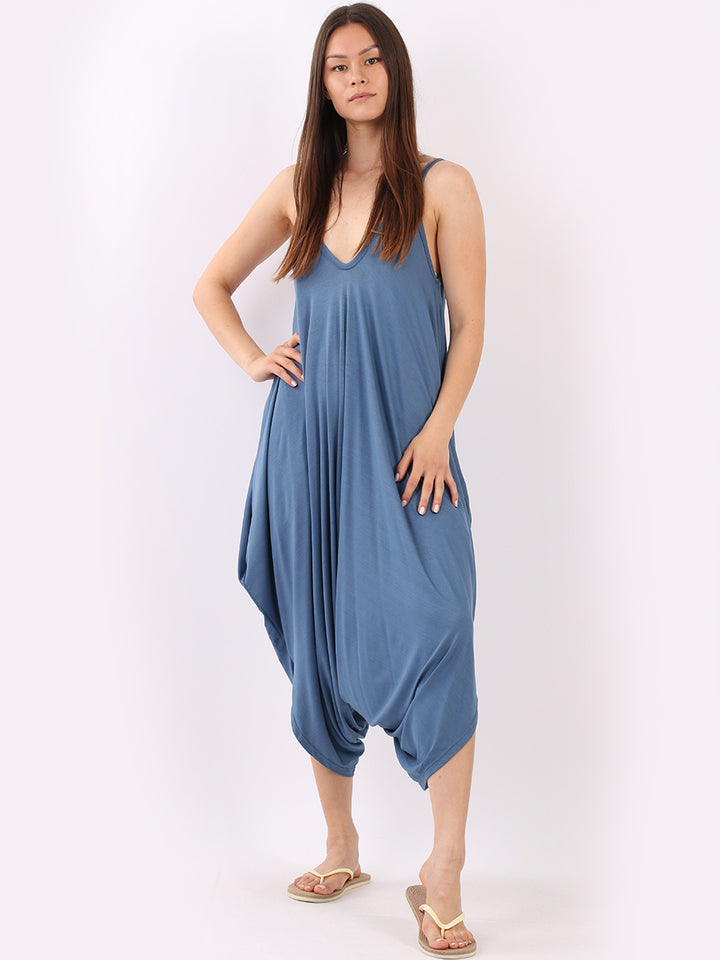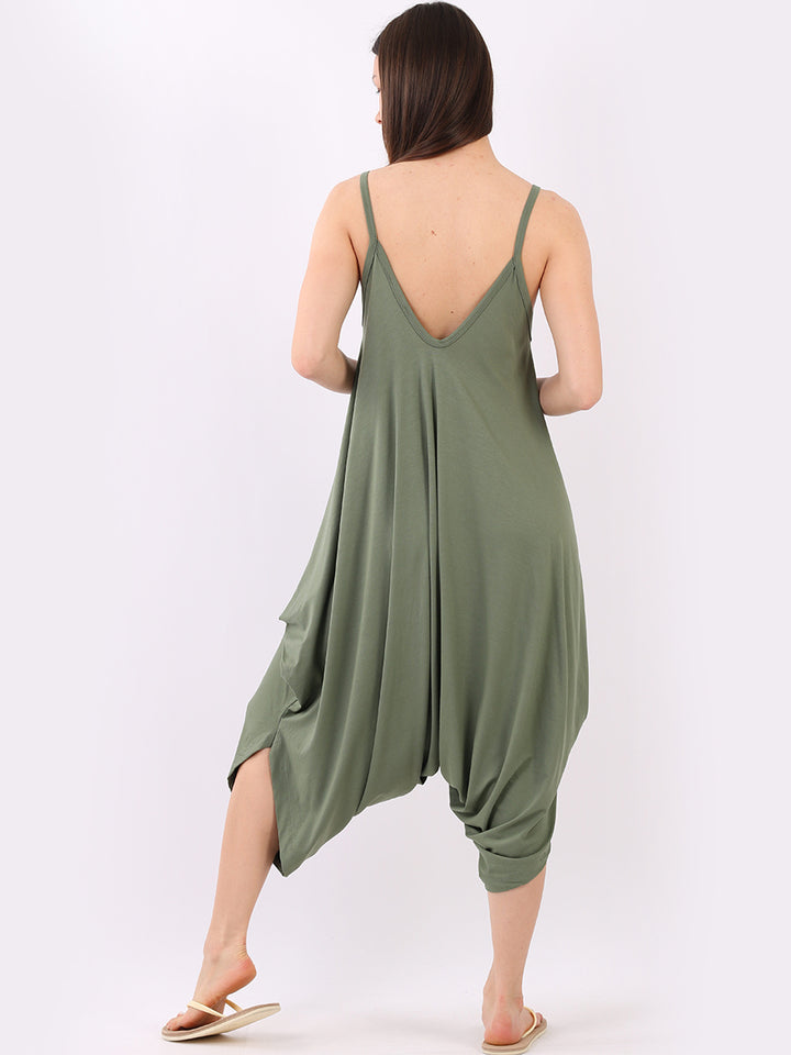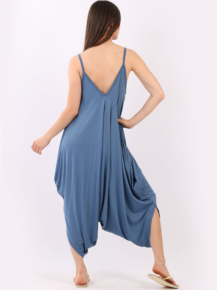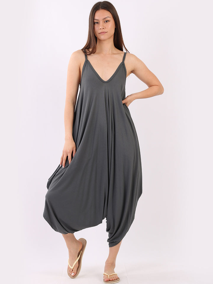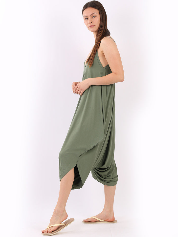 Italian V- Neck Plain Lagenlook Jumpsuit