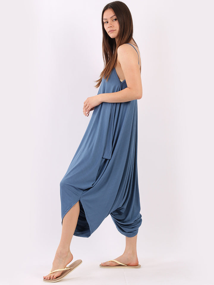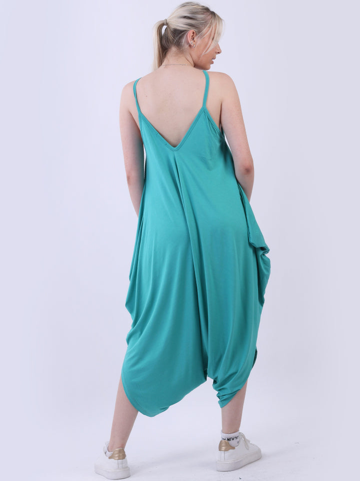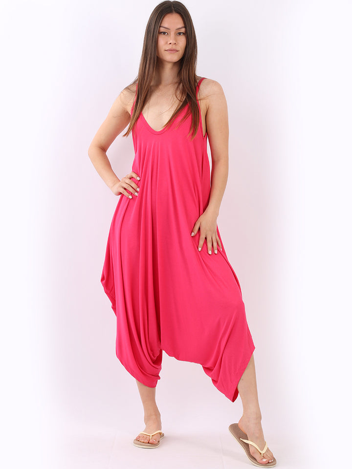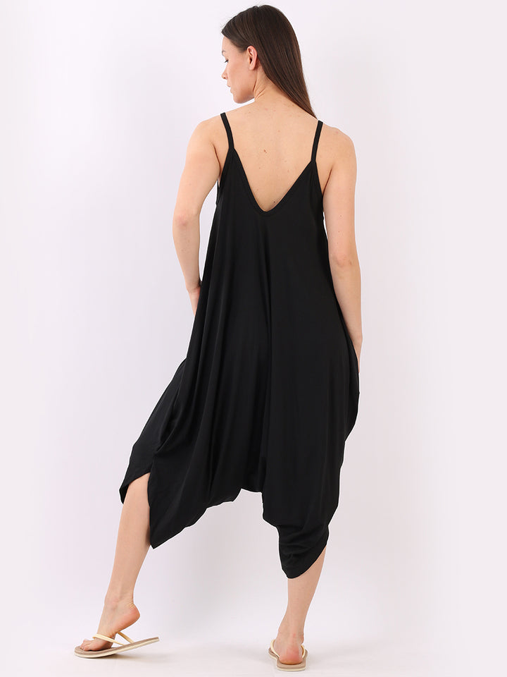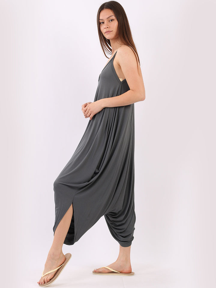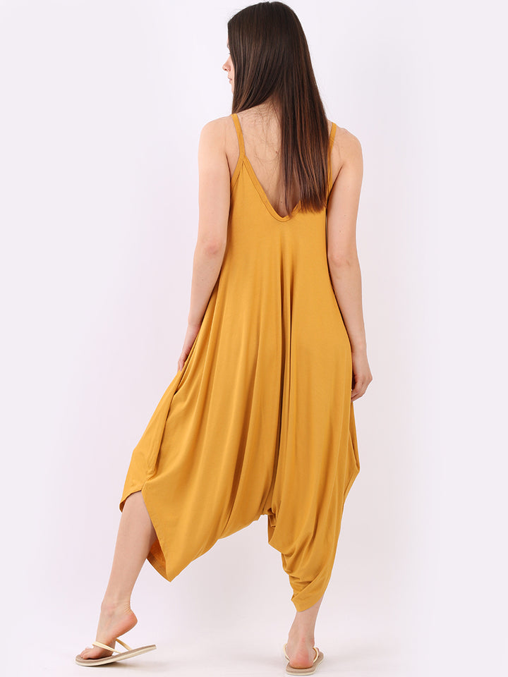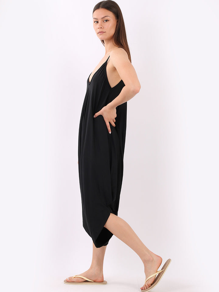 Italian V- Neck Plain Lagenlook Jumpsuit