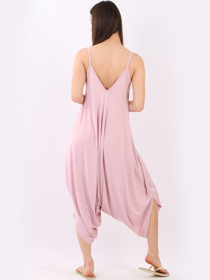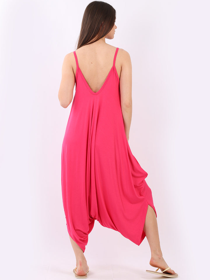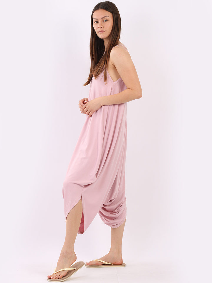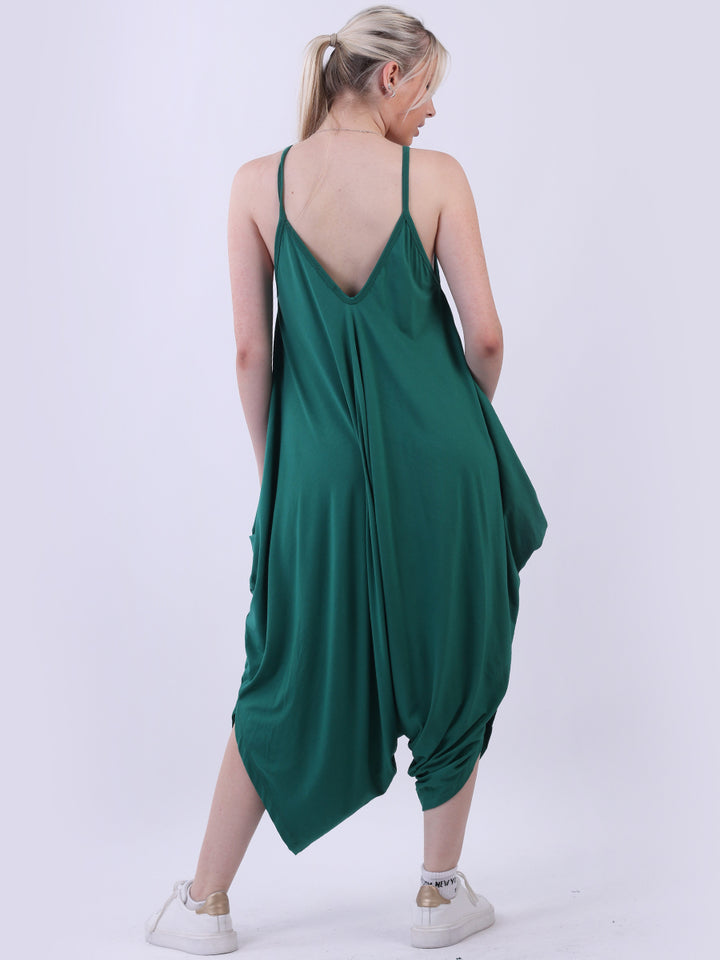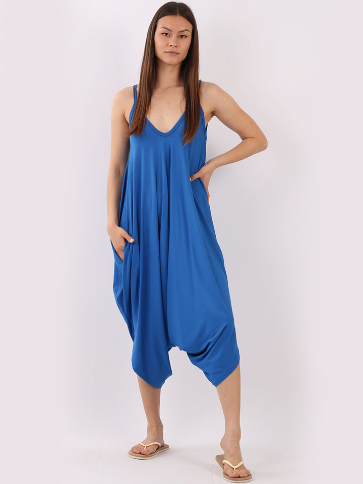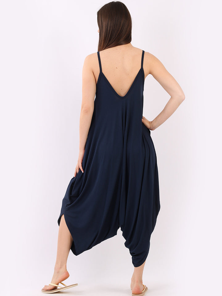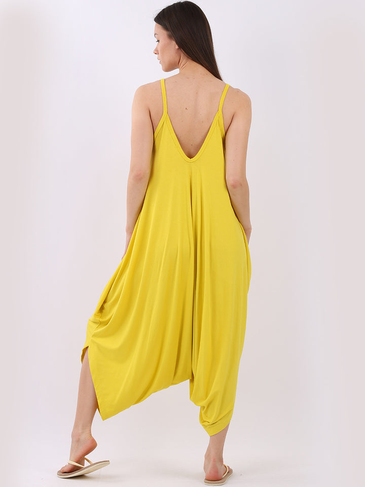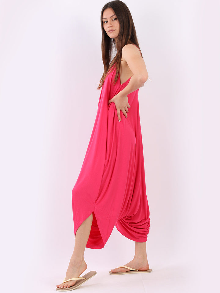 Italian V- Neck Plain Lagenlook Jumpsuit