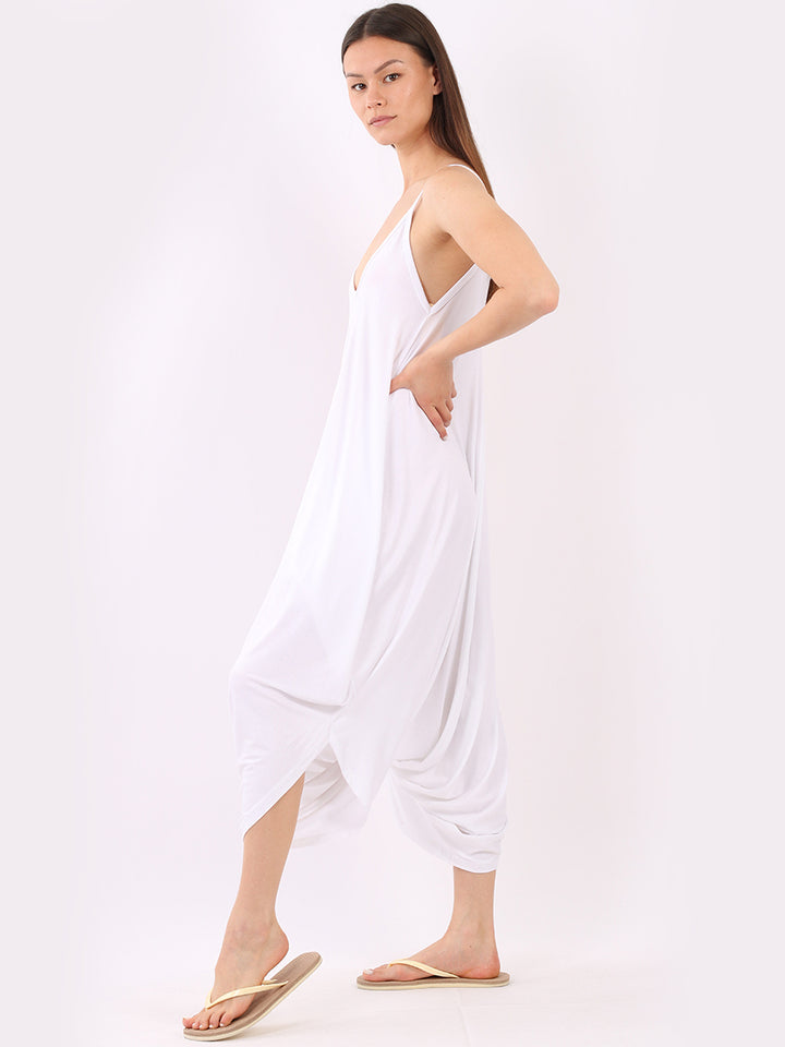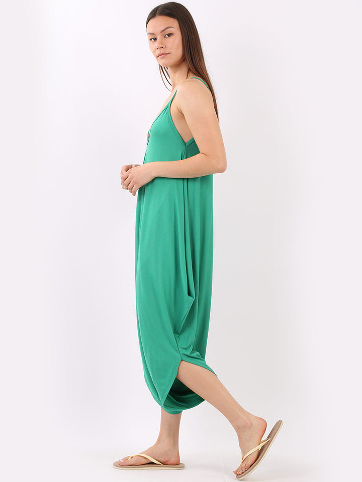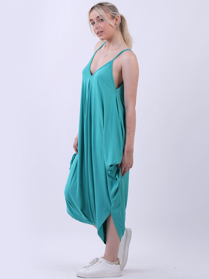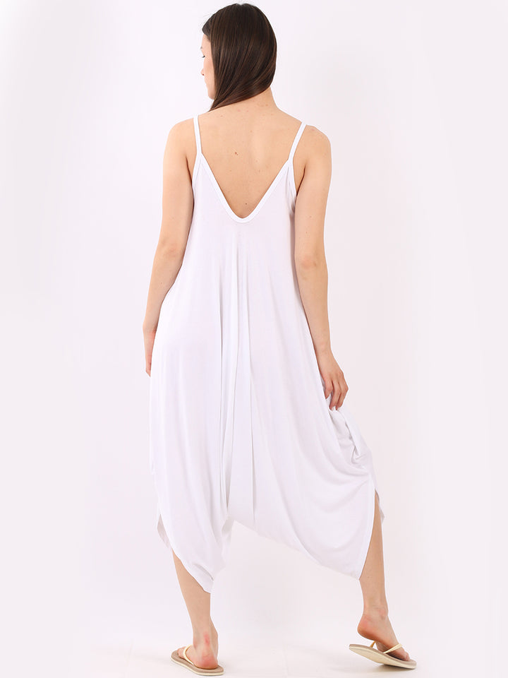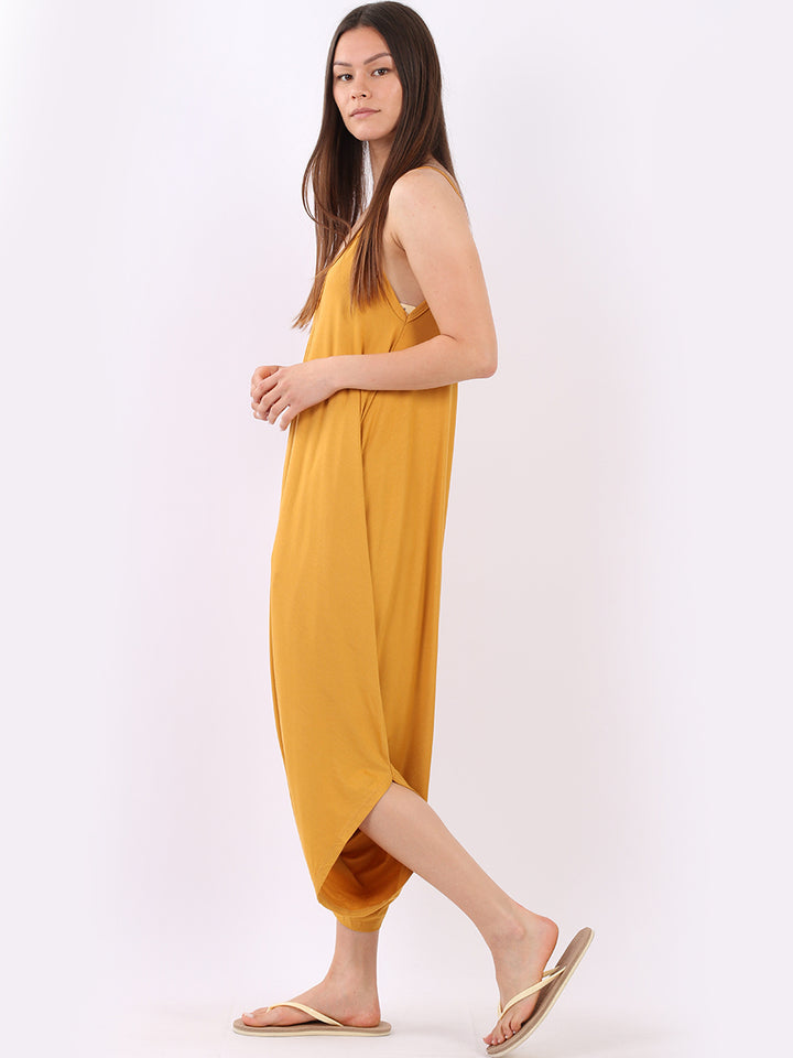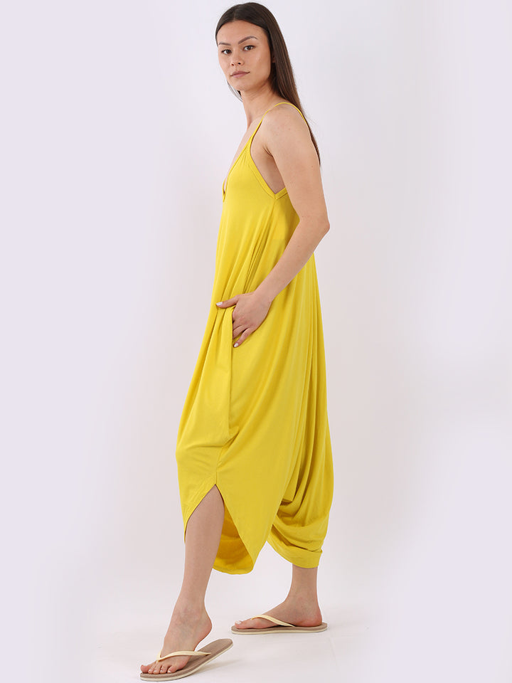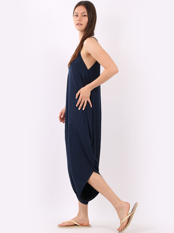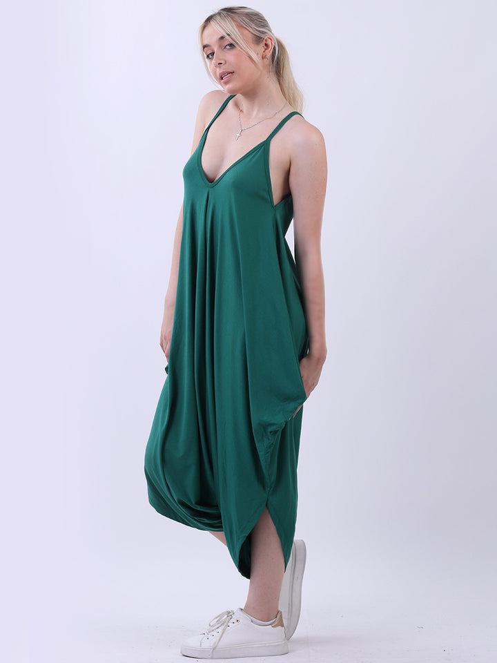 Italian V- Neck Plain Lagenlook Jumpsuit