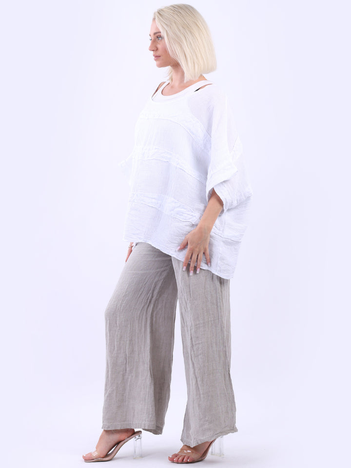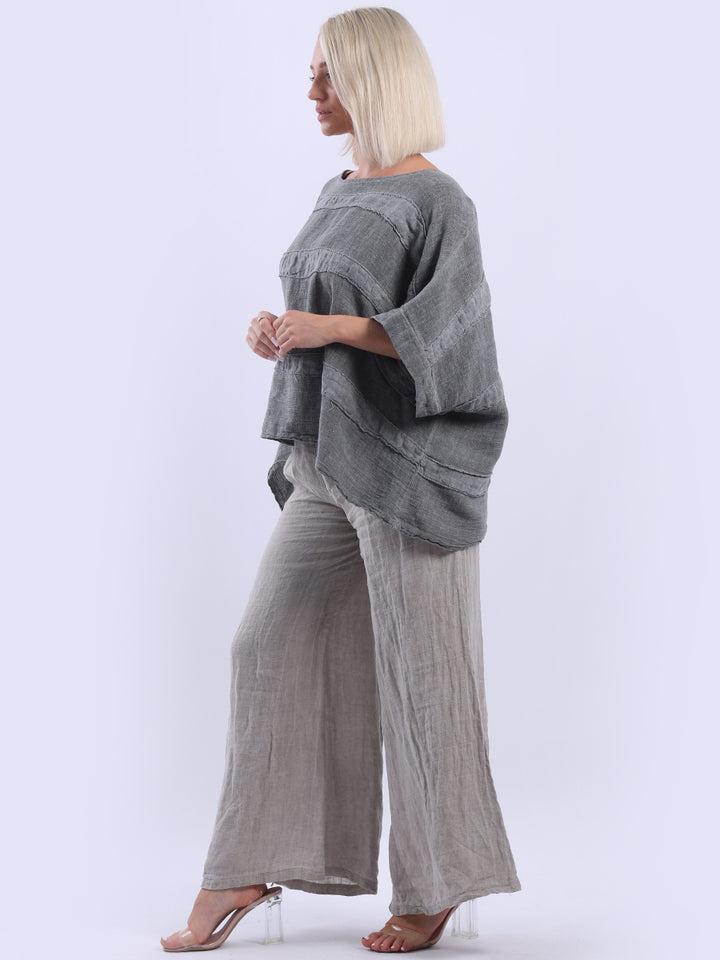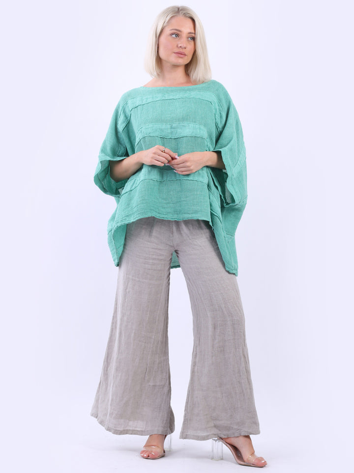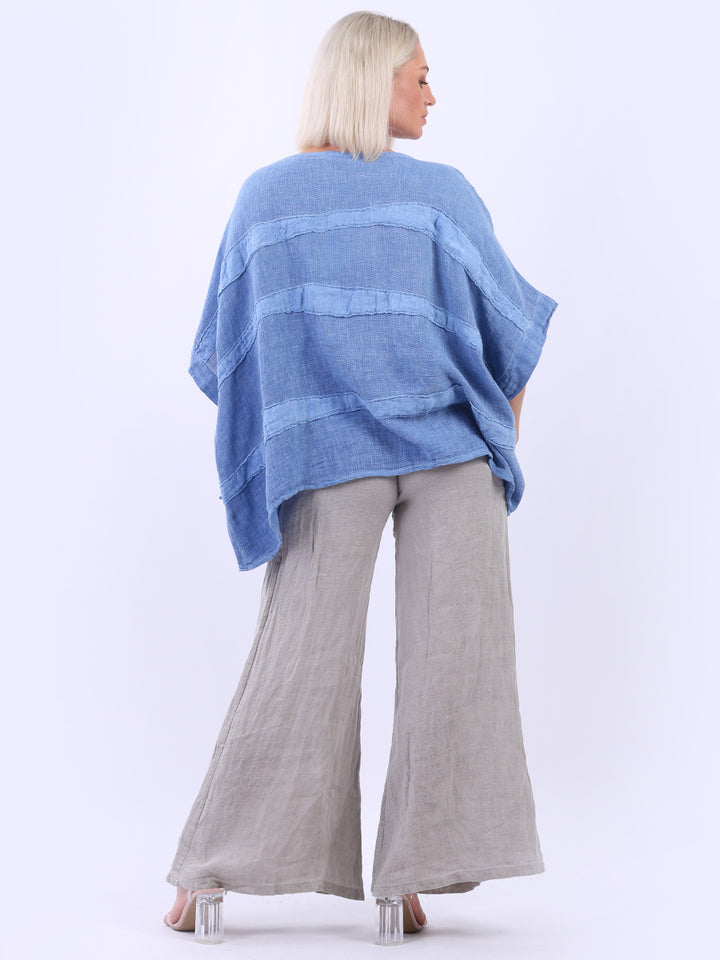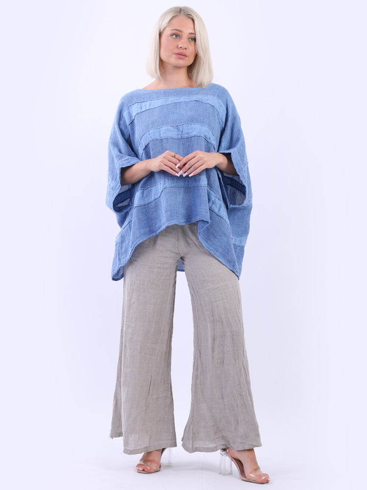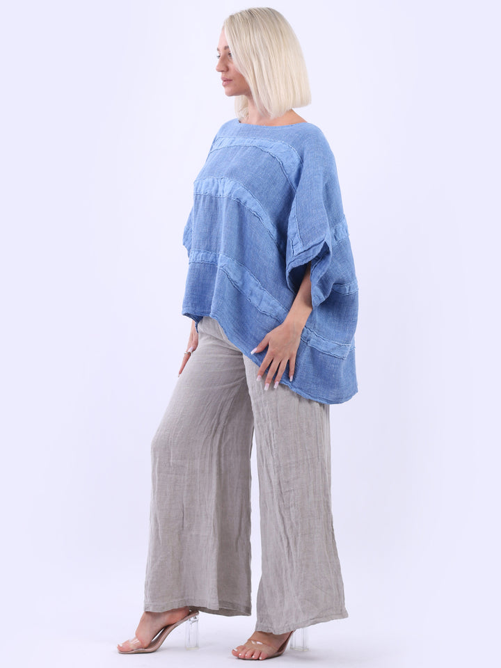 Desire for the past and readiness for futuristic charm this is the extra sassy and smart top for women wearers. Made in Italy with most demanded linen-cotton combo the top has vintage wash patches at the front to give wearers characteristic body definition, luxurious hem and baggy plus size fit al makes it ideal for every body type. Dress it with skirt and heels.