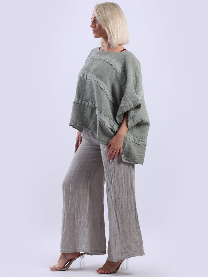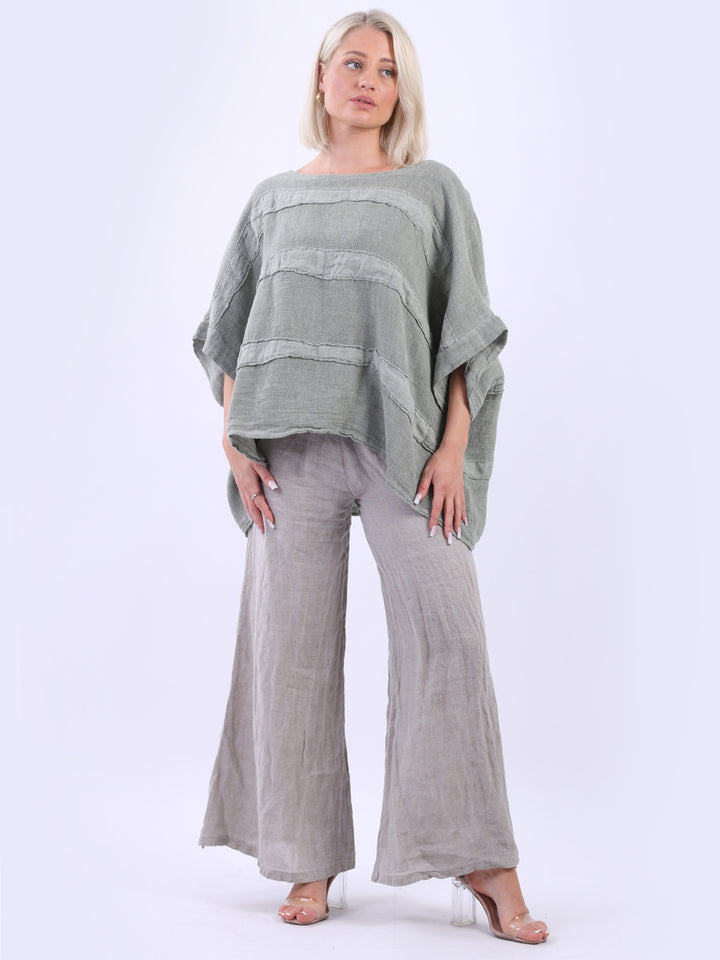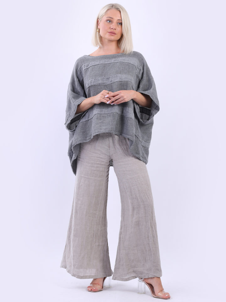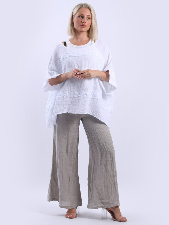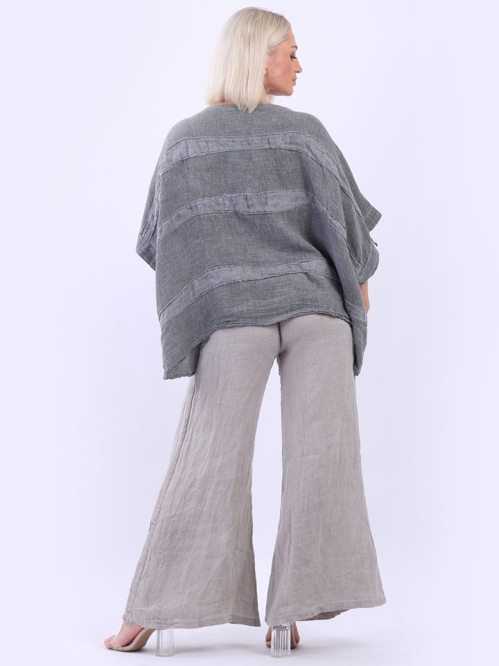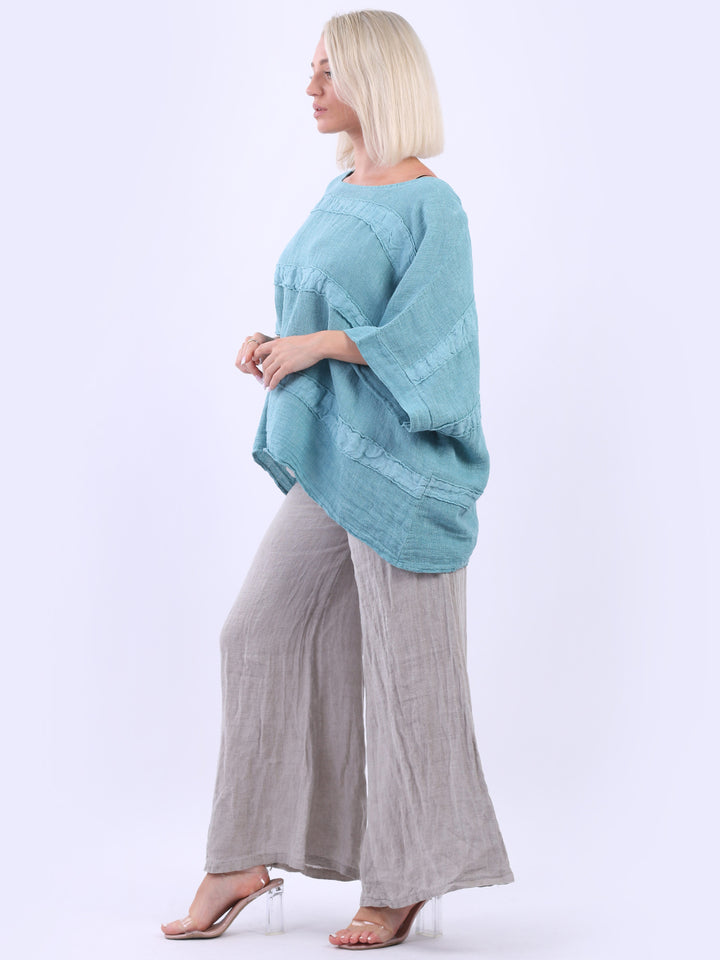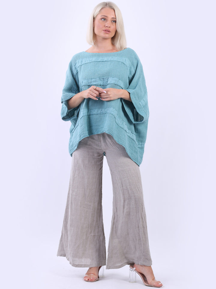 Desire for the past and readiness for futuristic charm this is the extra sassy and smart top for women wearers. Made in Italy with most demanded linen-cotton combo the top has vintage wash patches at the front to give wearers characteristic body definition, luxurious hem and baggy plus size fit al makes it ideal for every body type. Dress it with skirt and heels.
