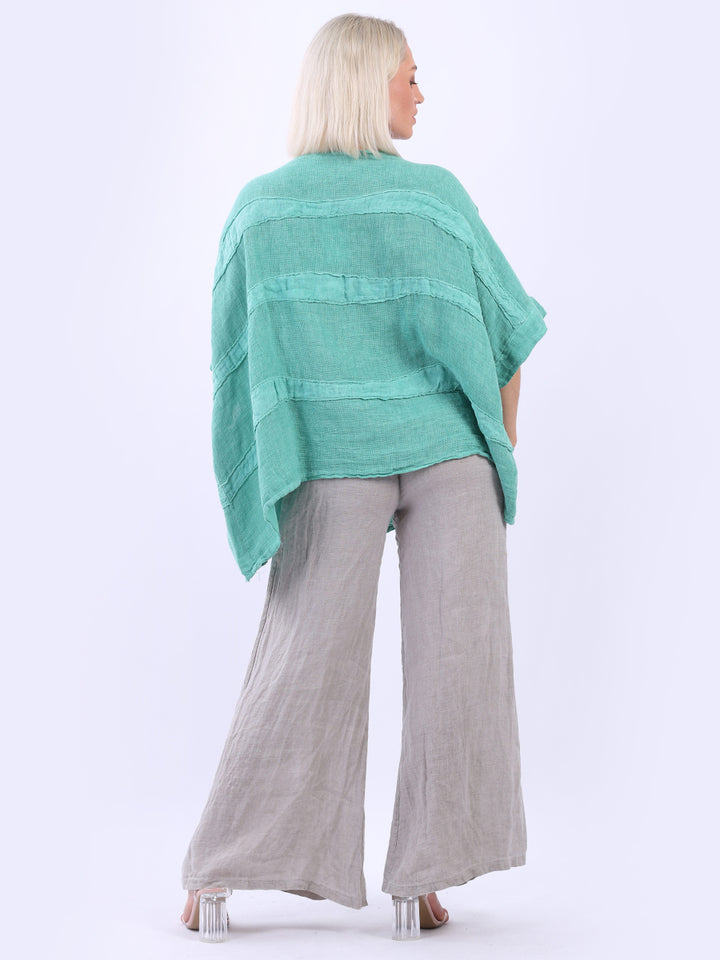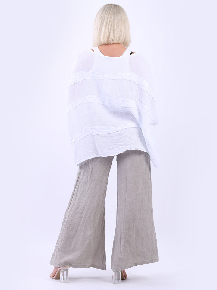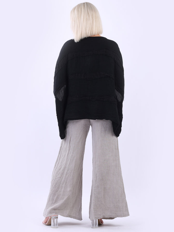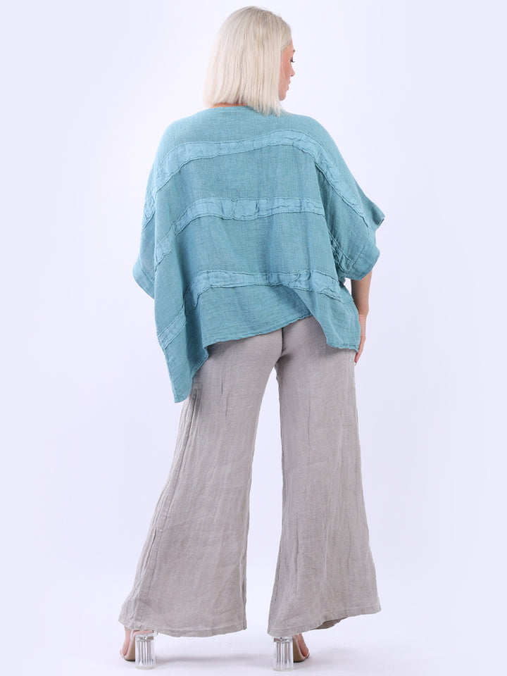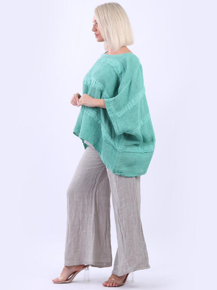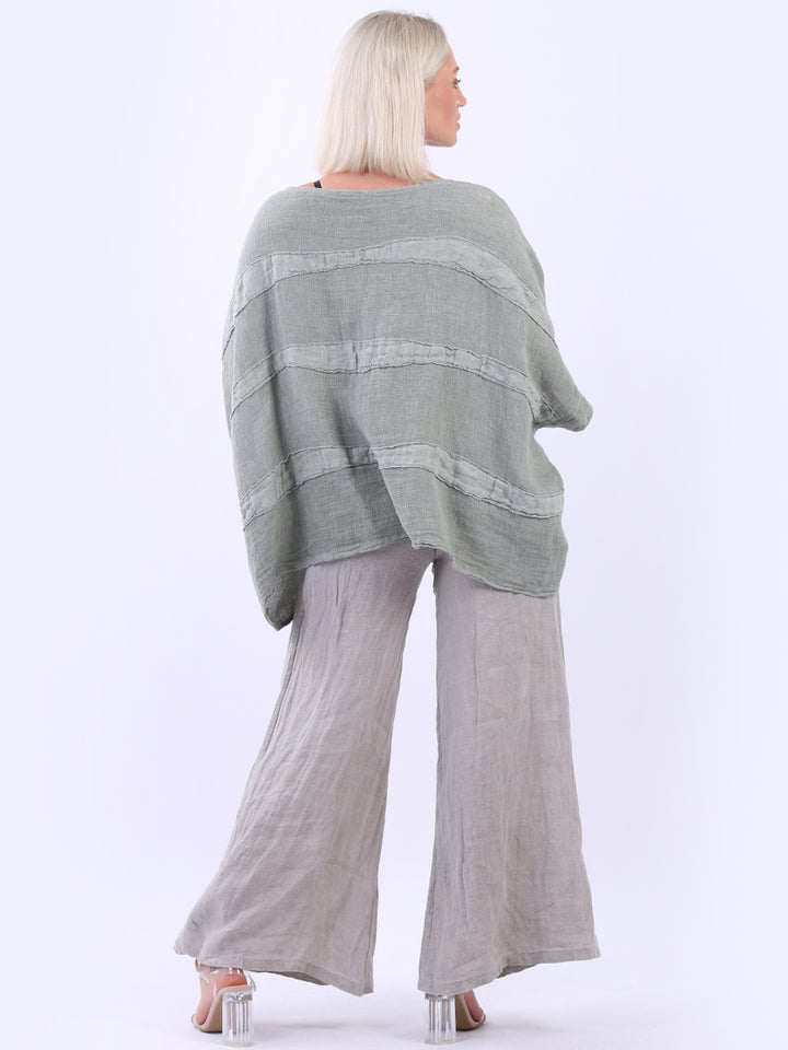 Desire for the past and readiness for futuristic charm this is the extra sassy and smart top for women wearers. Made in Italy with most demanded linen-cotton combo the top has vintage wash patches at the front to give wearers characteristic body definition, luxurious hem and baggy plus size fit al makes it ideal for every body type. Dress it with skirt and heels.