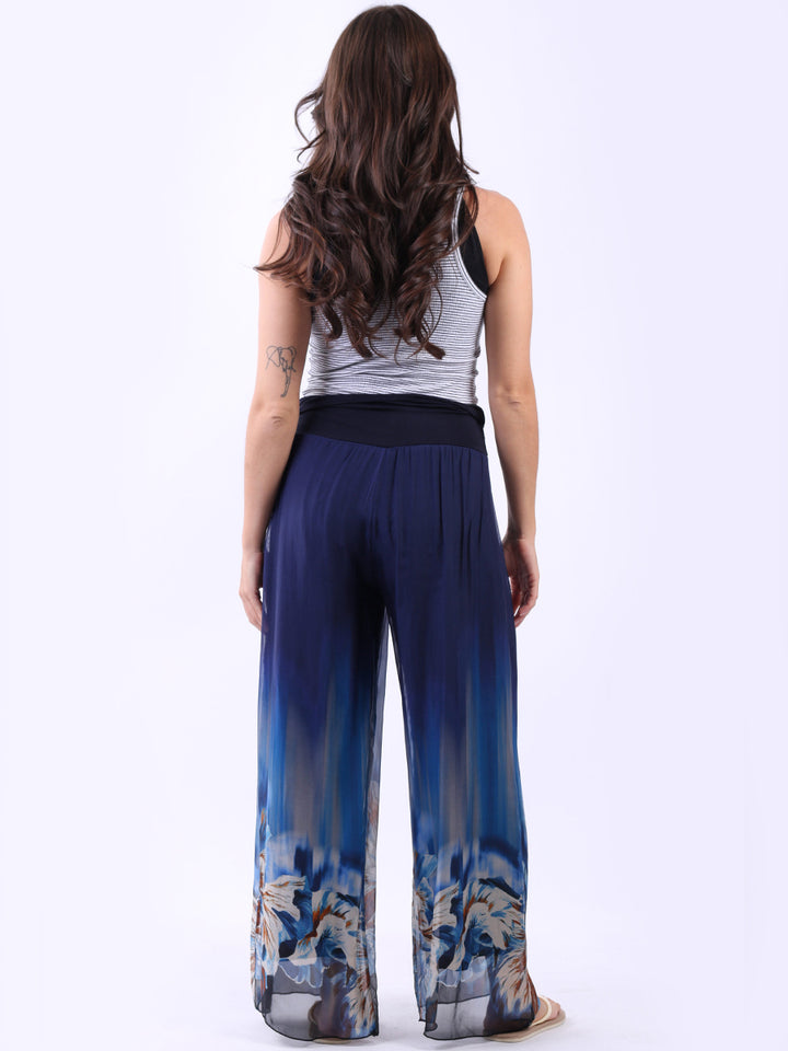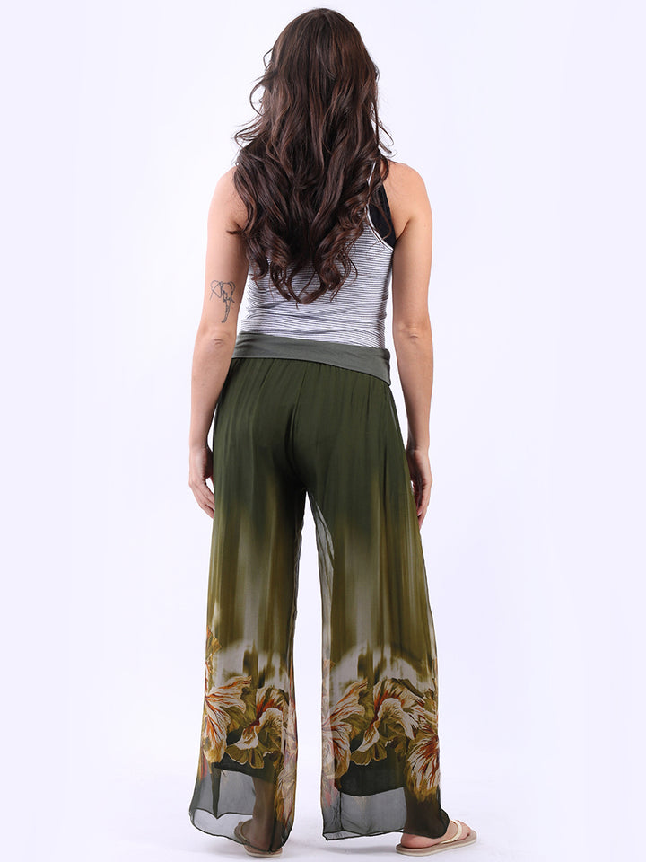 2 Layered Wide Leg Floral Silk Trouser