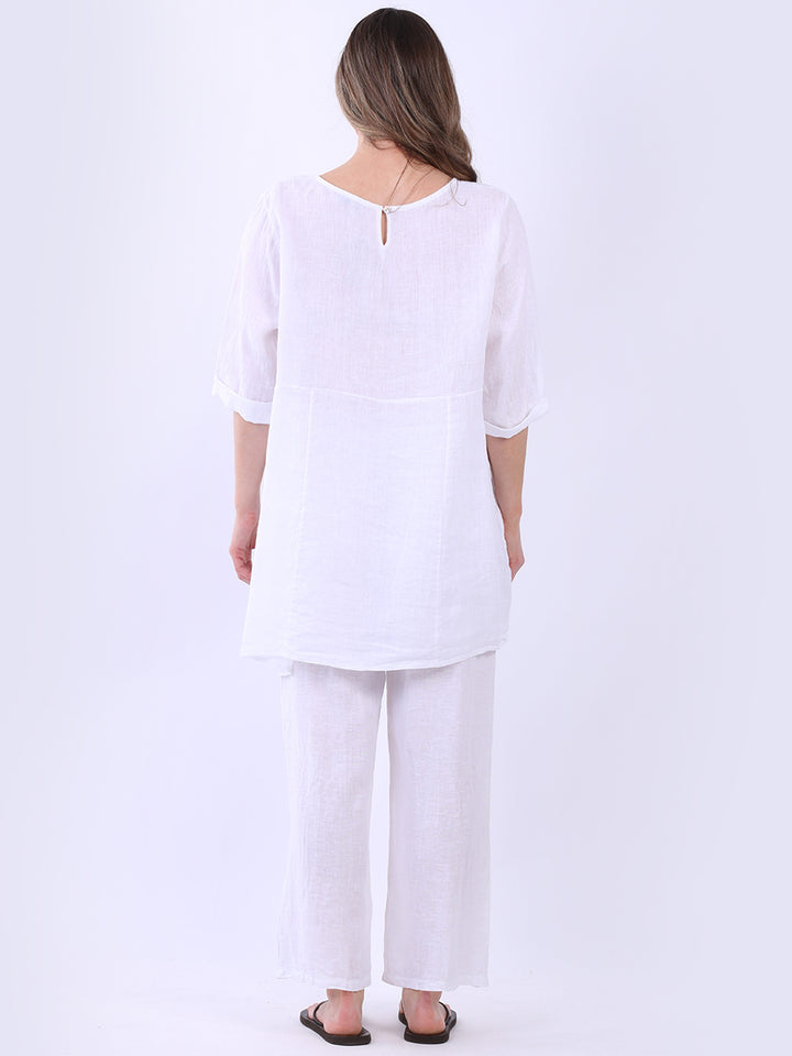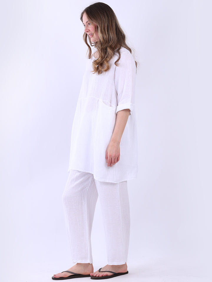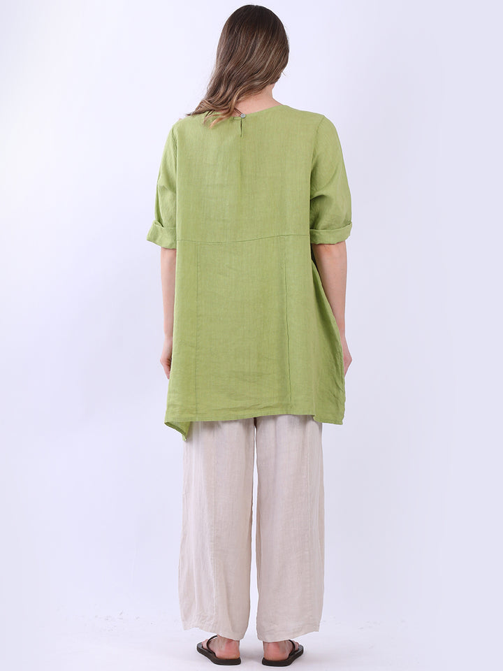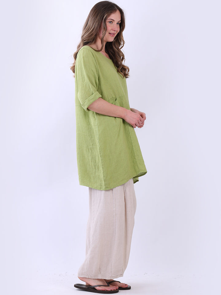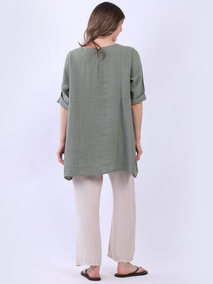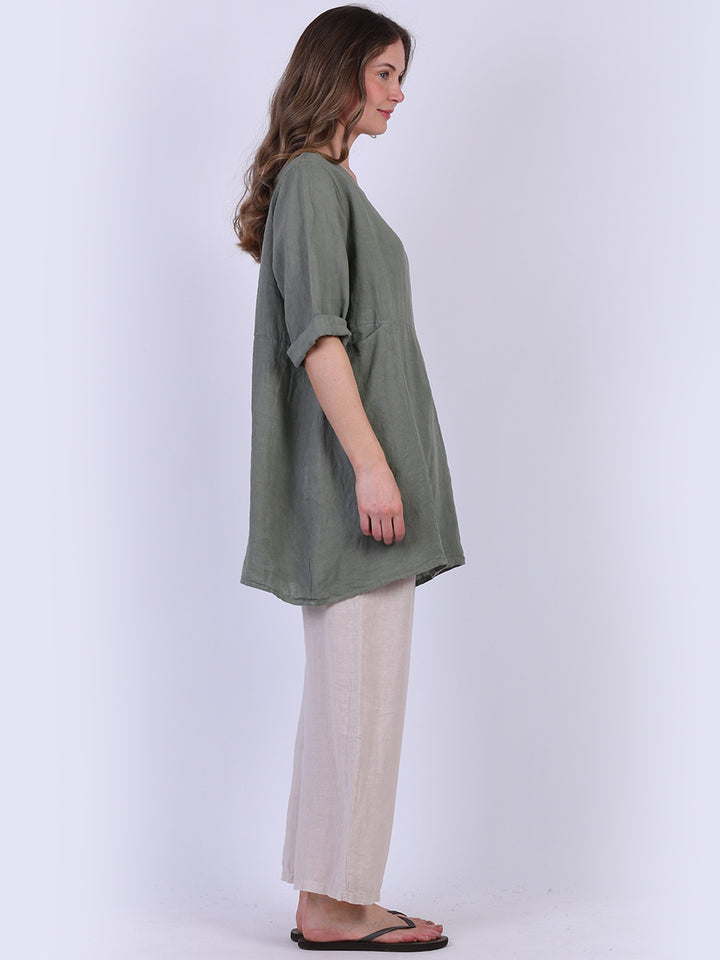 Brighten up any casual summer wardrobe with this Made in Italy lagenlook top in a solid hue. The oversized cut and soft linen fabric make it a favourite among women seeking plus-sized, easygoing, and breathable clothing.