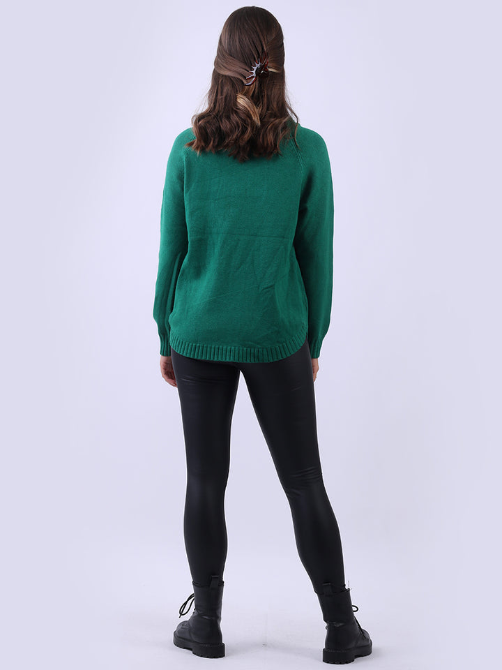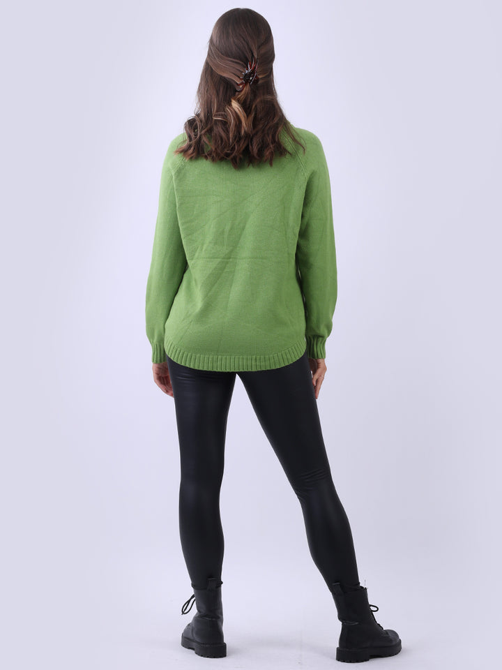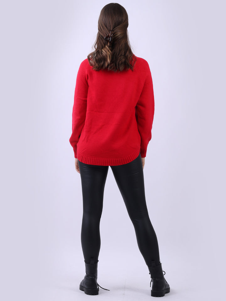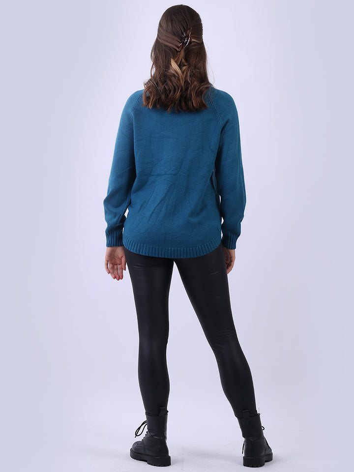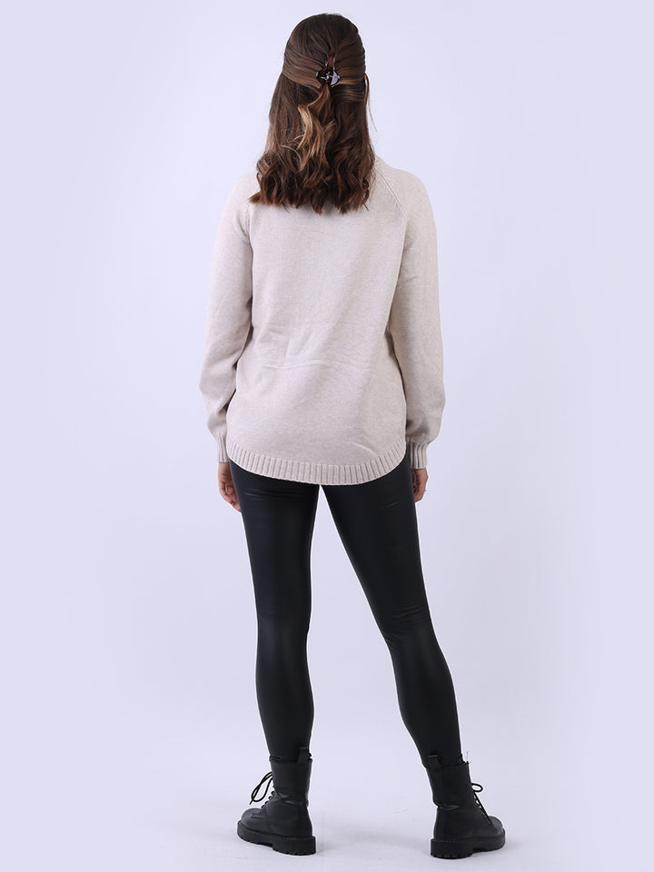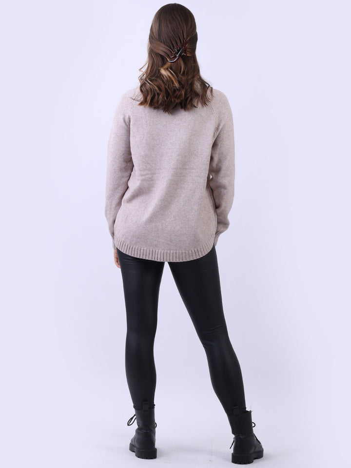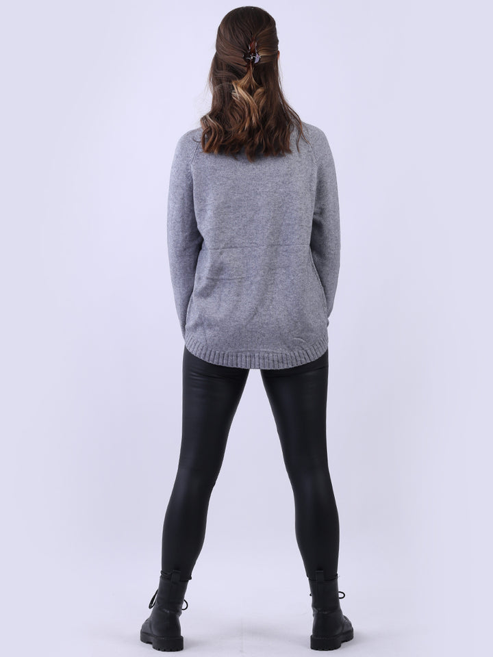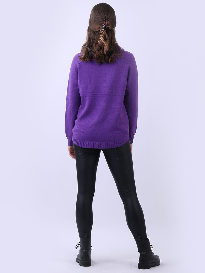 Slouchy and snuggly this is ideal fluff that will add glamor and character to the final look. Posh looking polo neckline, stunning cable knit pattern, drop shoulders and rounded edges gives it a sleek finish. Make a bold and confident statement with leather pants and long boots.
