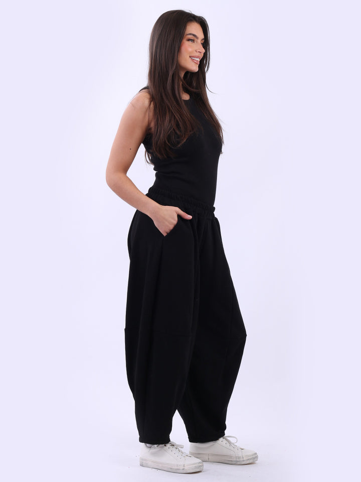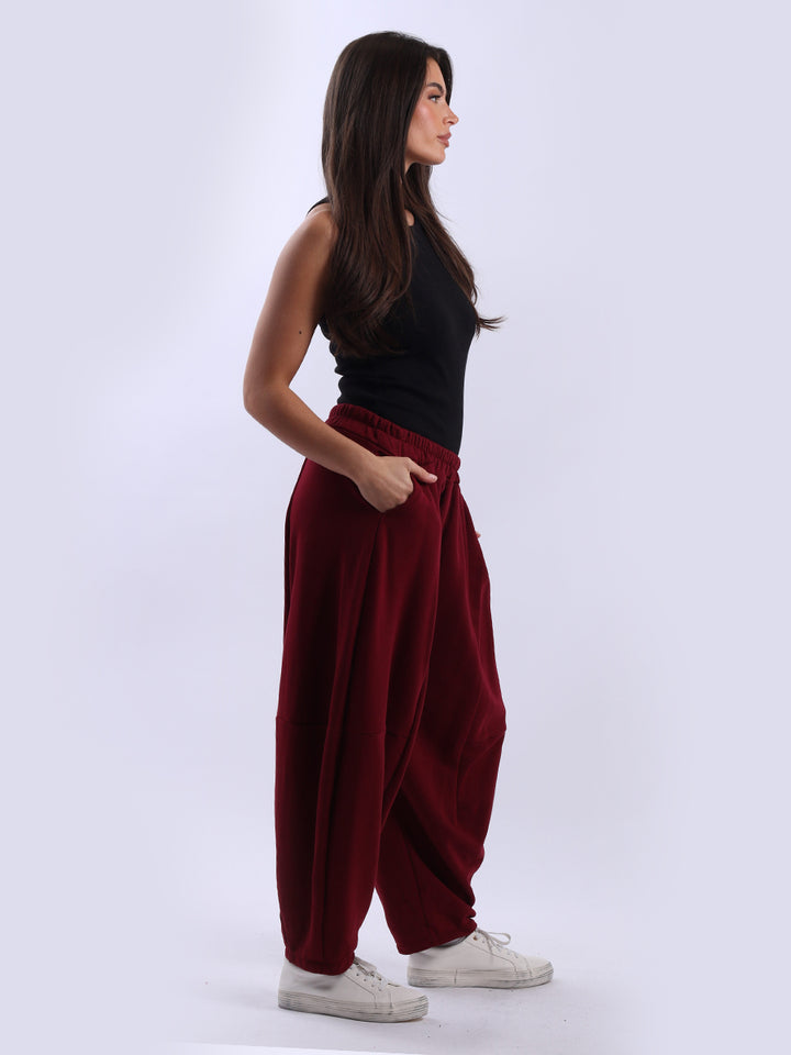 Experience the relaxed comfort of these solid cotton trousers, designed to add ease to your everyday wear. With an elastic waistband and handy side pockets, these trousers keep fashion and function in harmony. Style them effortlessly with a simple top for a laid-back look. Available exclusively on Redwholesale women fashion store. Perfect for days when you want a piece that flows with your day.