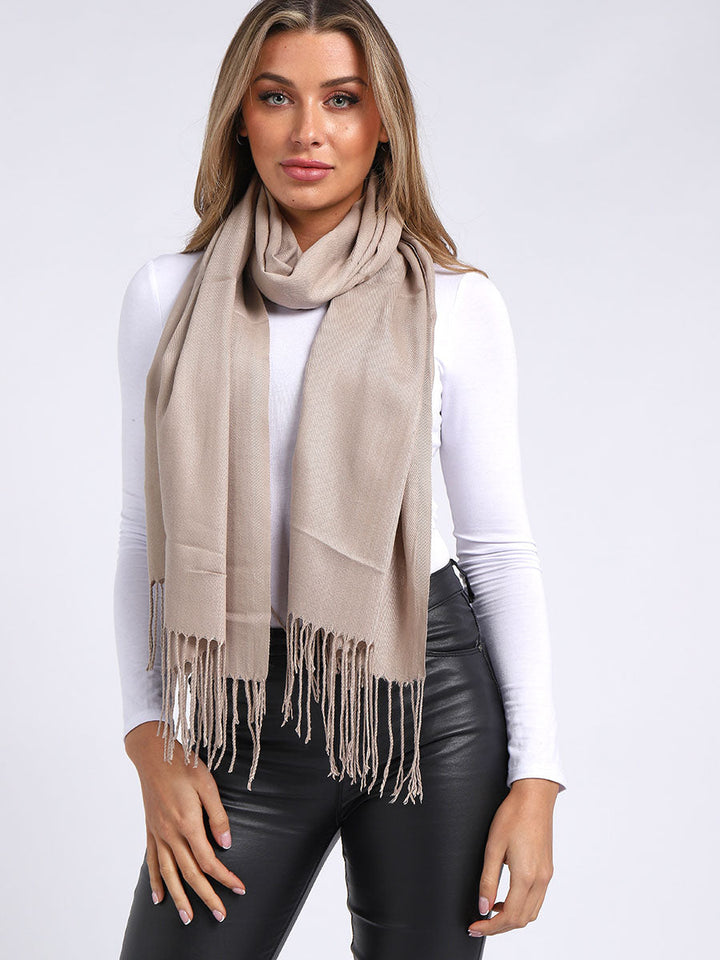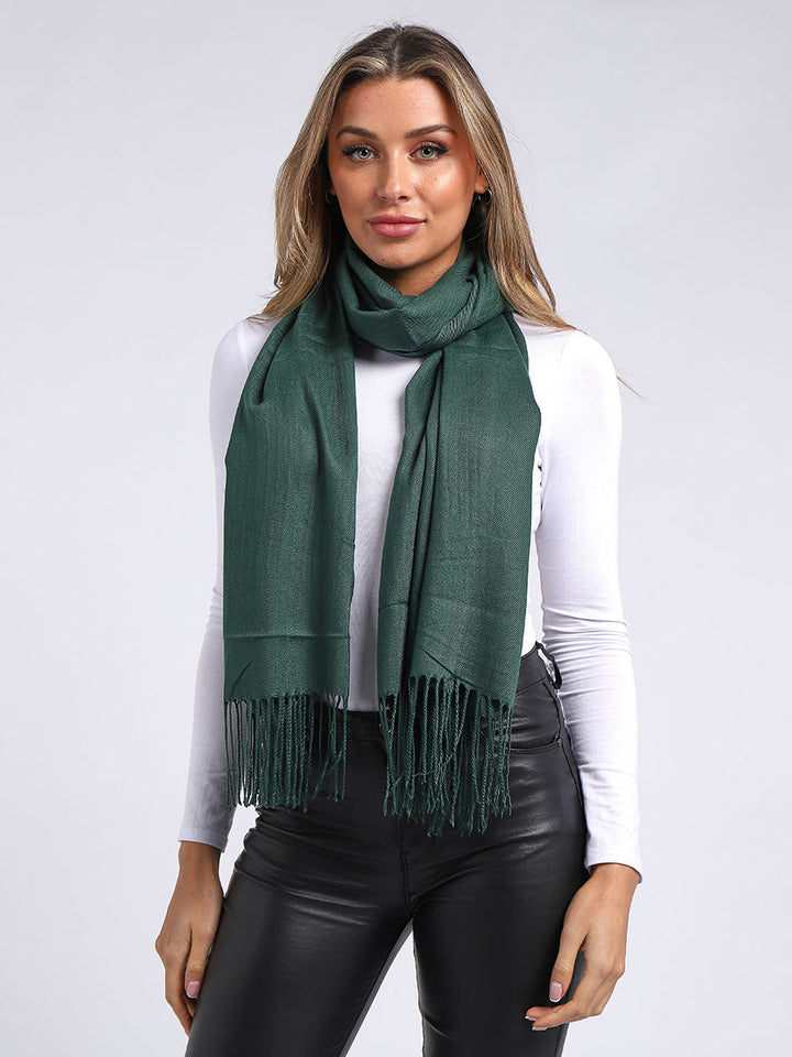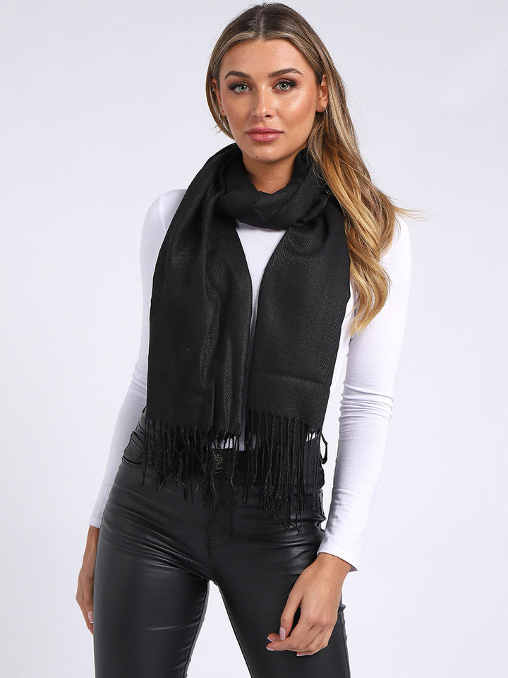 Toss in some character to any silhouette with this one of kind elegant woolen scarf from Redwholesale. Warm and fabulous with fringe. Soft made in Italy with cashmere that is perfect for everyday wear.