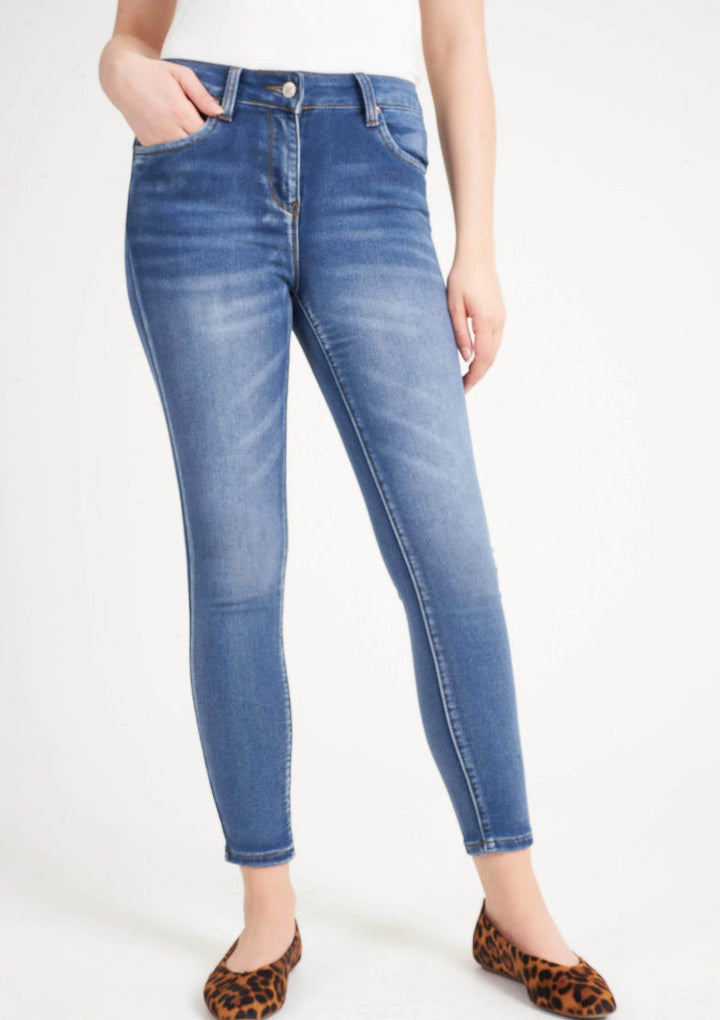 Soft comfort cotton blend material - skinny fit style featuring pockets and back seam detail.