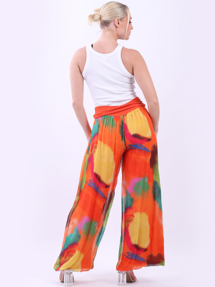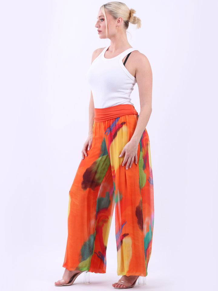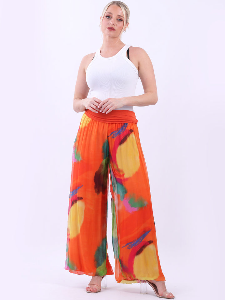 Made In Italy 2 Layered Tie Dyed Wide Leg Harem Silk Palazzo