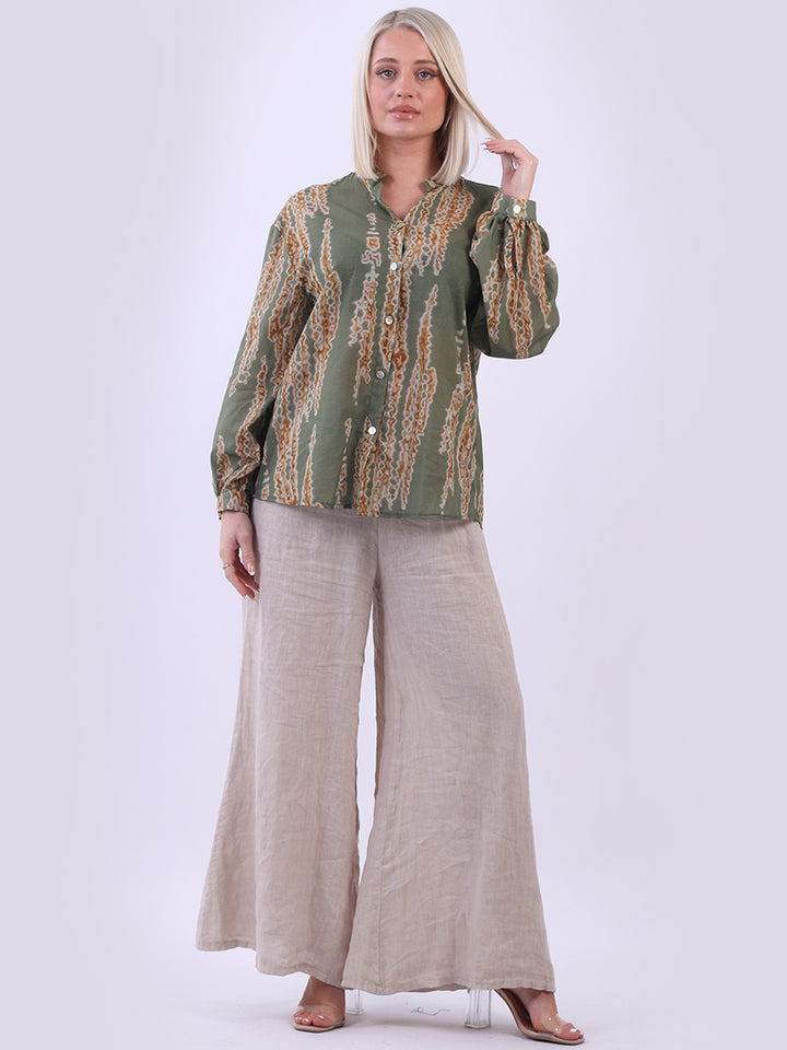 The classy and timeless print that always stands out and makes women wearers look stunning. The tie and dye print with digital finish is the new hype with high demand features like front buttons, long cuff sleeves and plus size loose fitting. Ideal for office or casual wear.
