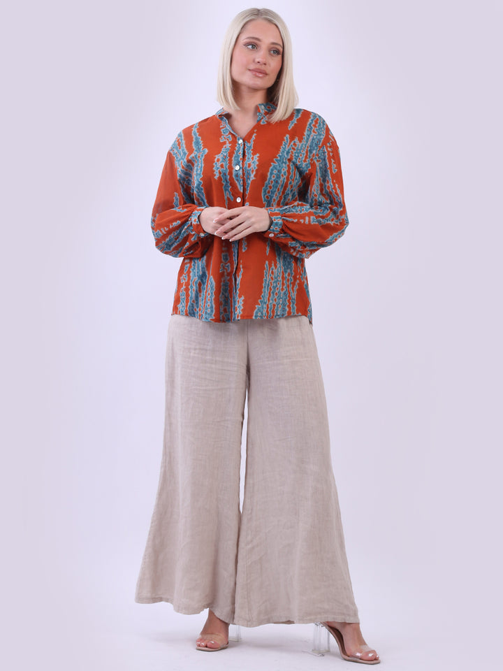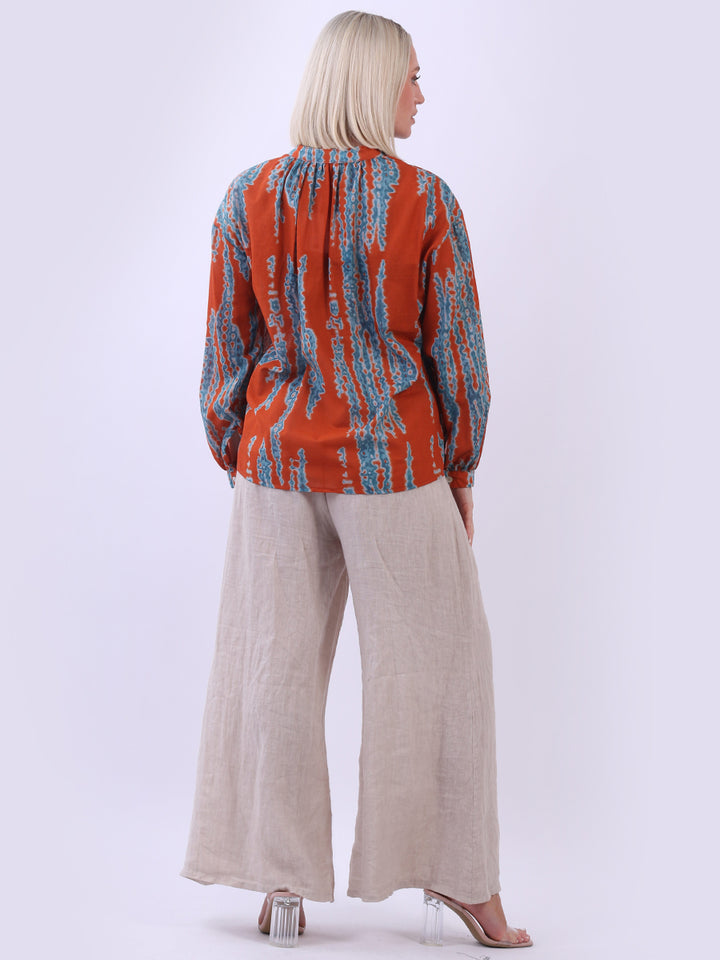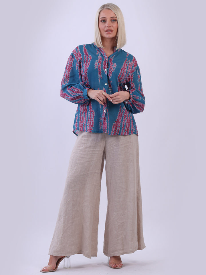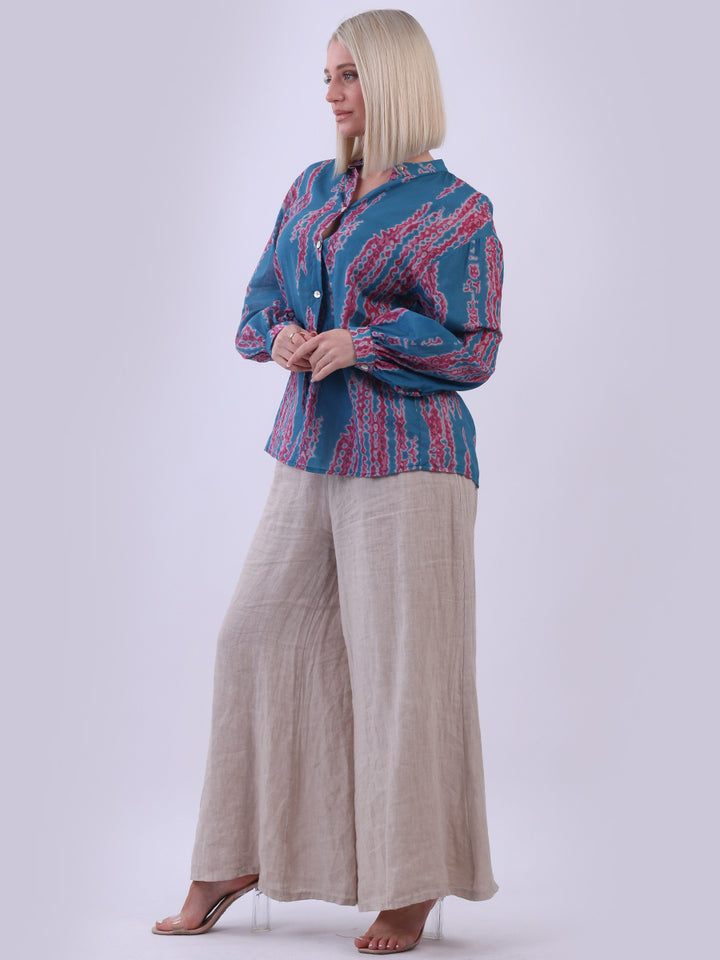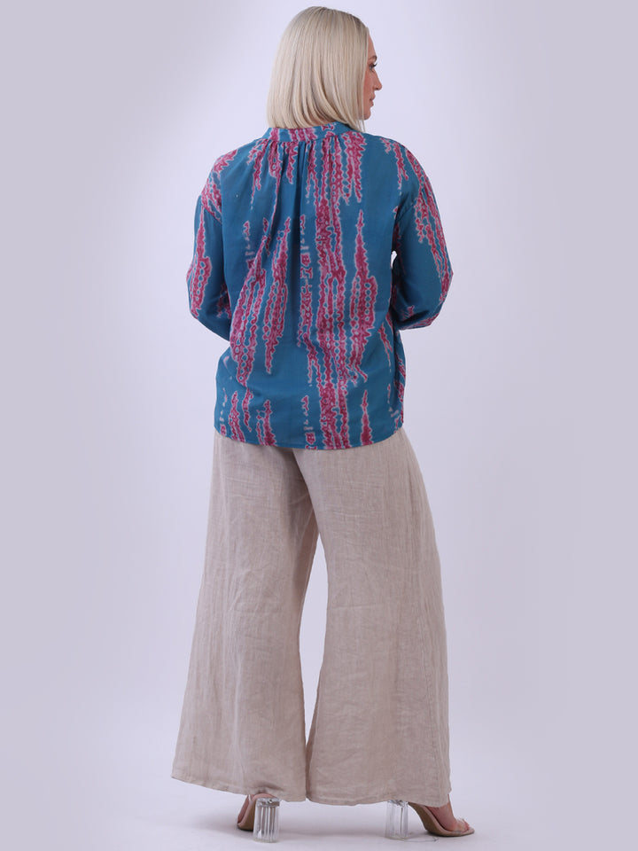 Made In Italy Chic Tie Dyed Lagenlook Cotton Crop Blouse