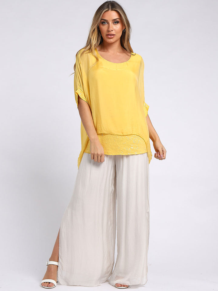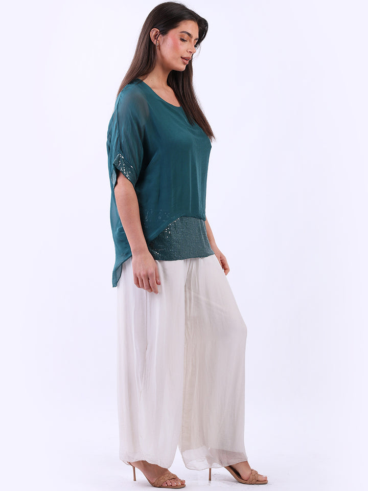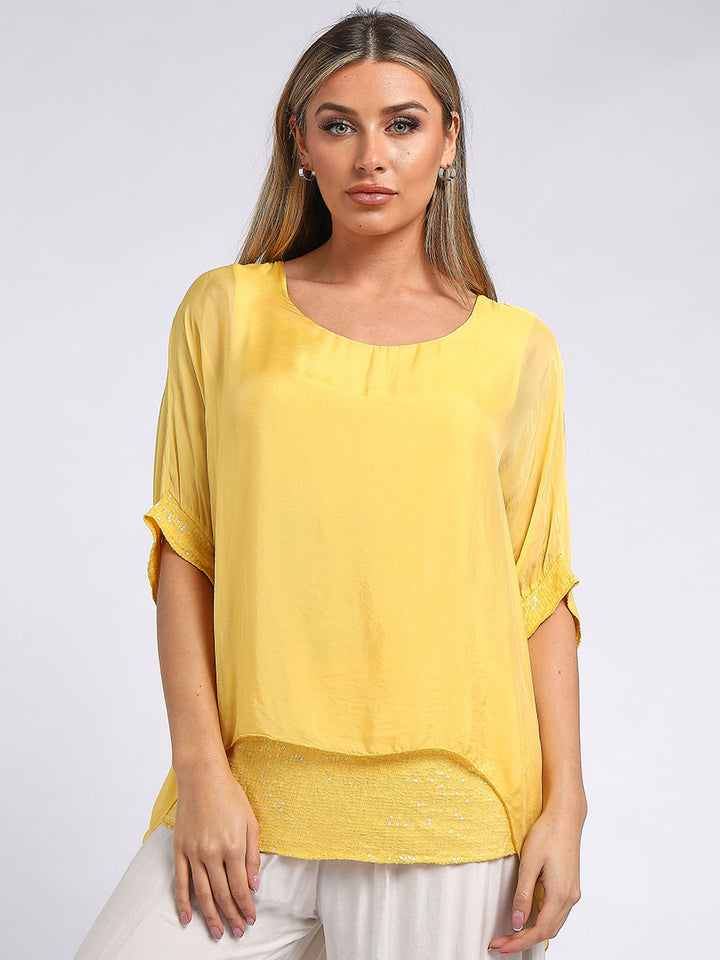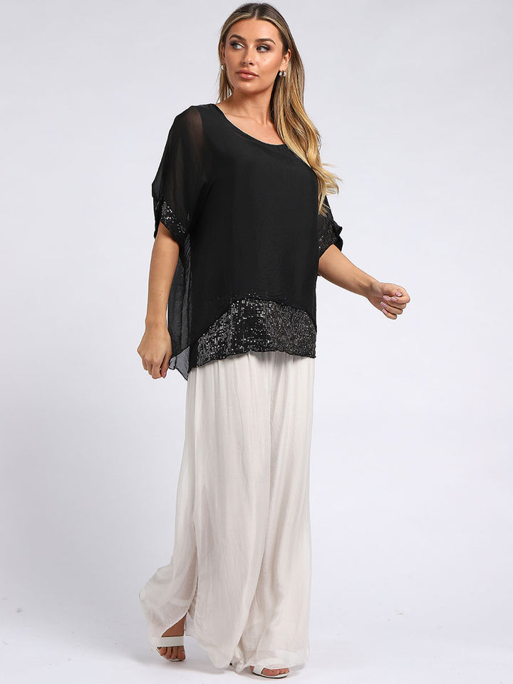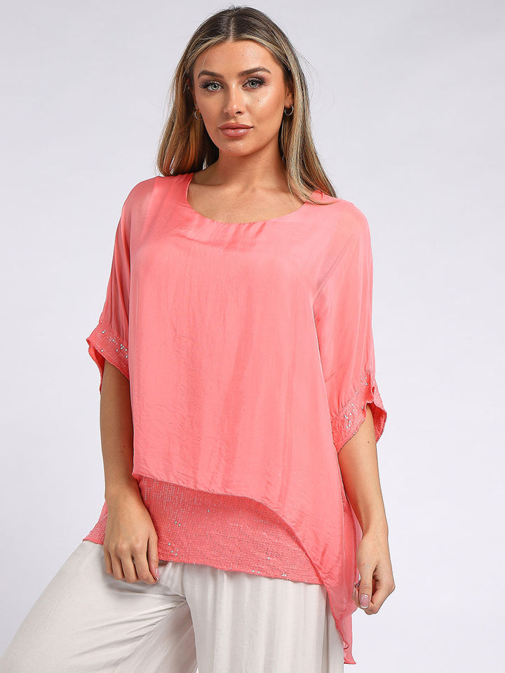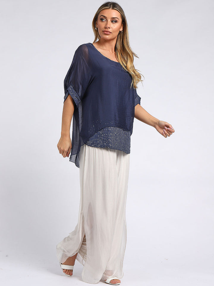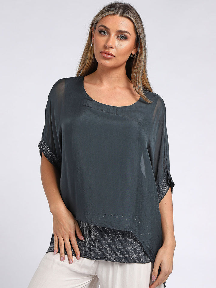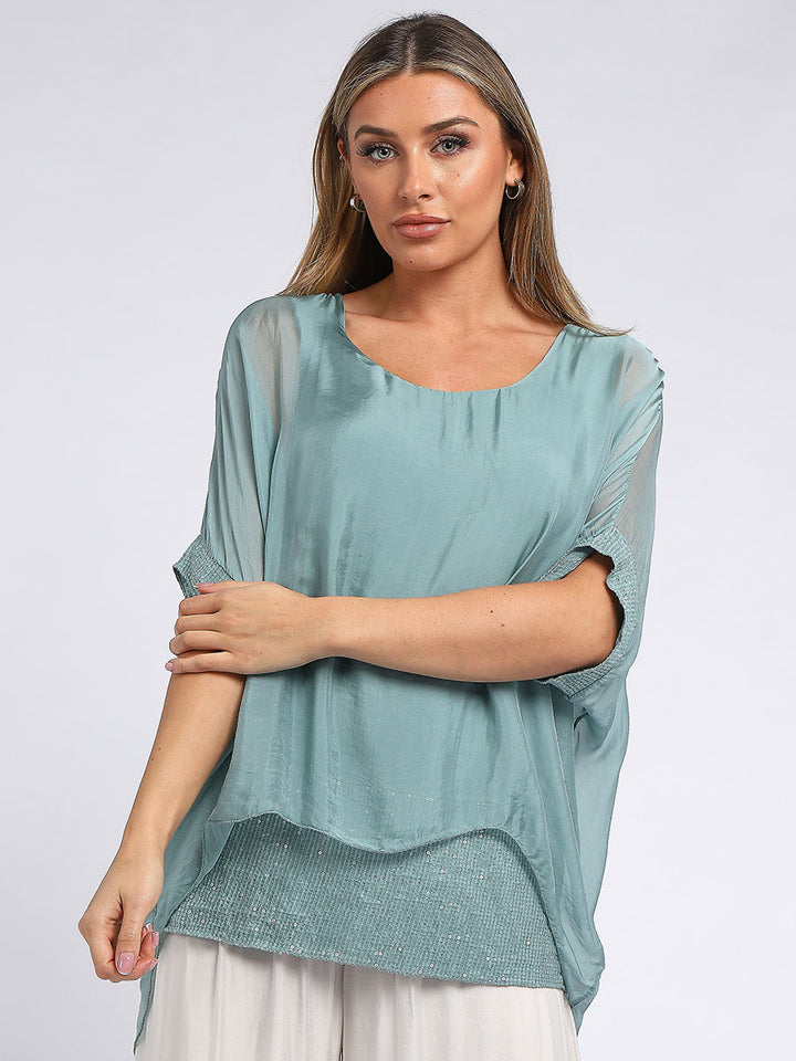 Made In Italy Chunky Twin Sequin Lagenlook Silk Top