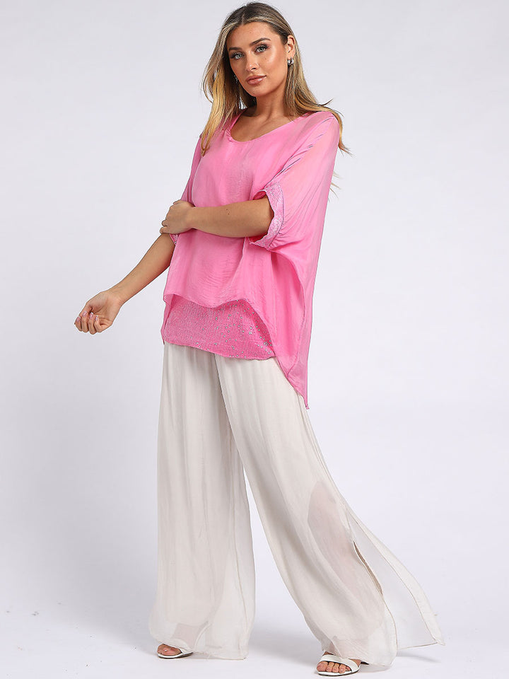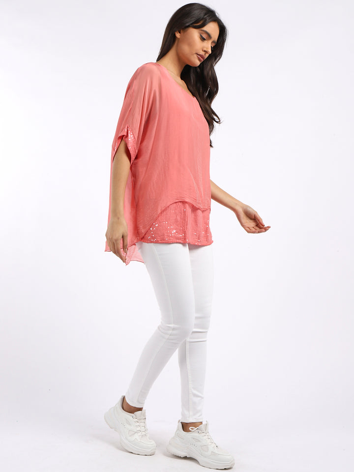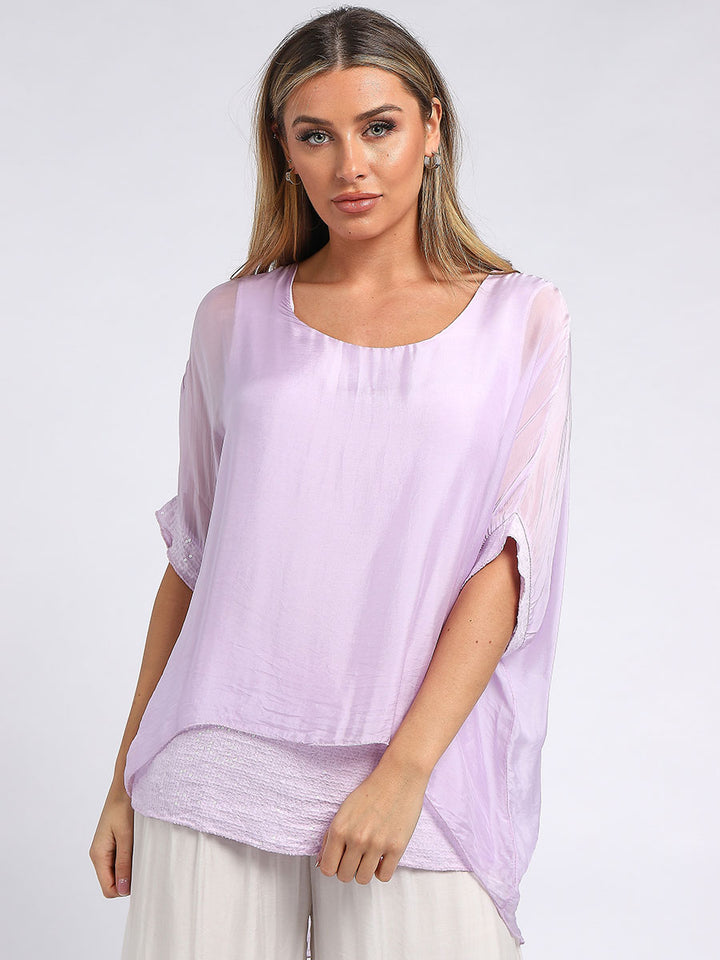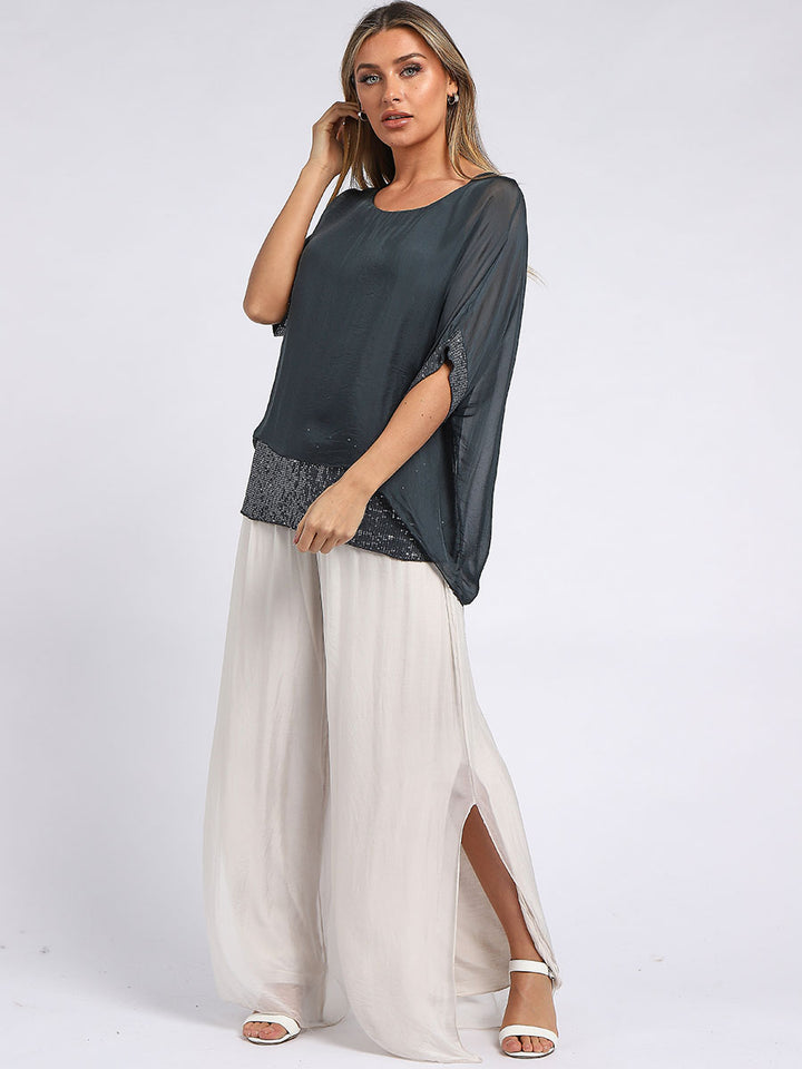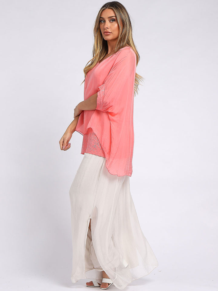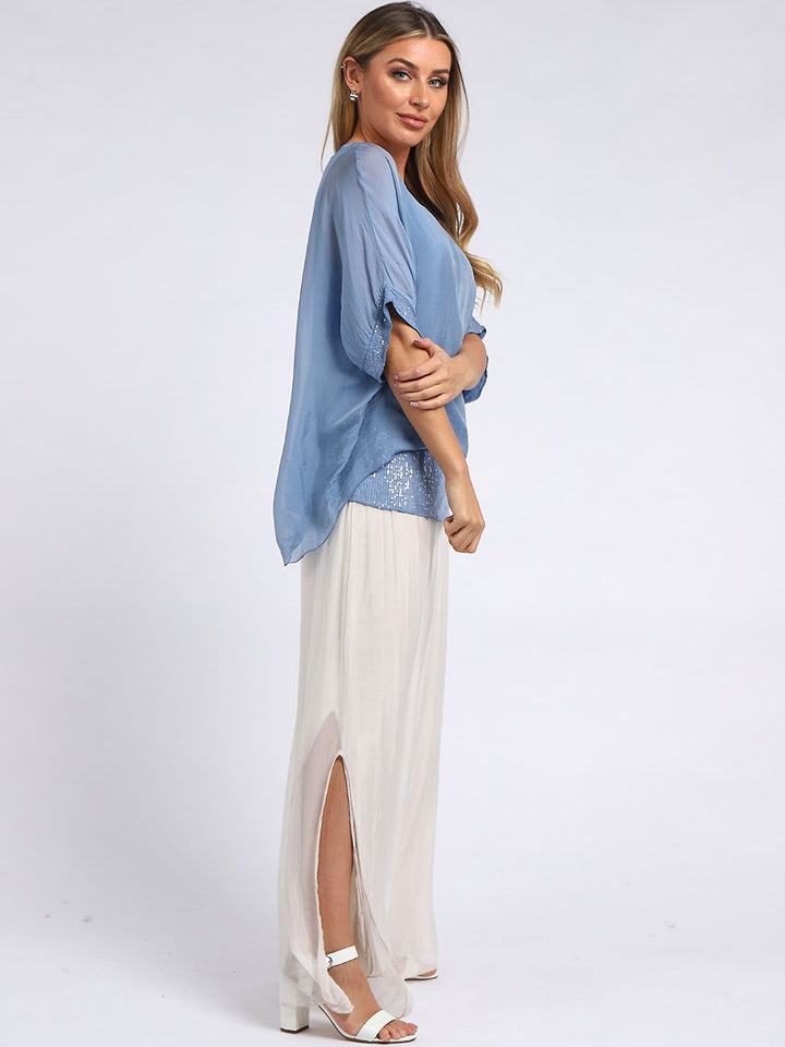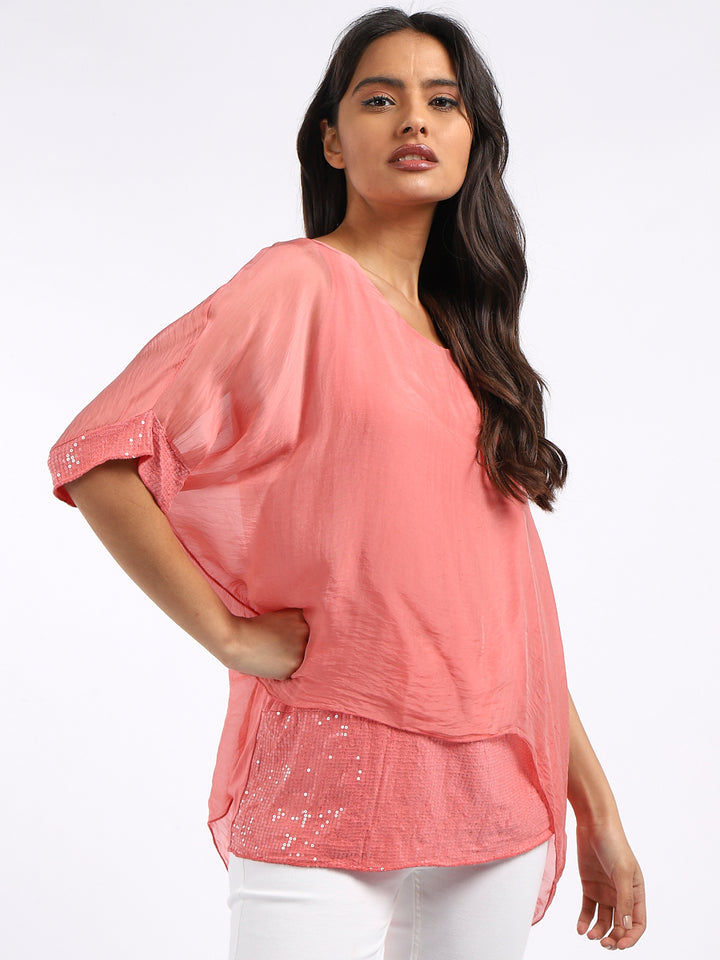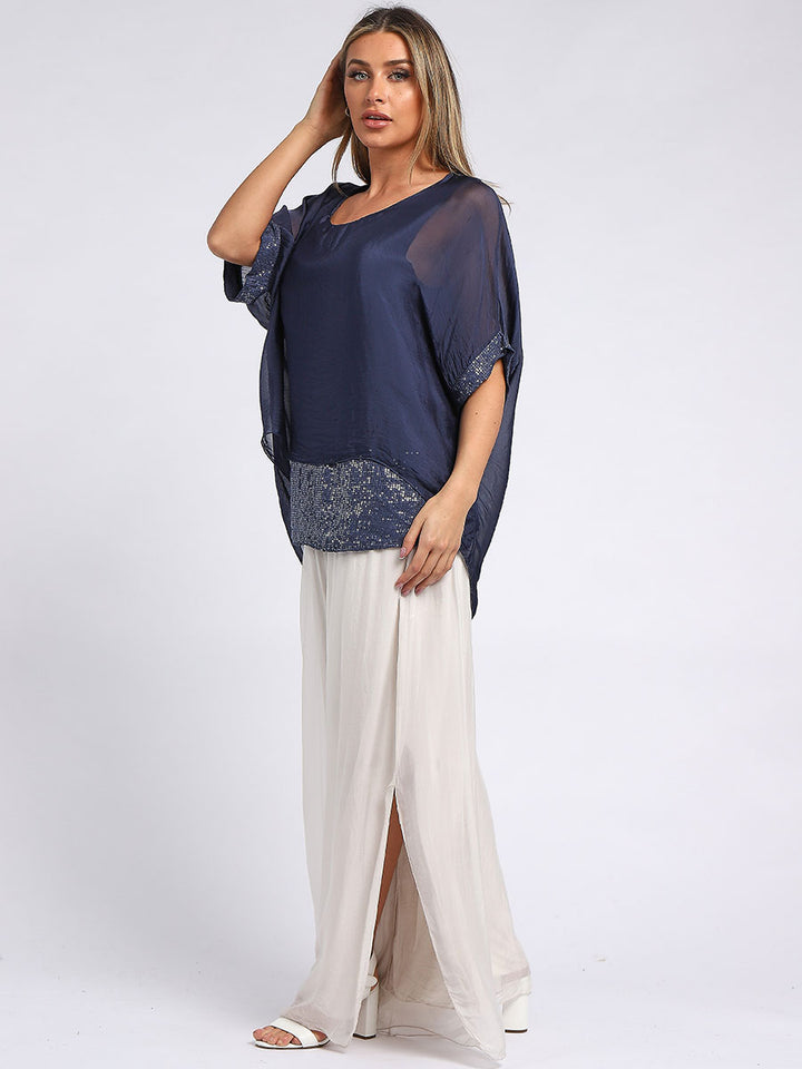 Made In Italy Chunky Twin Sequin Lagenlook Silk Top