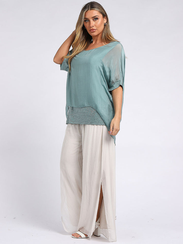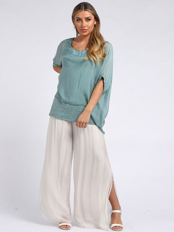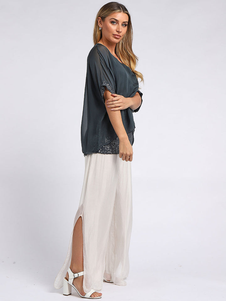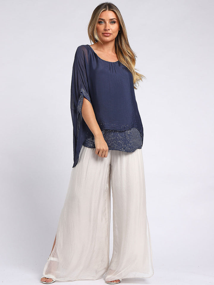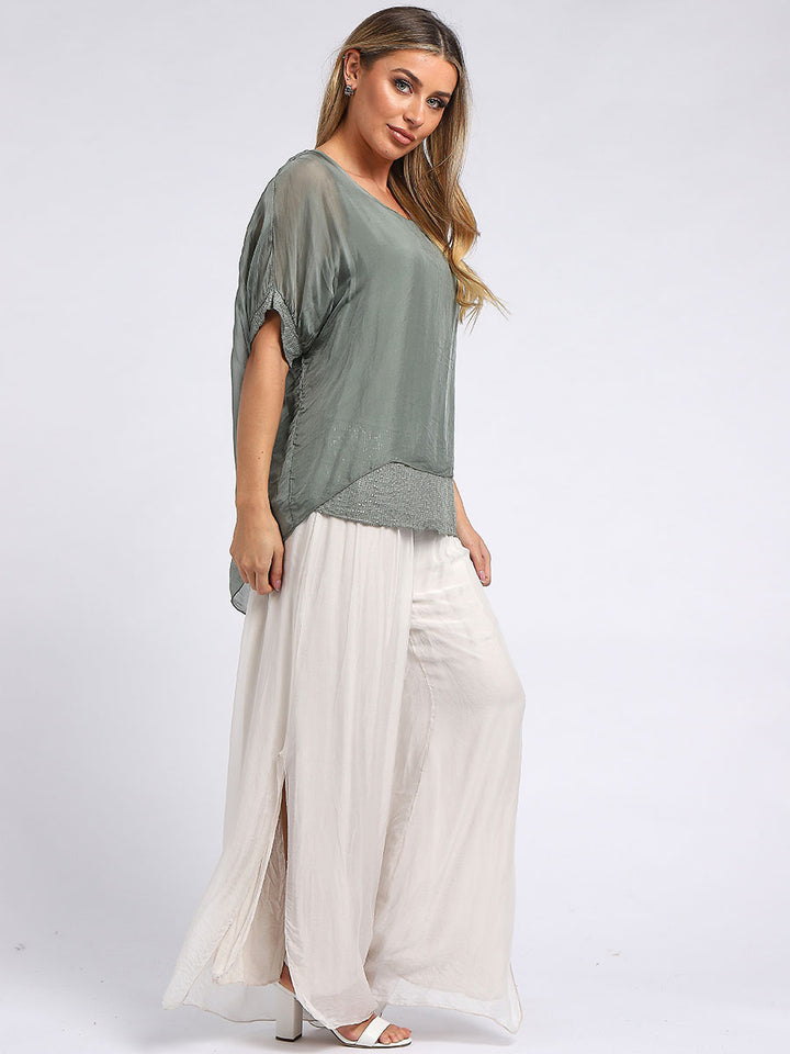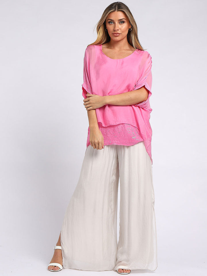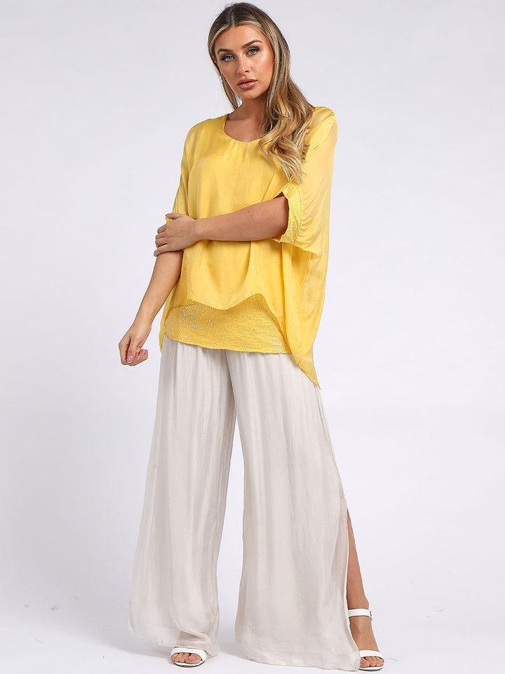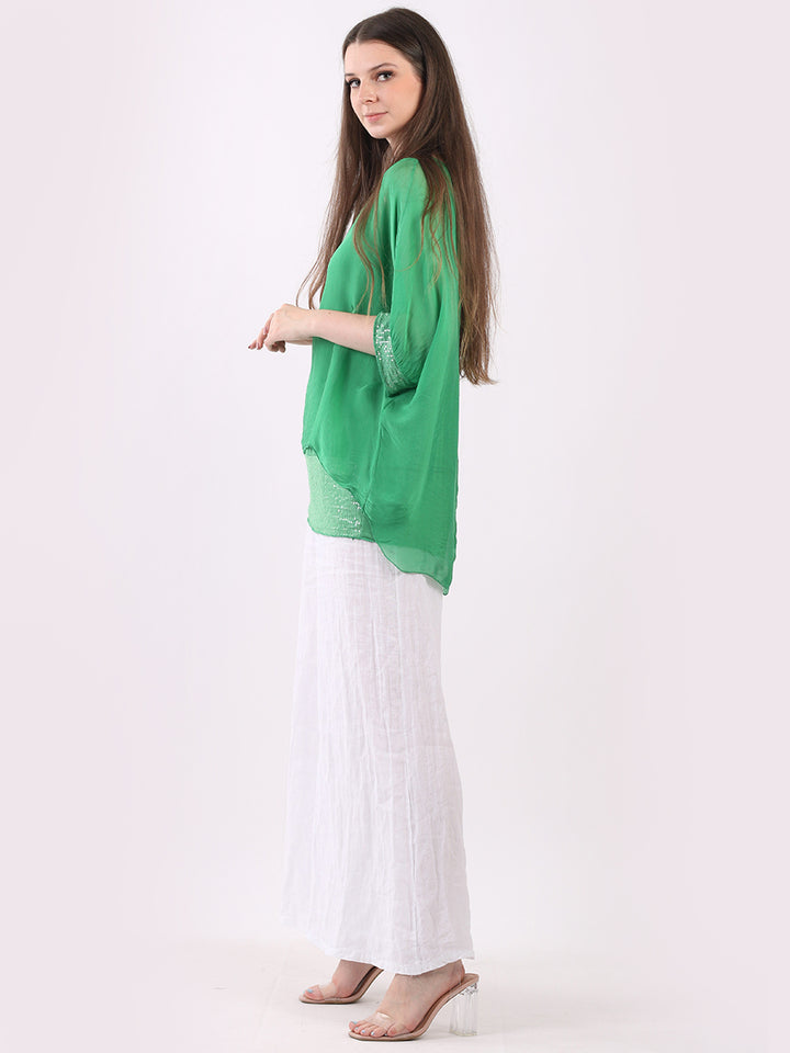 Made In Italy Chunky Twin Sequin Lagenlook Silk Top