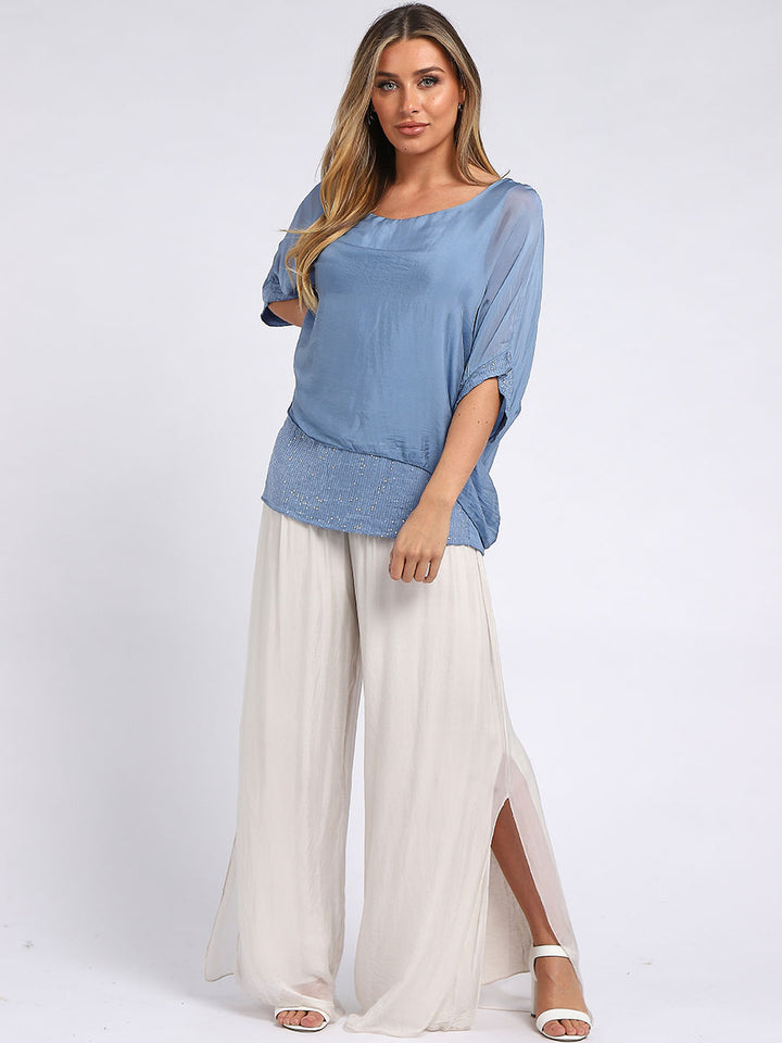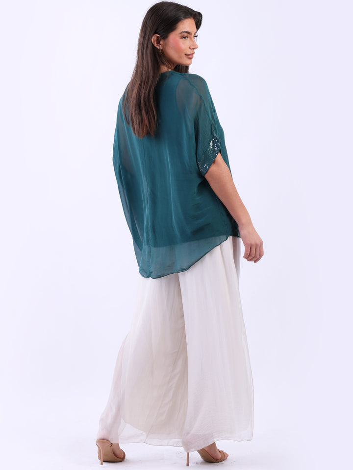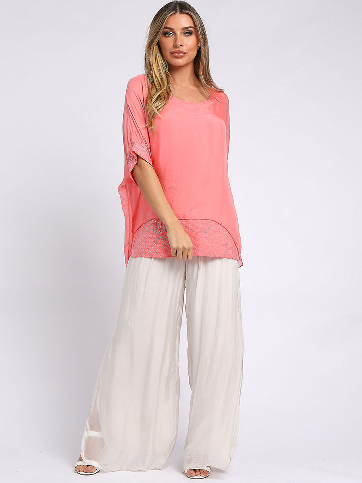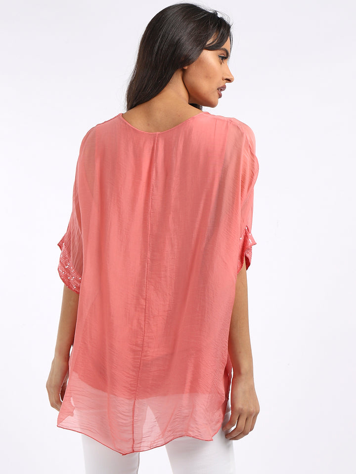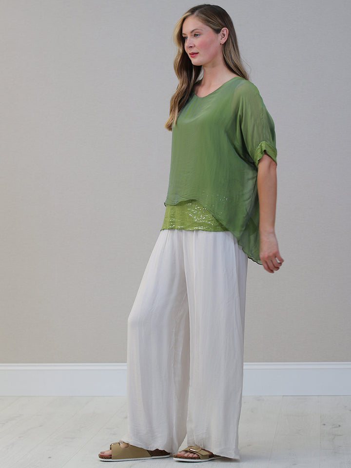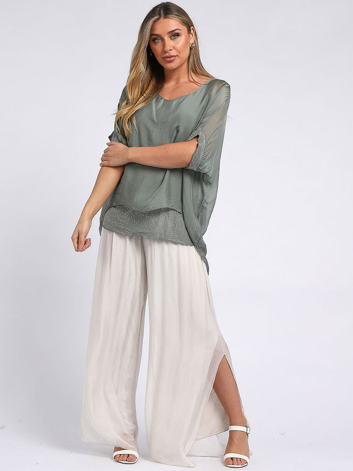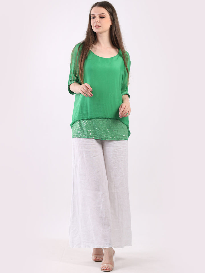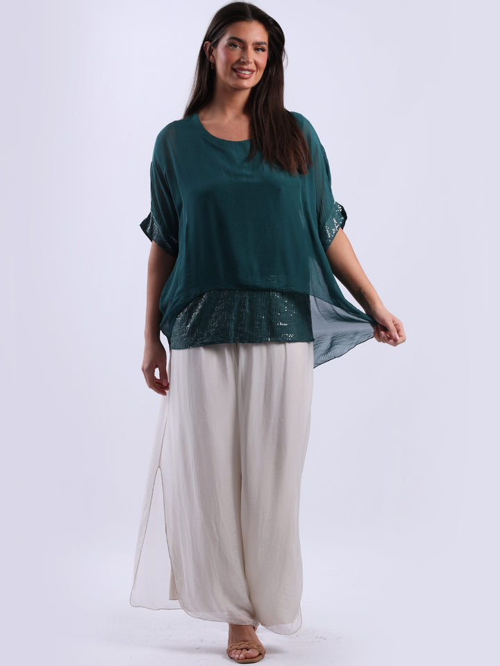 Made In Italy Chunky Twin Sequin Lagenlook Silk Top