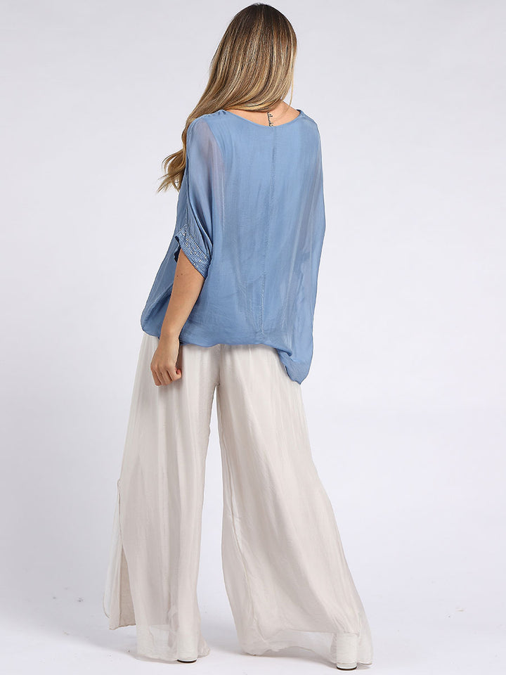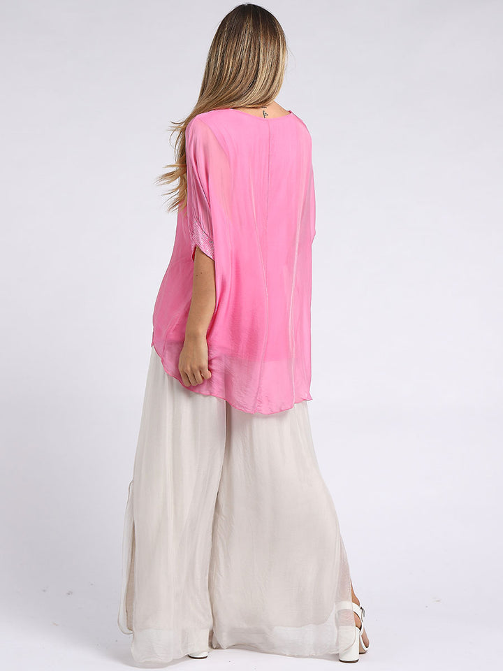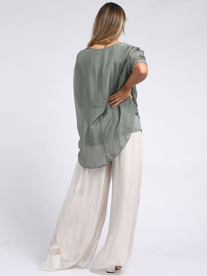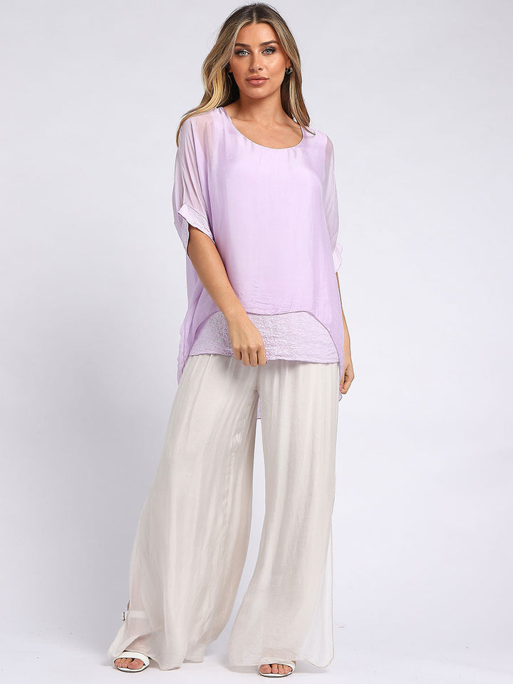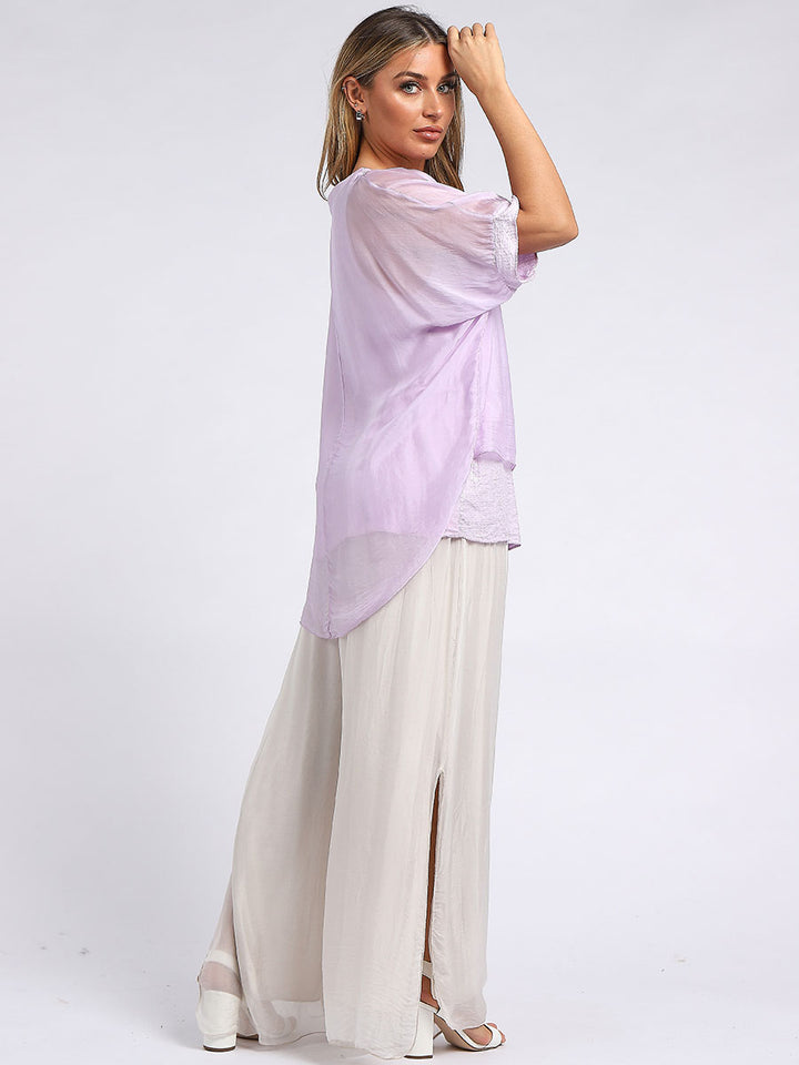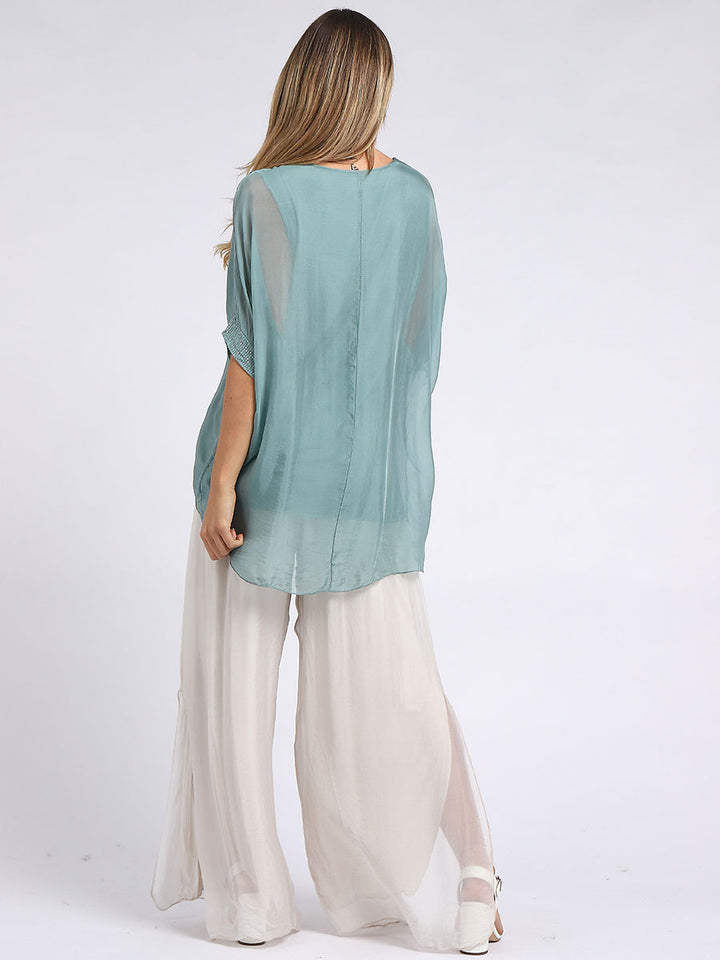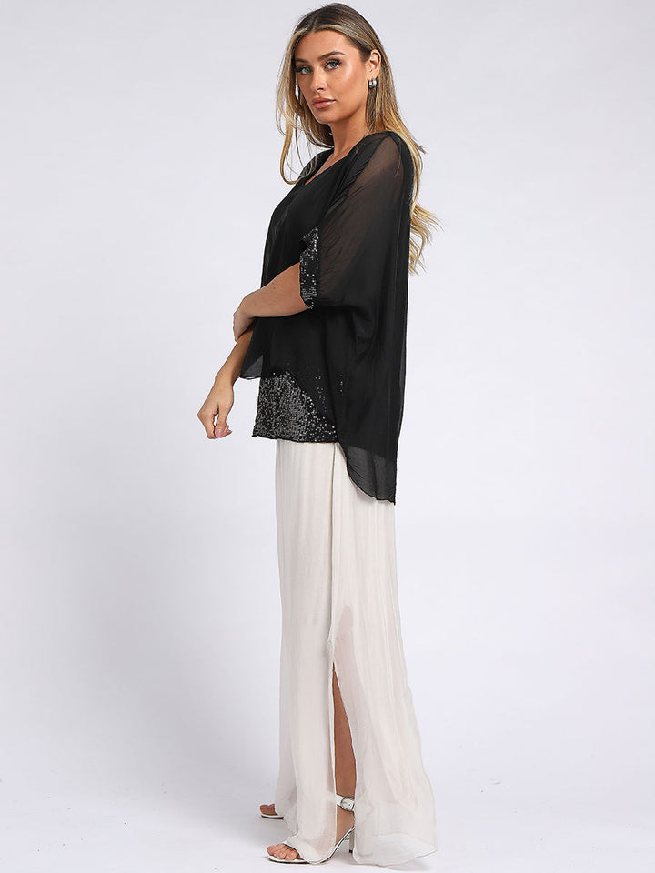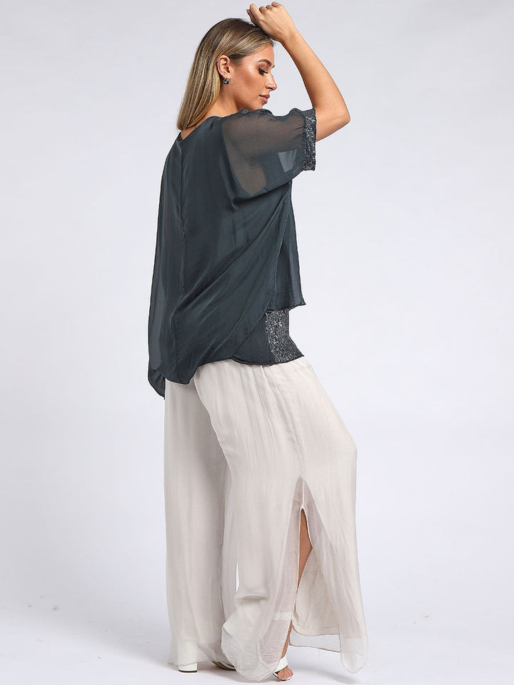 Made In Italy Chunky Twin Sequin Lagenlook Silk Top