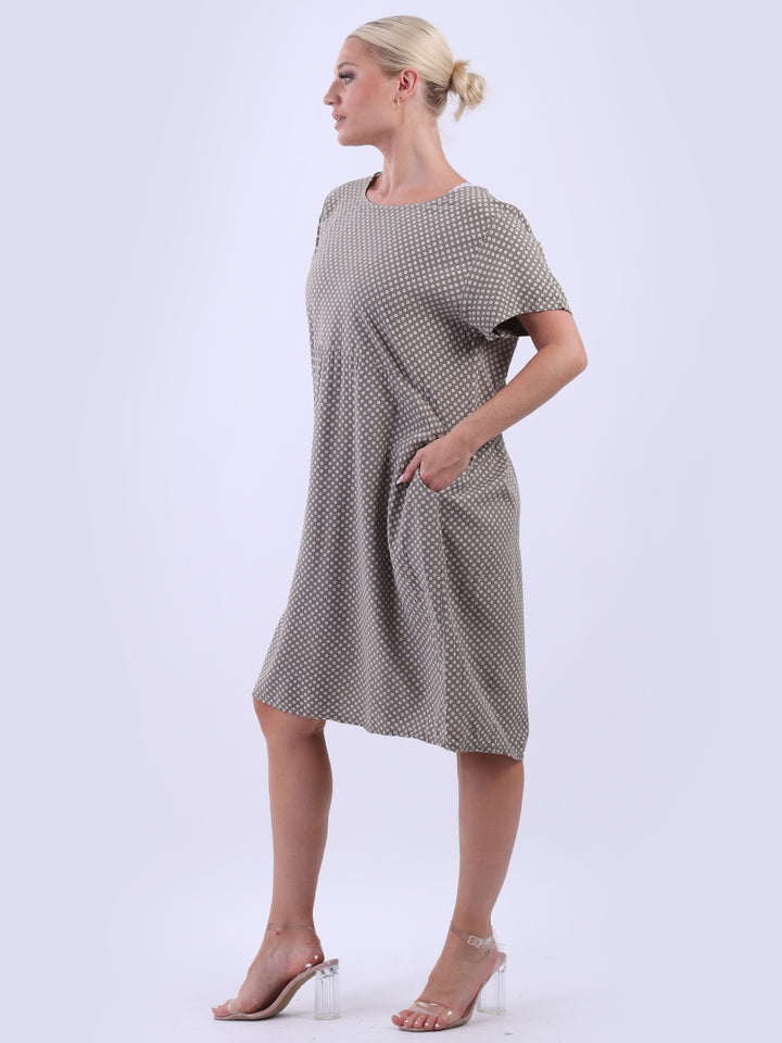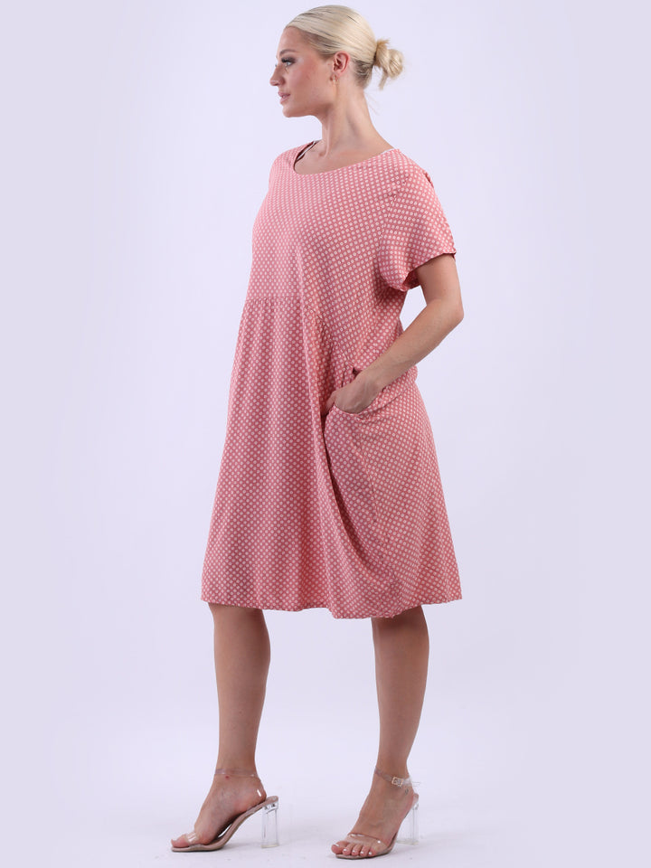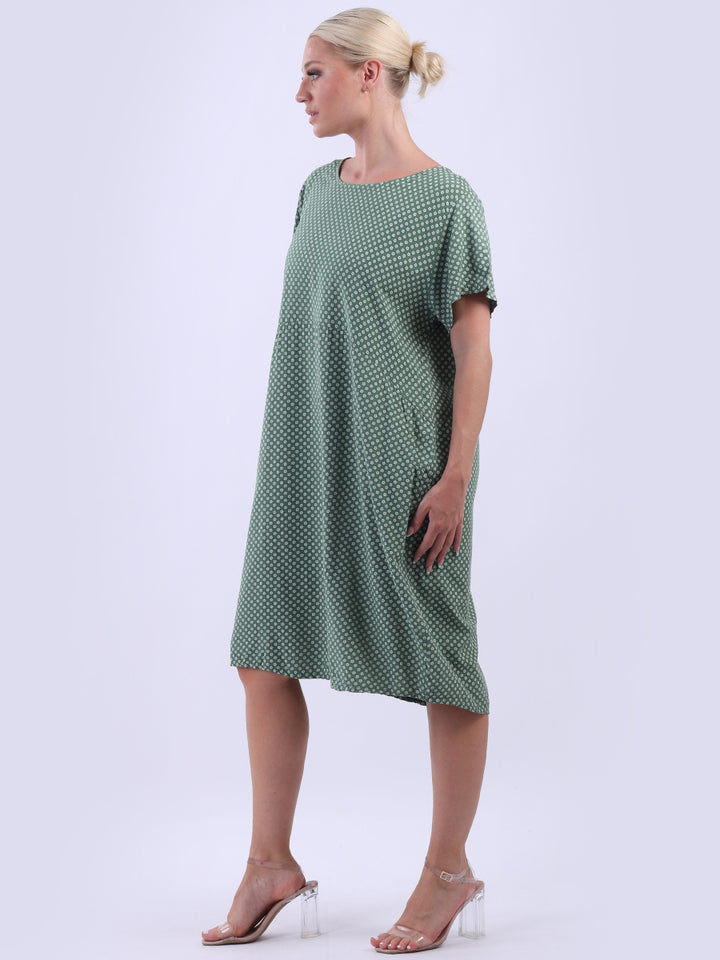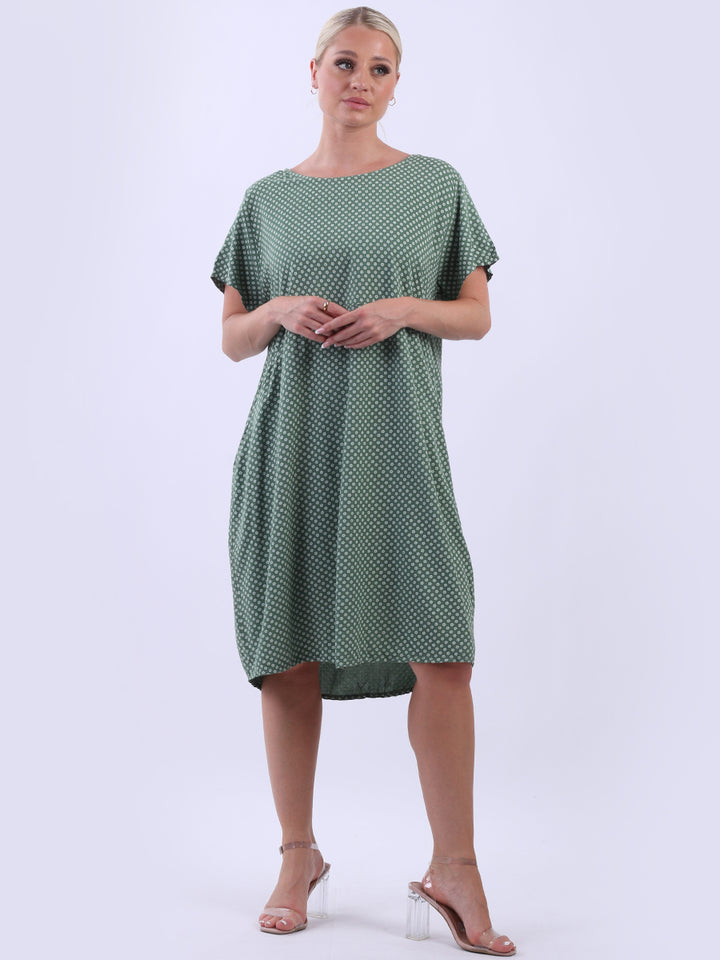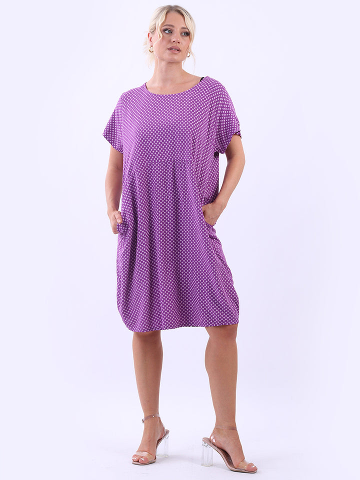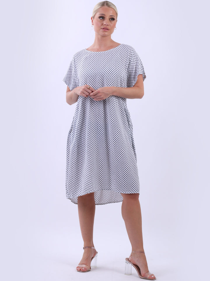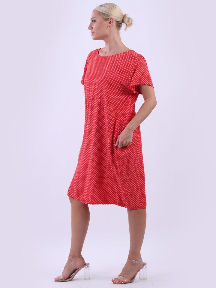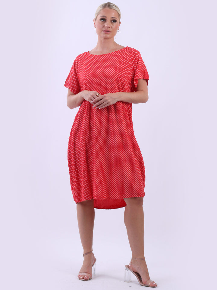 Redwholesale's latest collection features this Italian moda midi dress that has a stunning and iconic ditsy print to rock summer looks for women wearers. Made in Italy with the finest soft fabric mix, soft round neckline, baggy plus size fit and functional pockets, make the best of the season, giving an ideal choice for Italian women's casual fashion. Dress it with sneakers.